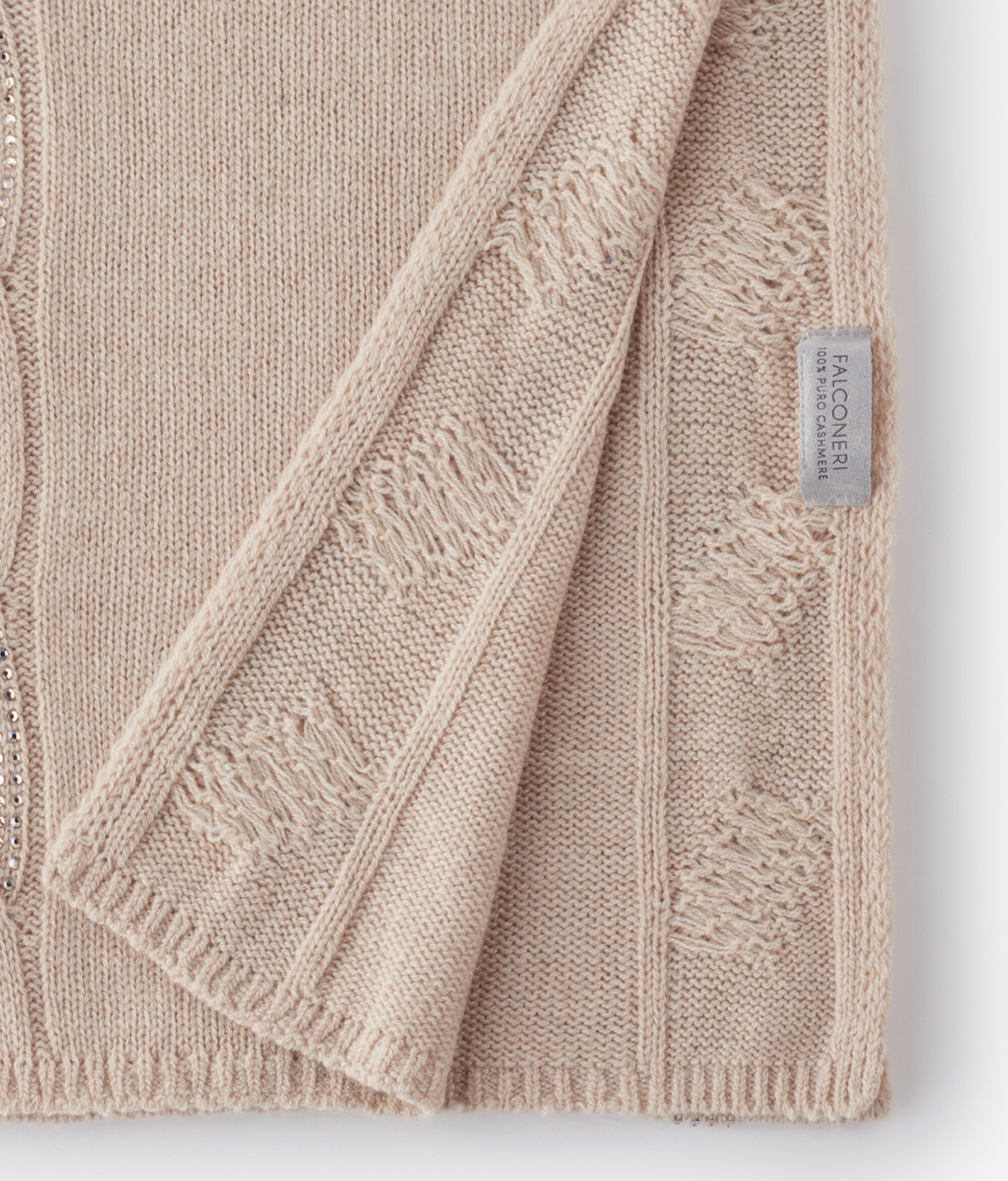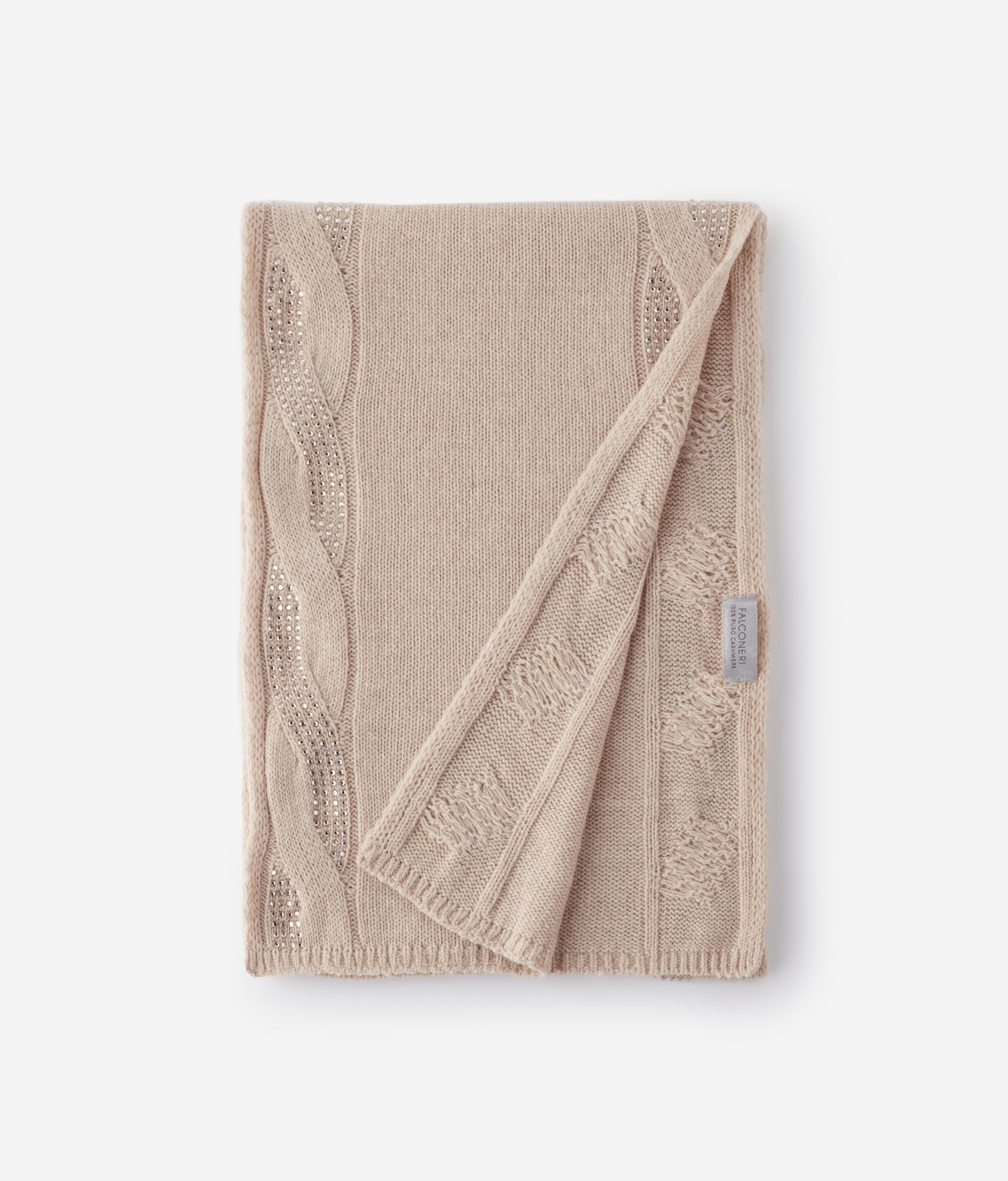 Schal aus Kaschmir Ultrasoft mit Zopfmuster und Strass