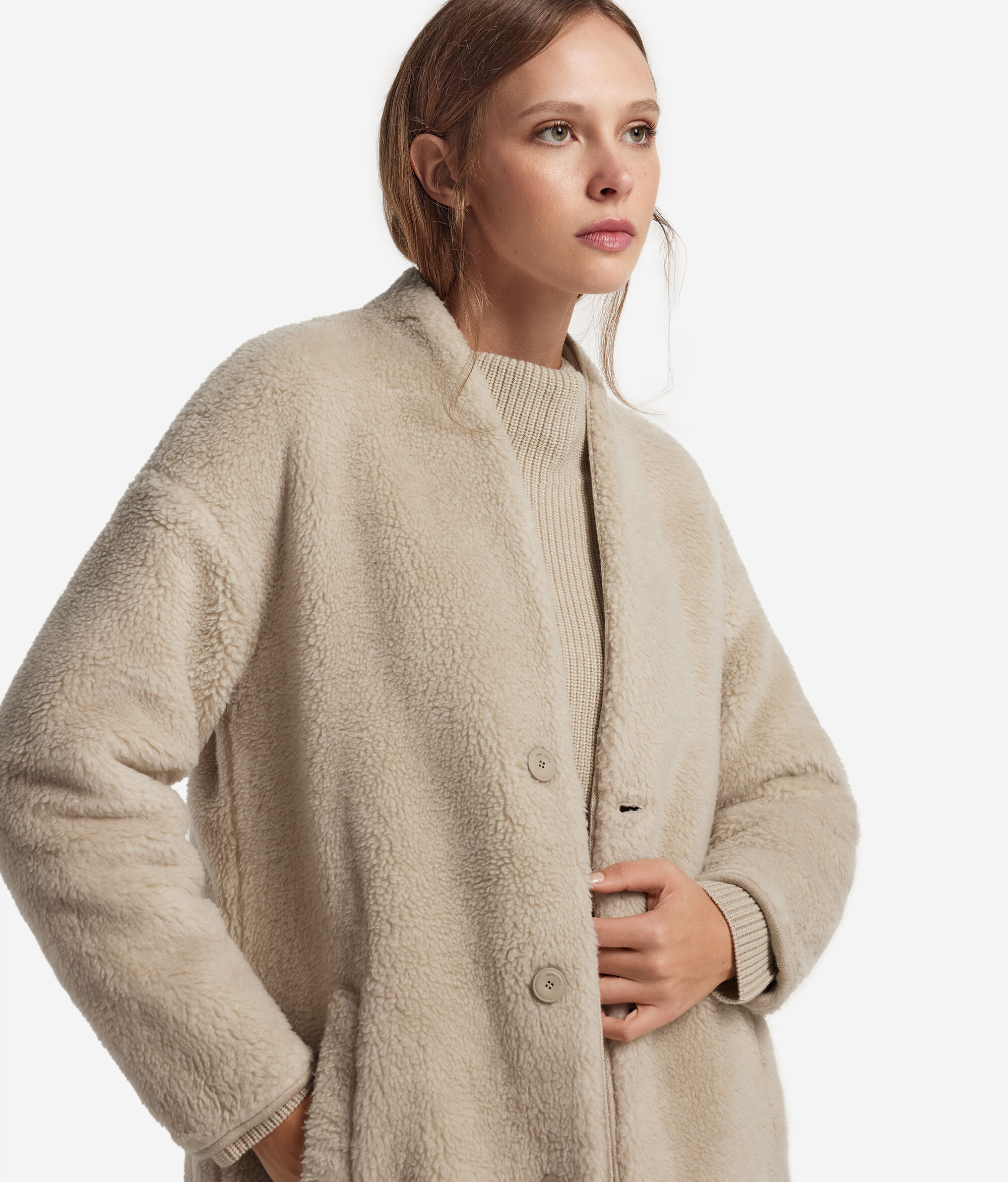 Dieser vielseitige und edle Wendemantel kombiniert die Weichheit von Kaschmir Ultrasoft mit warmem Kaschmirpelz. Der Schalkragen und die überschnittene Schulter sorgen für entspannten Komfort, während die aufgesetzten Taschen Funktionalität bieten, ohne das Design zu beschweren. Die Knielänge macht ihn perfekt, um kühleren Tage stilvoll zu begegnen, und bietet eine Mischung aus Eleganz und Funktionalität für ein zeitloses Must-have.