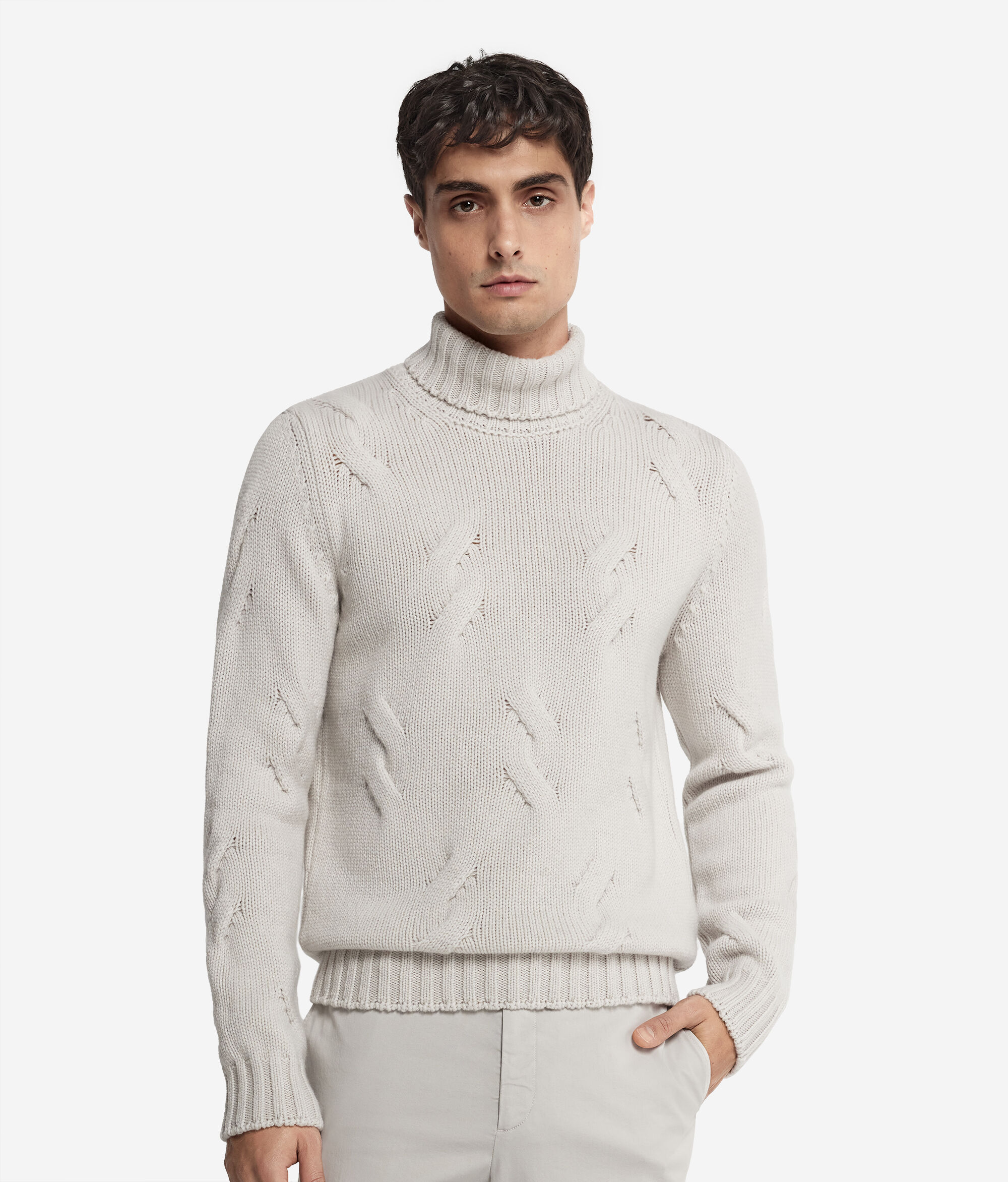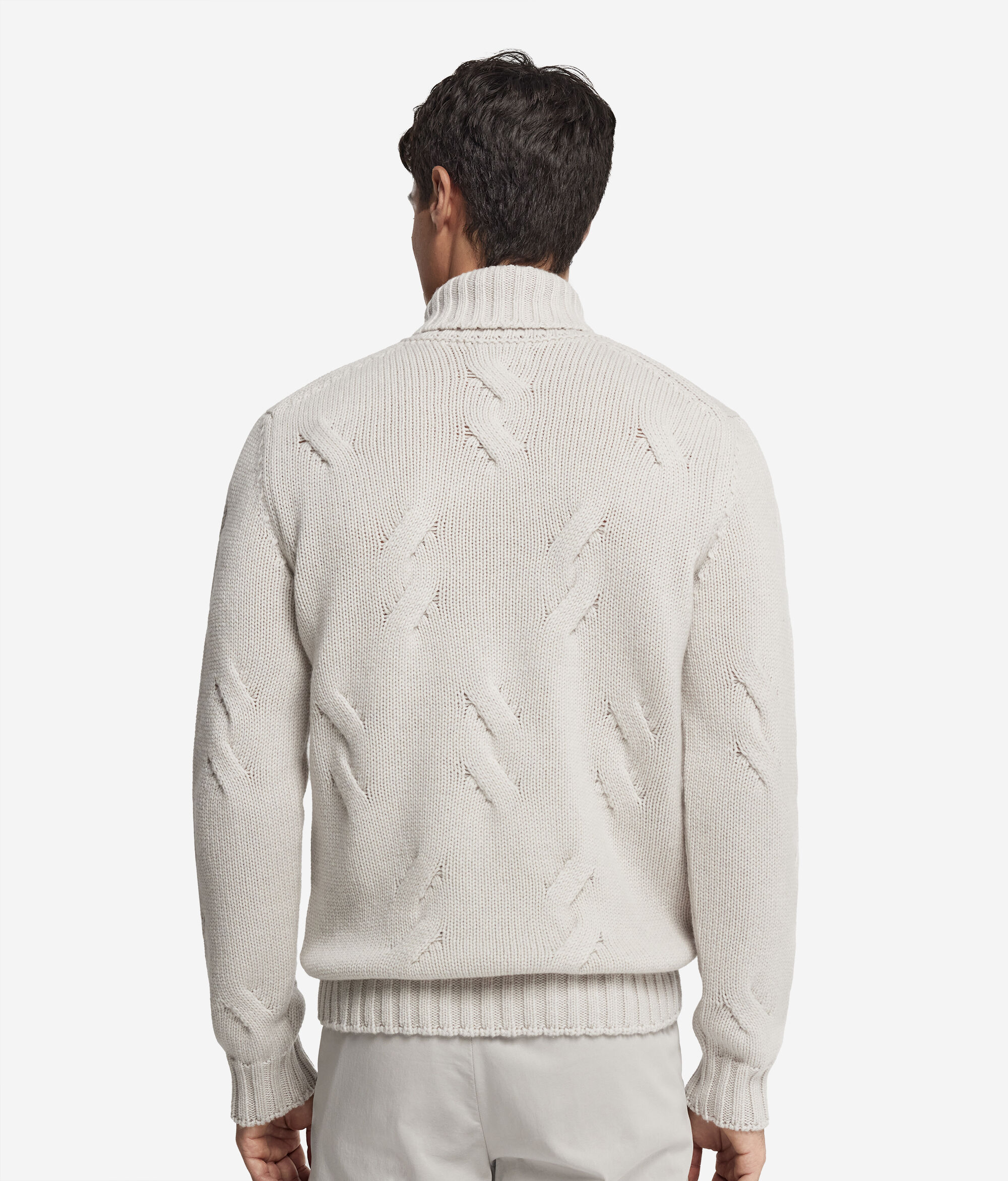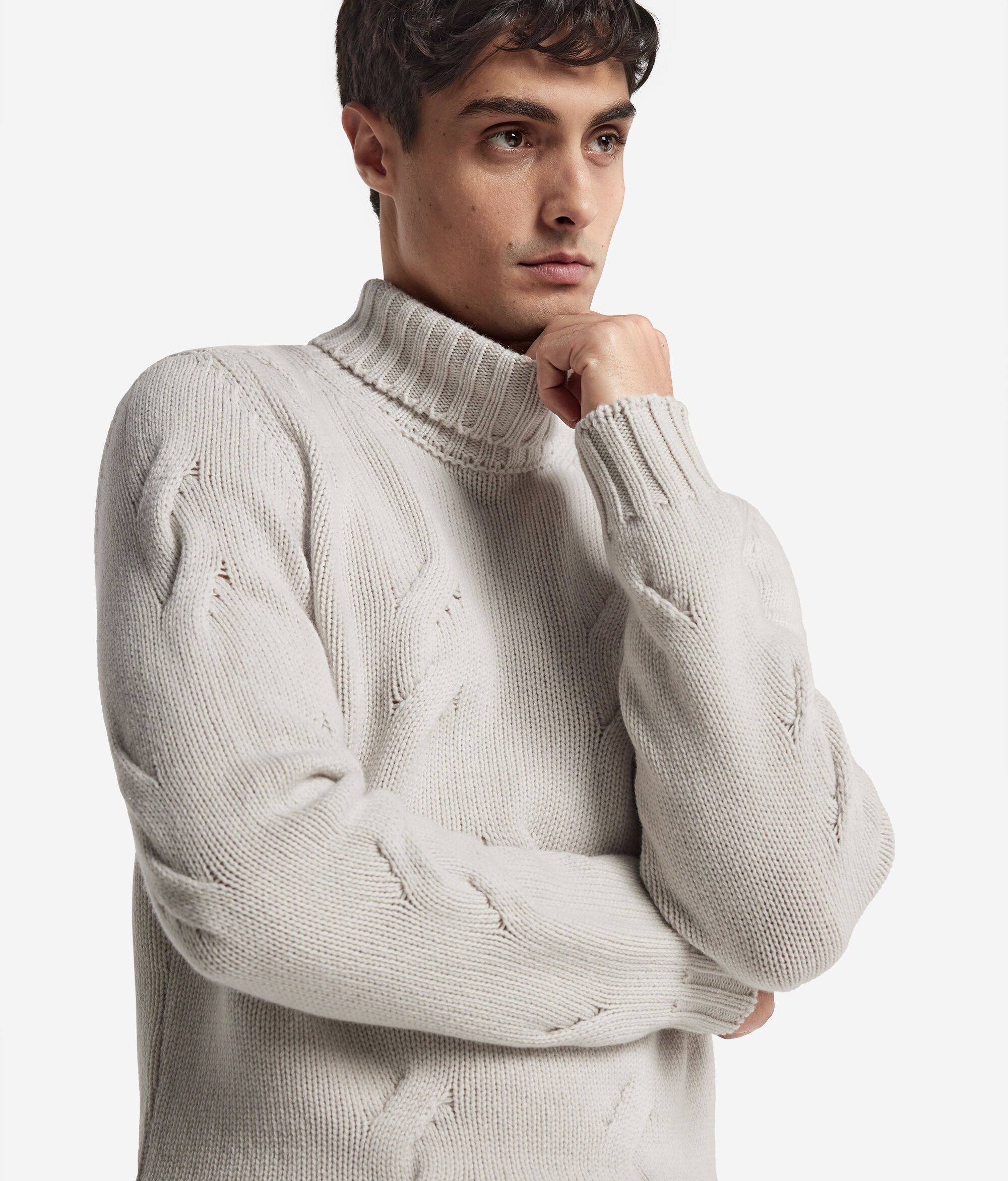 This Ultrasoft Cashmere turtleneck jumper features a refined cable pattern. Its comfort and Nordic design combine with a Regular Fit. We recommend sizing up one to two sizes for the best fit to make this garment ideal to wear all day.