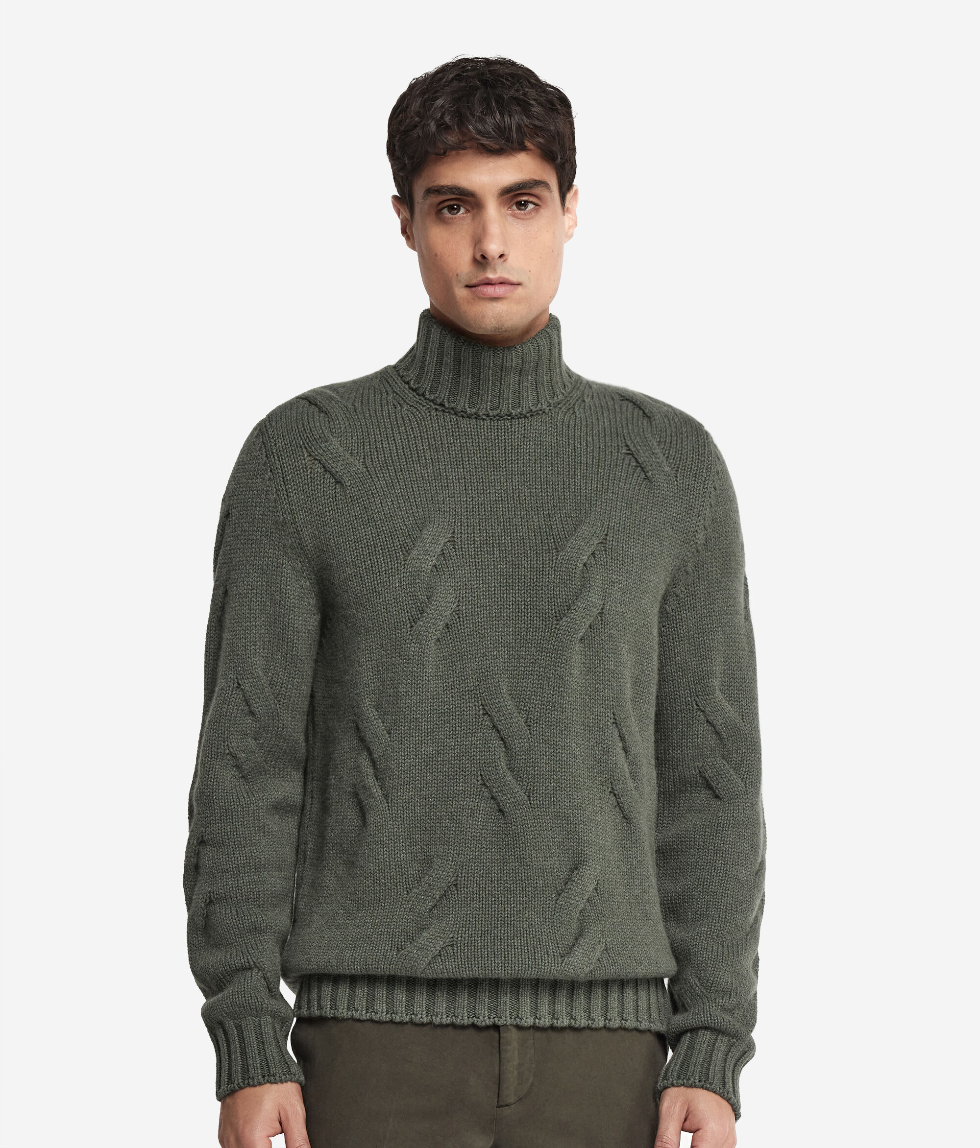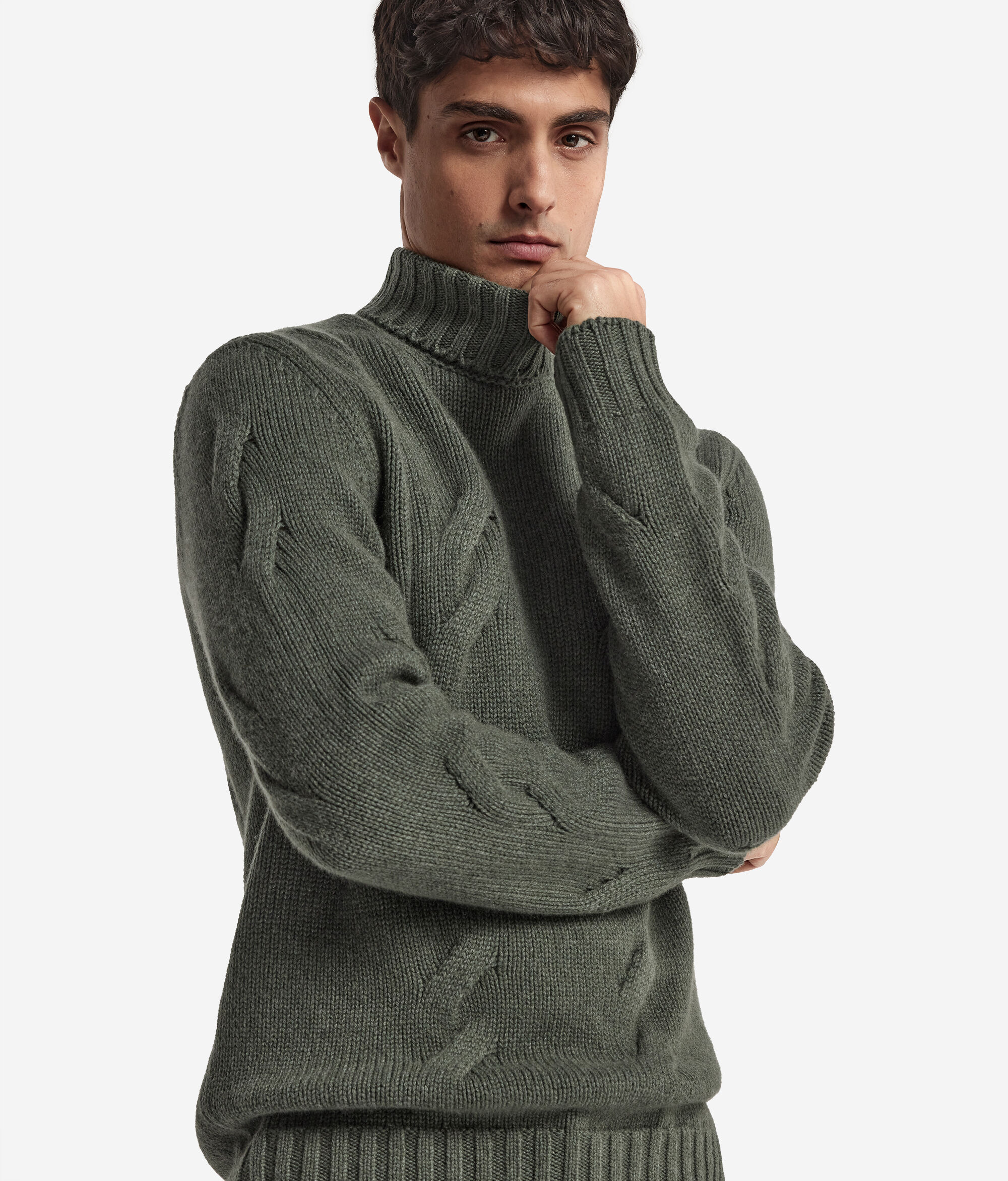 Cashmere Turtleneck Jumper with Cable Pattern