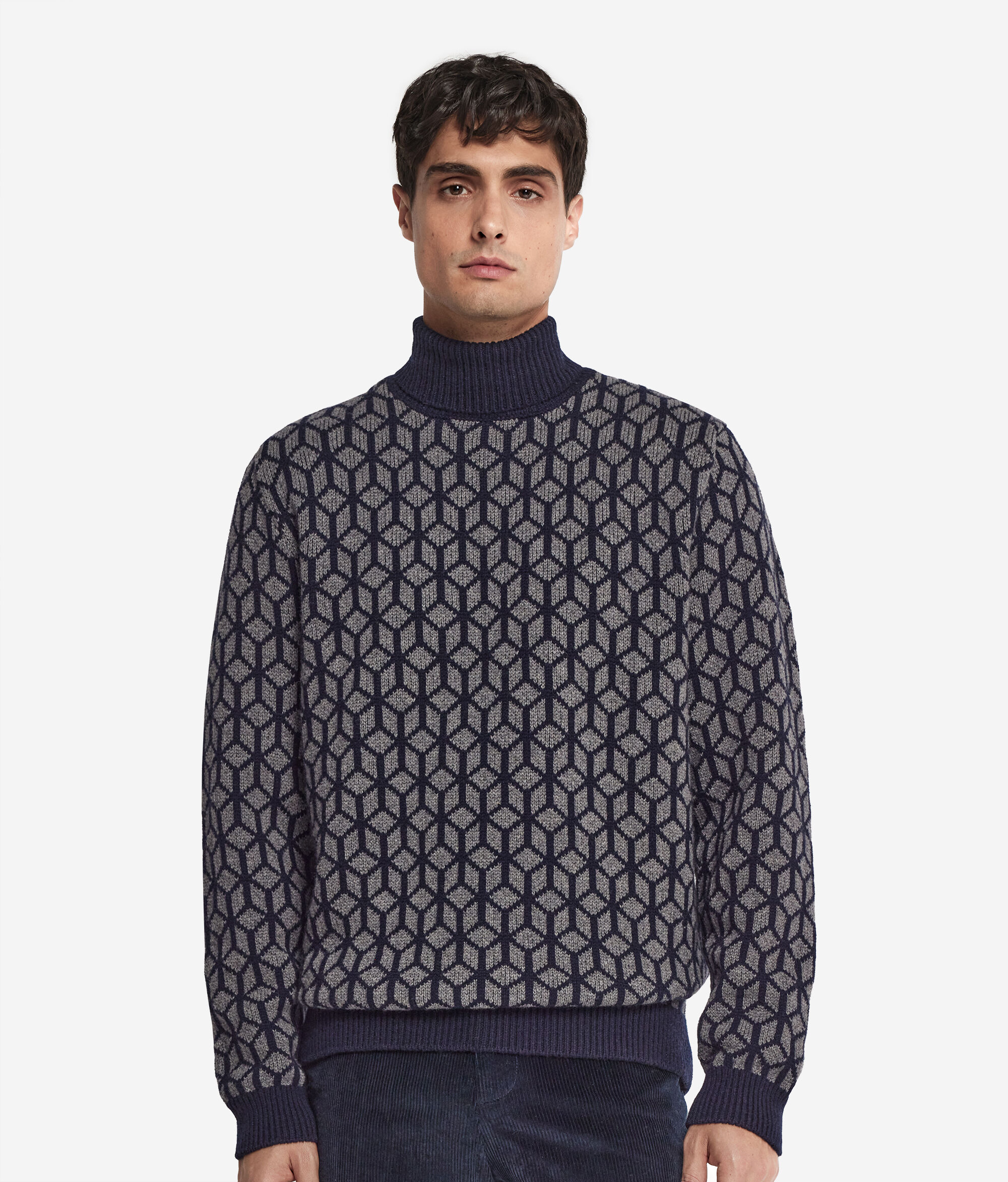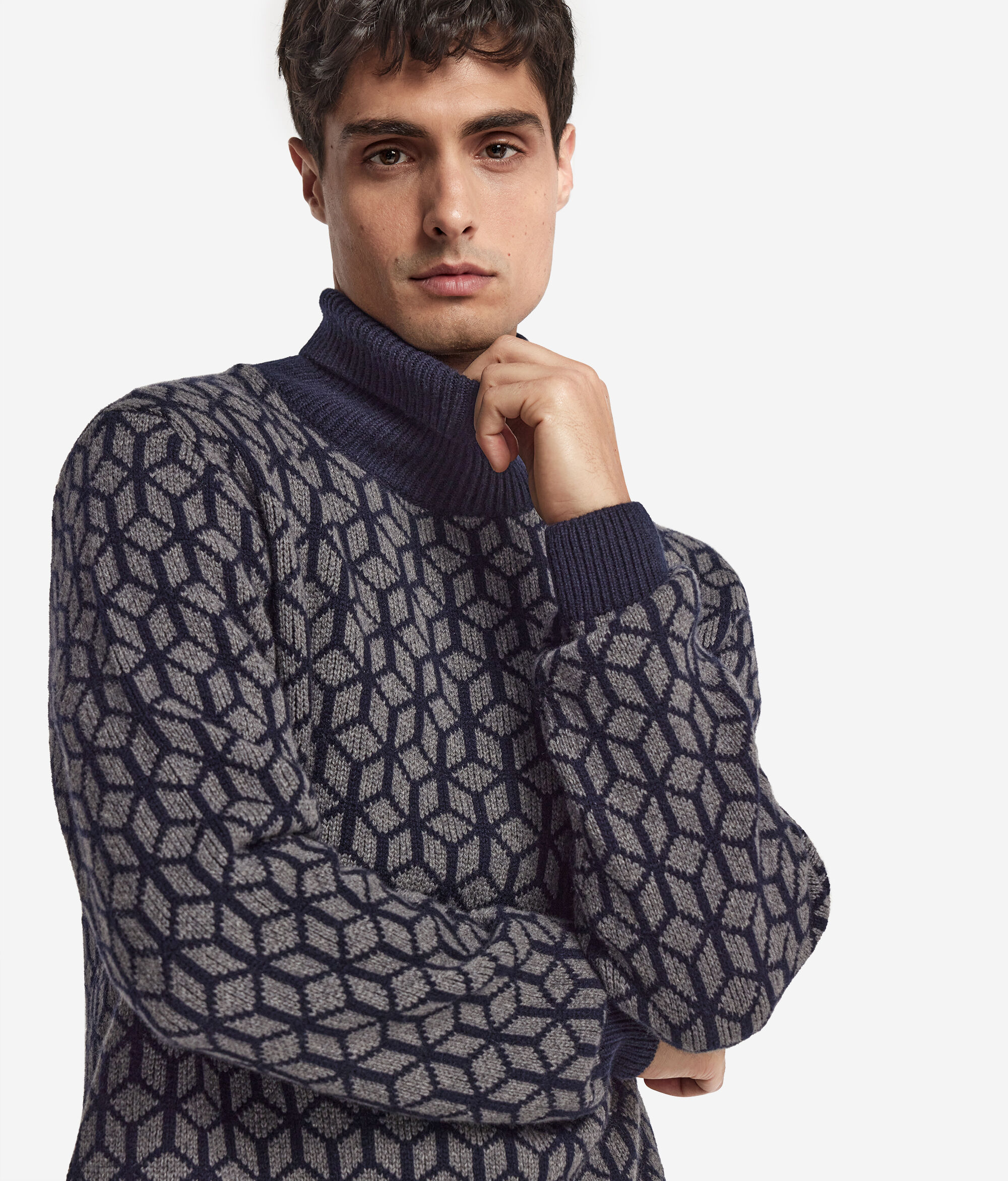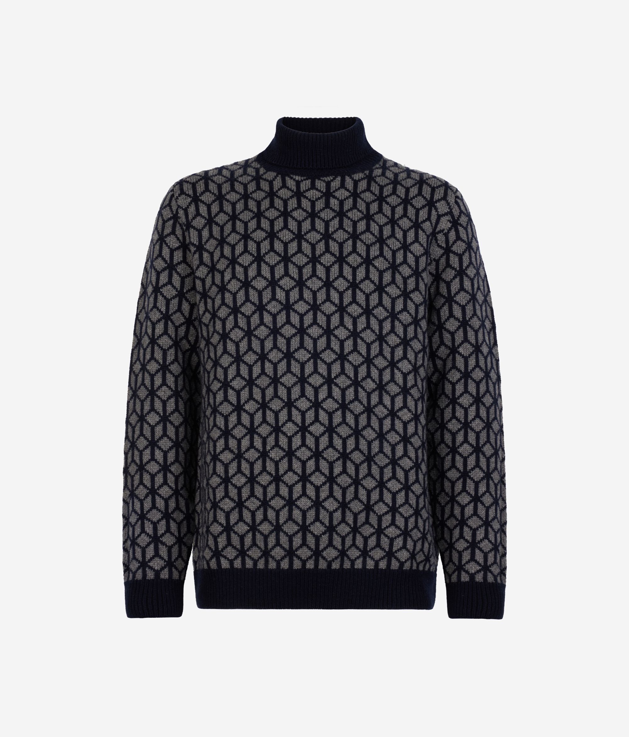 Jacquard Cashmere Turtleneck Jumper with Optical Motif