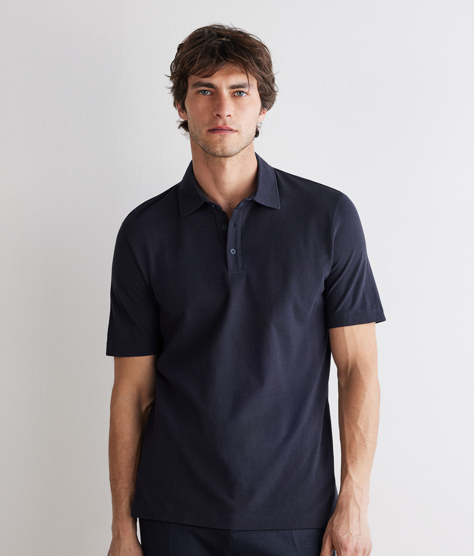 Questa polo è realizzata in jersey piquet di cotone e seta (83% cotone, 17% seta). Il capo presenta spacchi laterali e un’etichetta con logo in microfibra effetto suede.