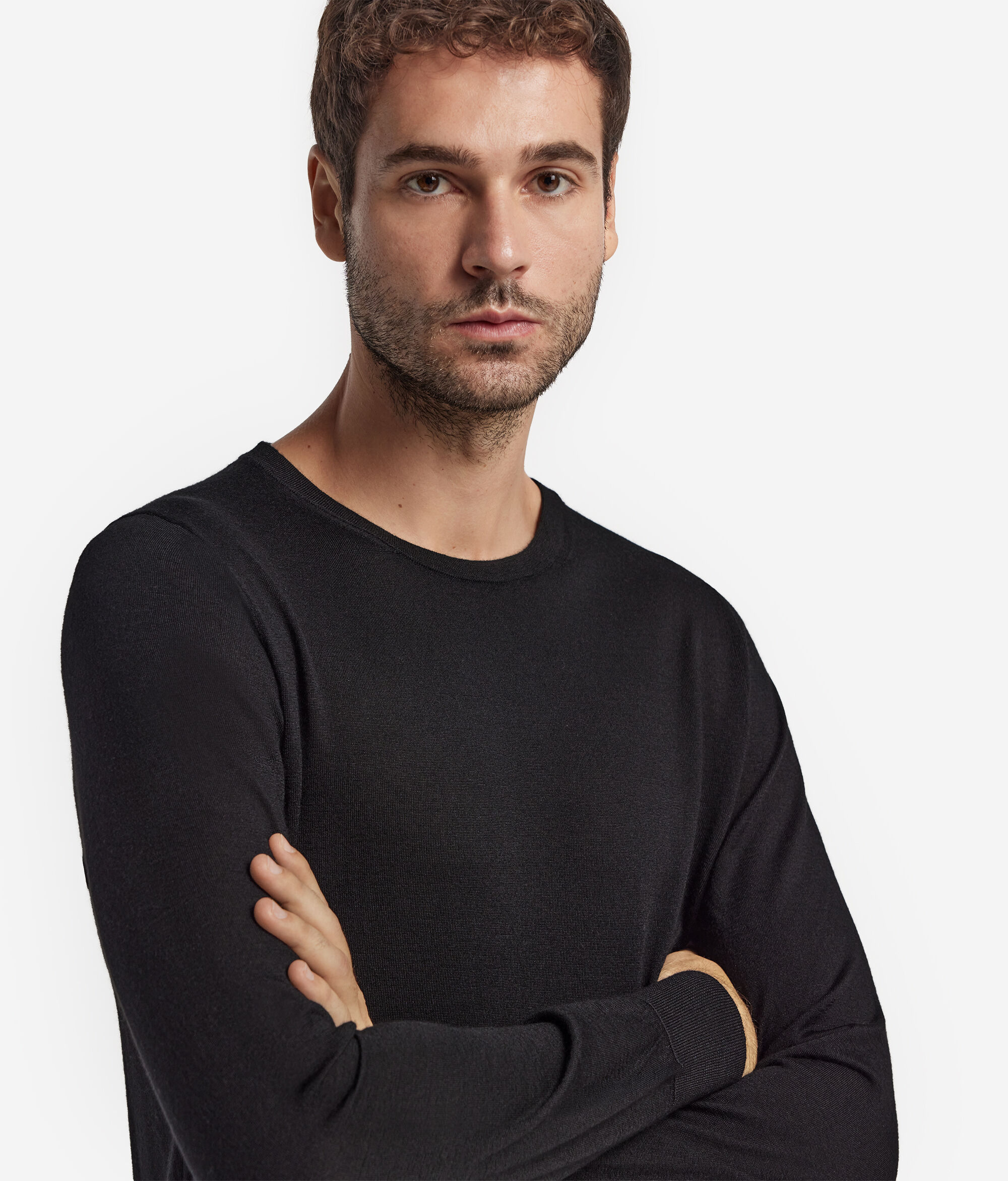 The natural ultrafine cashmere fibre enhances the timeless style of this crew neck sweater. Soft and exquisitely light on the skin, it offers a perfect balance between lightness and a warm embrace. Versatile and elegant, this is an essential garment in a man’s wardrobe, ideal to wear alone or under a jacket for a refined look on any occasion