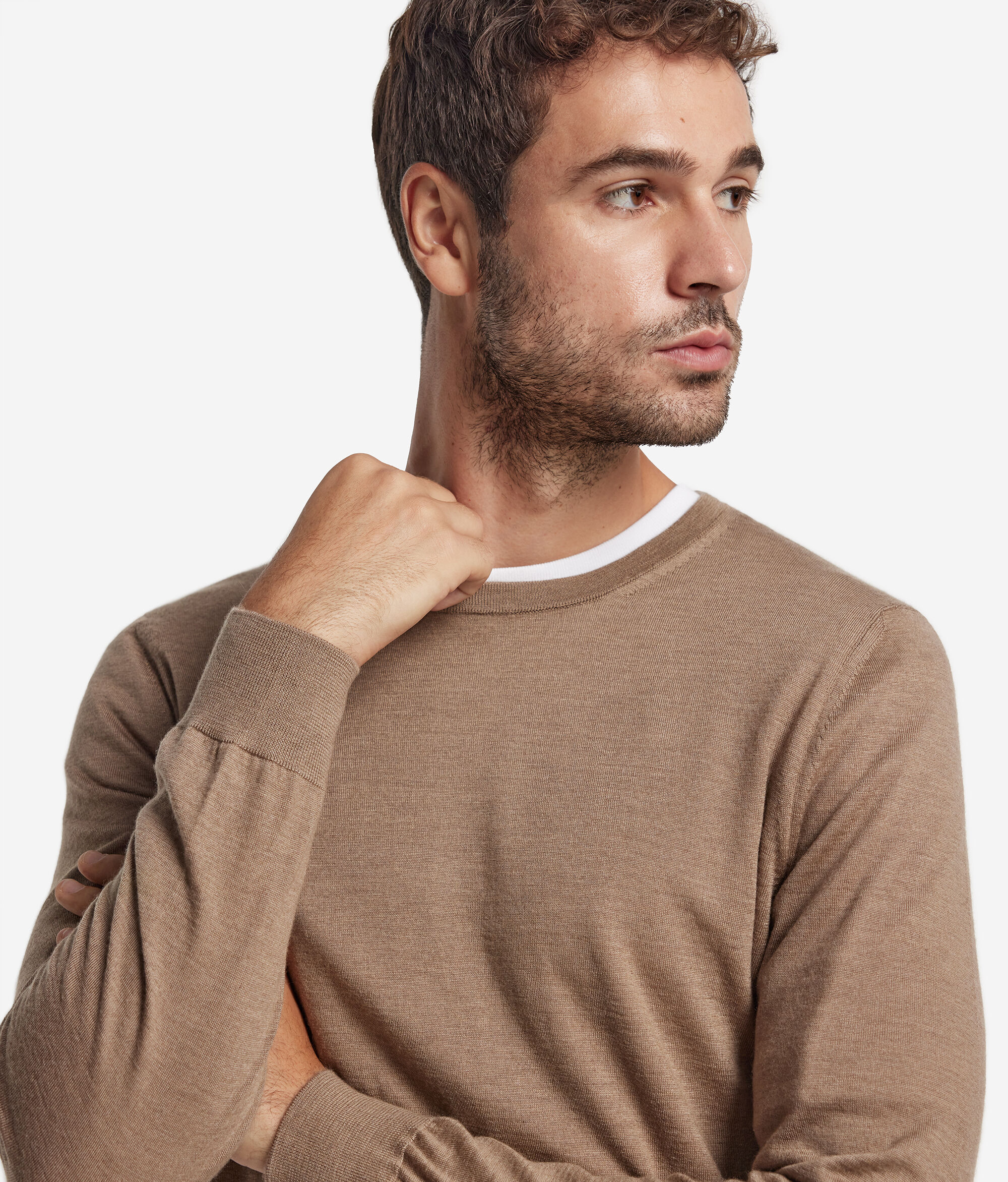 The natural ultrafine cashmere fibre enhances the timeless style of this crew neck sweater. Soft and exquisitely light on the skin, it offers a perfect balance between lightness and a warm embrace. Versatile and elegant, this is an essential garment in a man’s wardrobe, ideal to wear alone or under a jacket for a refined look on any occasion