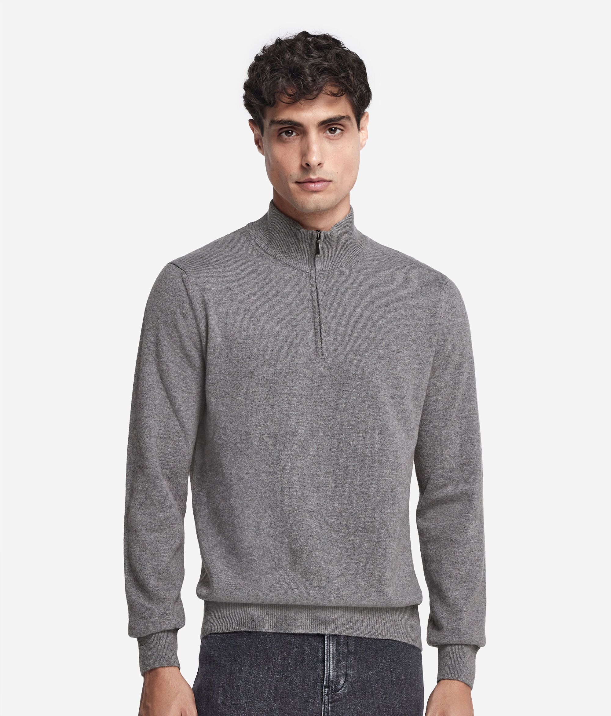 This Ultrasoft Cashmere half-zip funnel-neck jumper is an essential part of any gentleman's wardrobe, embellishing outfits with a touch of casual elegance. The fit features regular volumes over the chest and the shoulders.