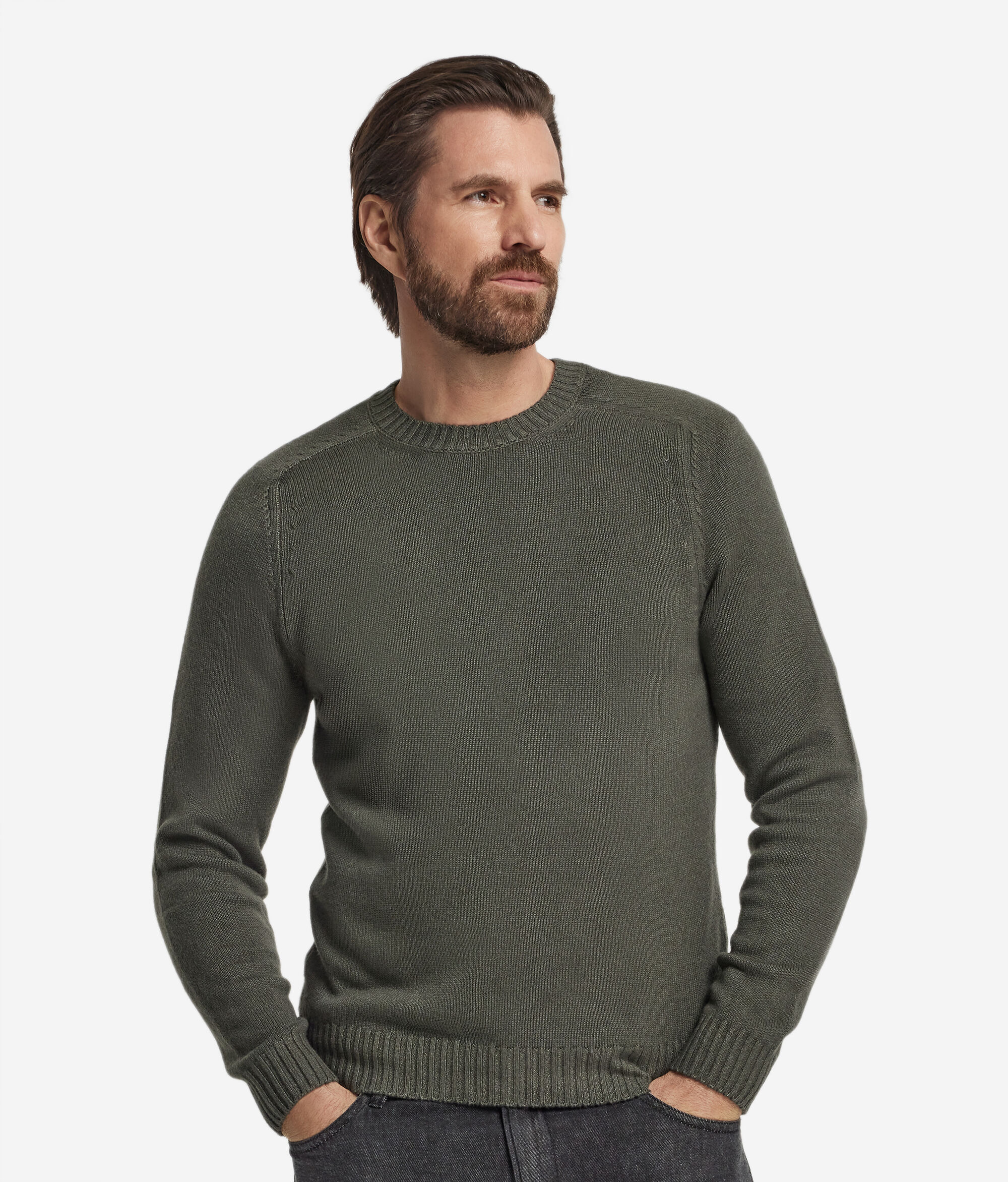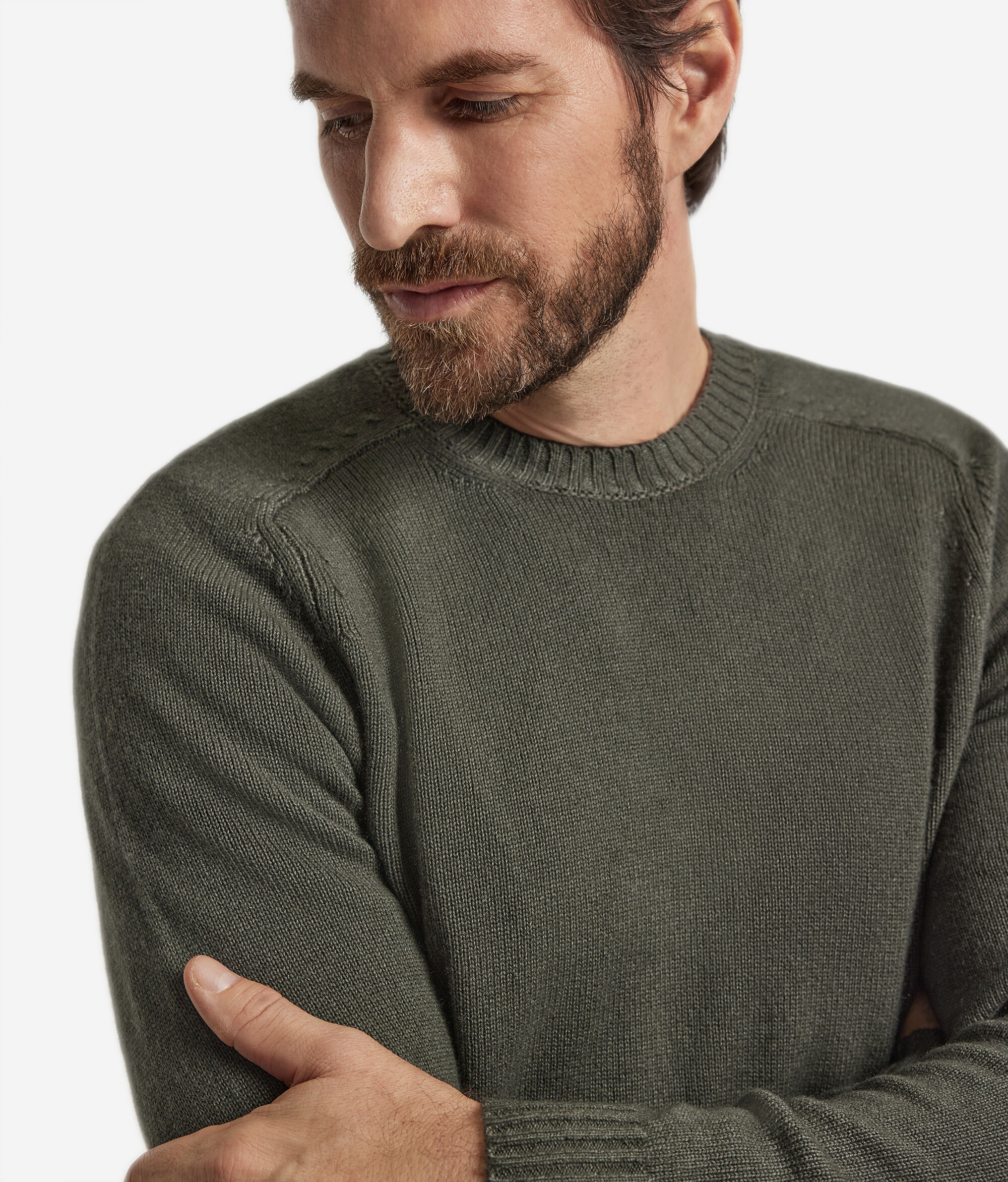 This Ultrasoft Cashmere round-neck jumper is a key part of any gentleman's wardrobe, embellishing outfits with a touch of casual elegance. The design features is characterised by the sporty set-in sleeves and the special dyeing that gives it a marbled appearance. Regular Fit. We recommend sizing up one to two sizes for the best fit.