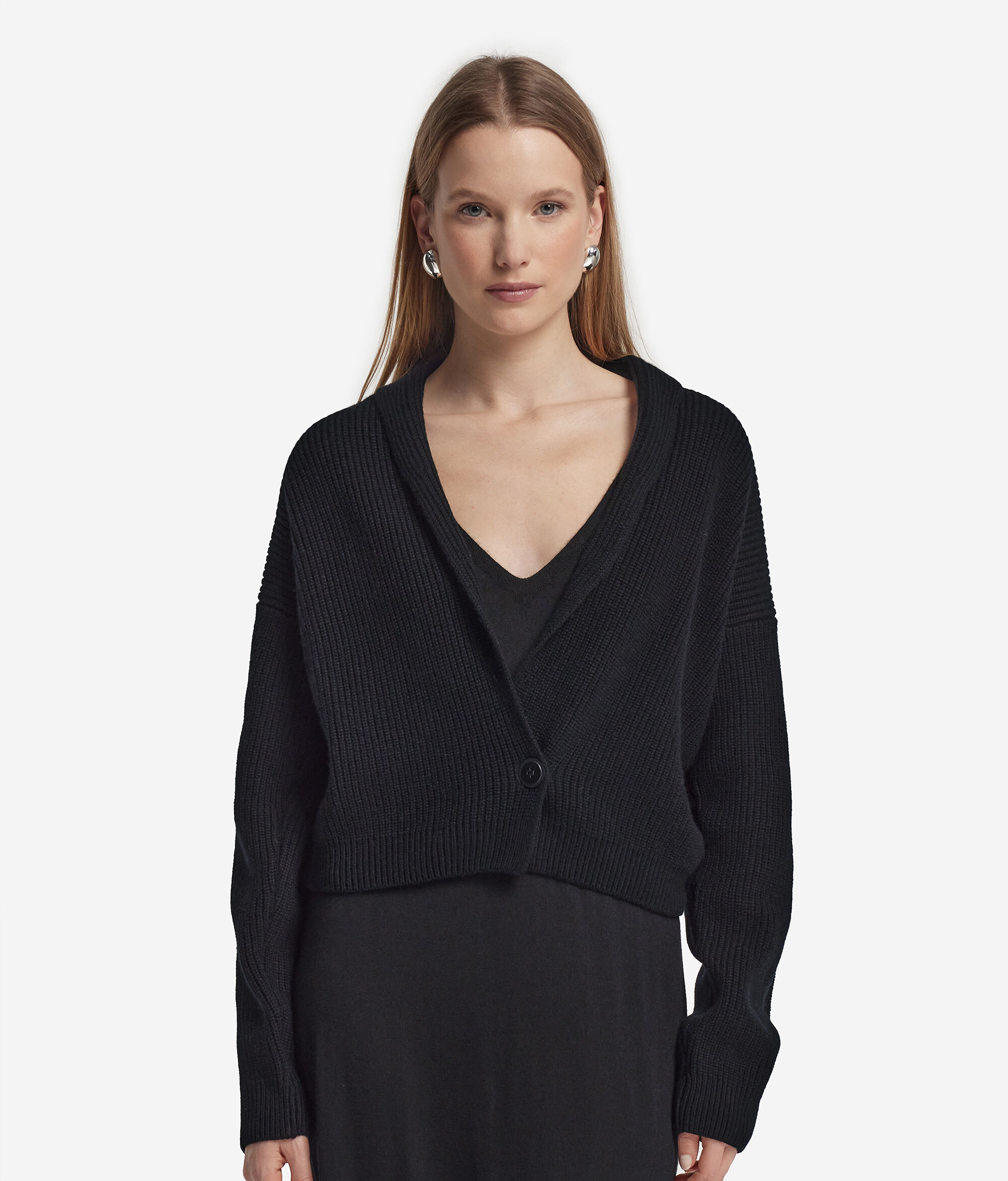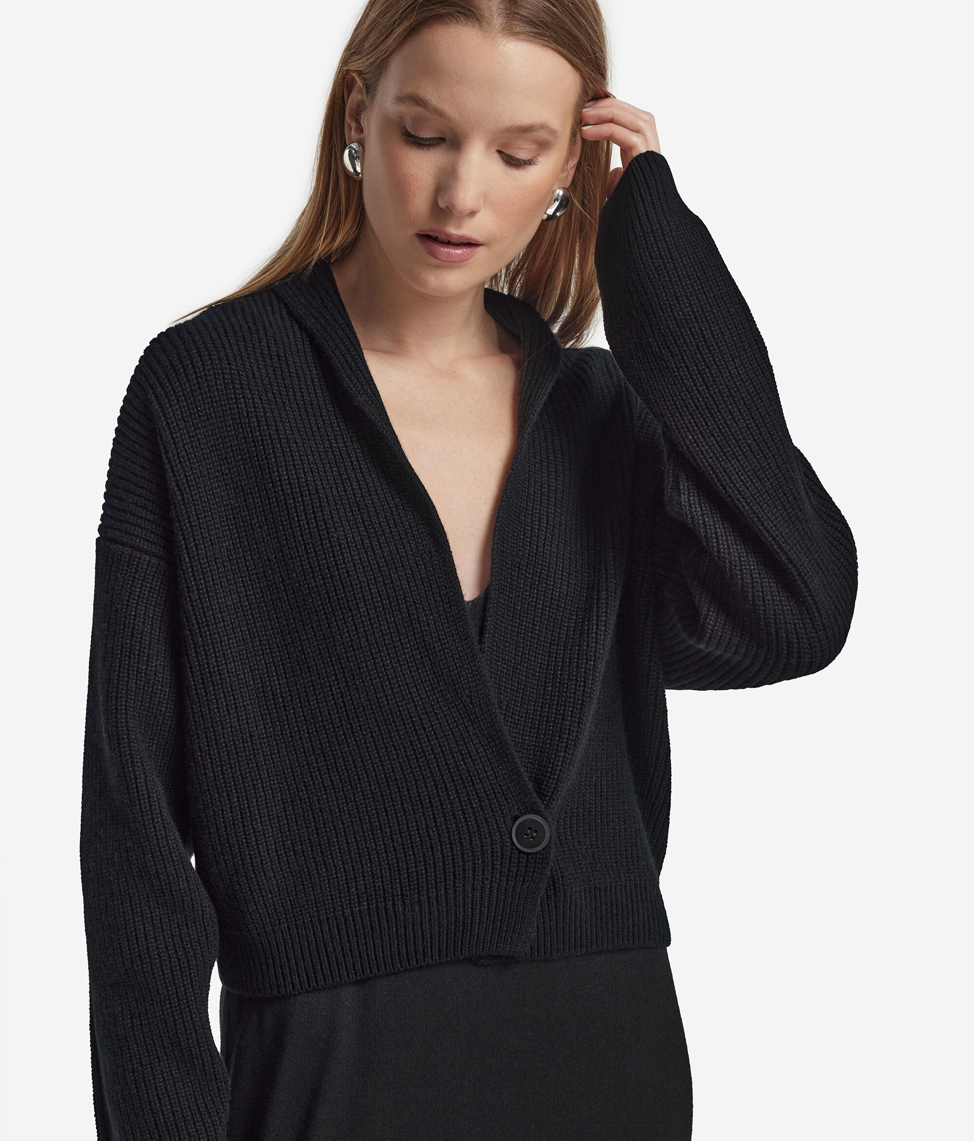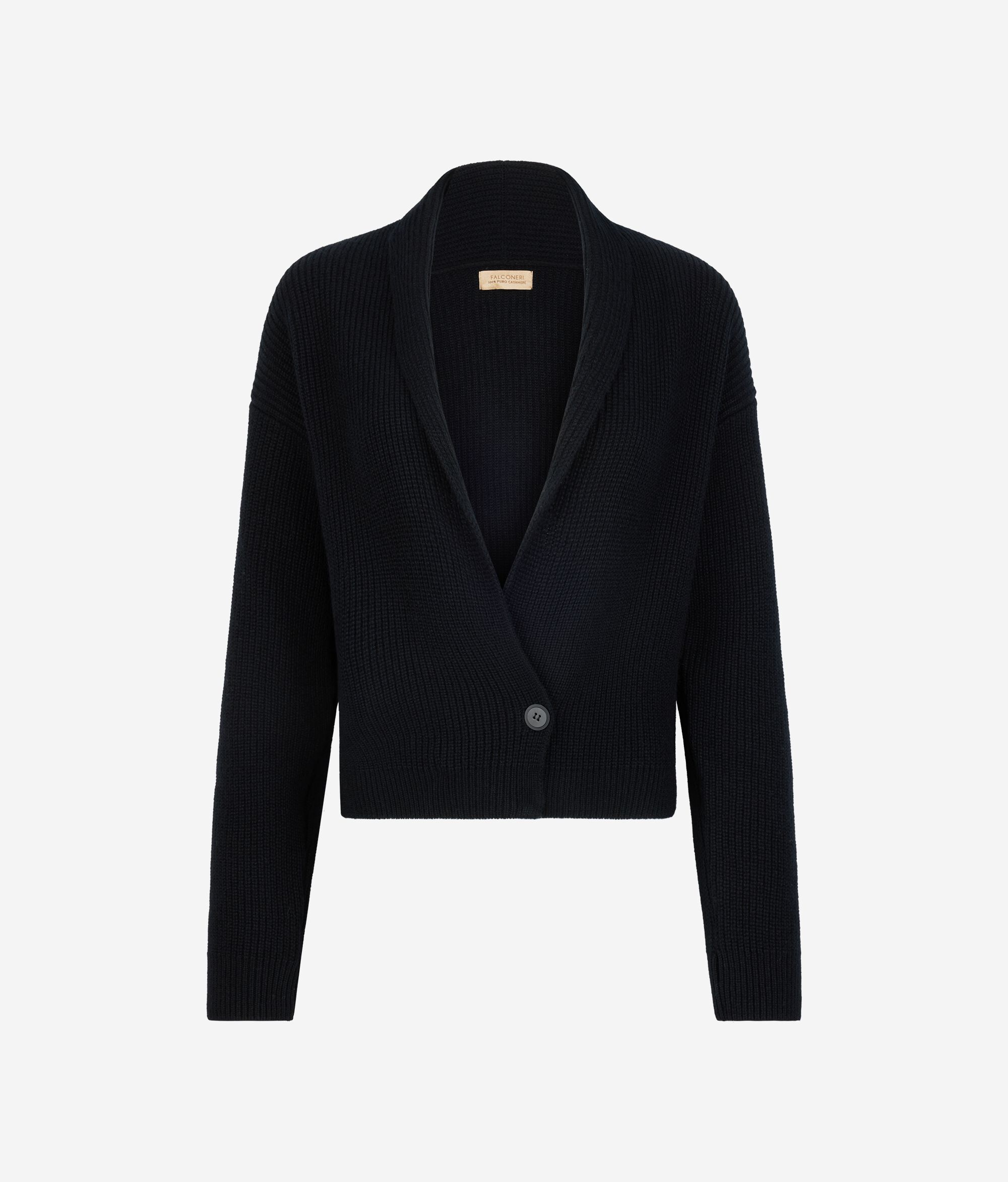 El preuat fil de cashmere ultrasoft posa en relleu el disseny elegant d'aquest càrdigan. La peça es vanta d'un tall de xal, enriquit amb un tancament central amb botó i amb una solapa que forma un escot en punta profund. Sobri, però clarament sofisticat, no pot faltar a l'armari de les amants de la qualitat i l'estil sofisticat.