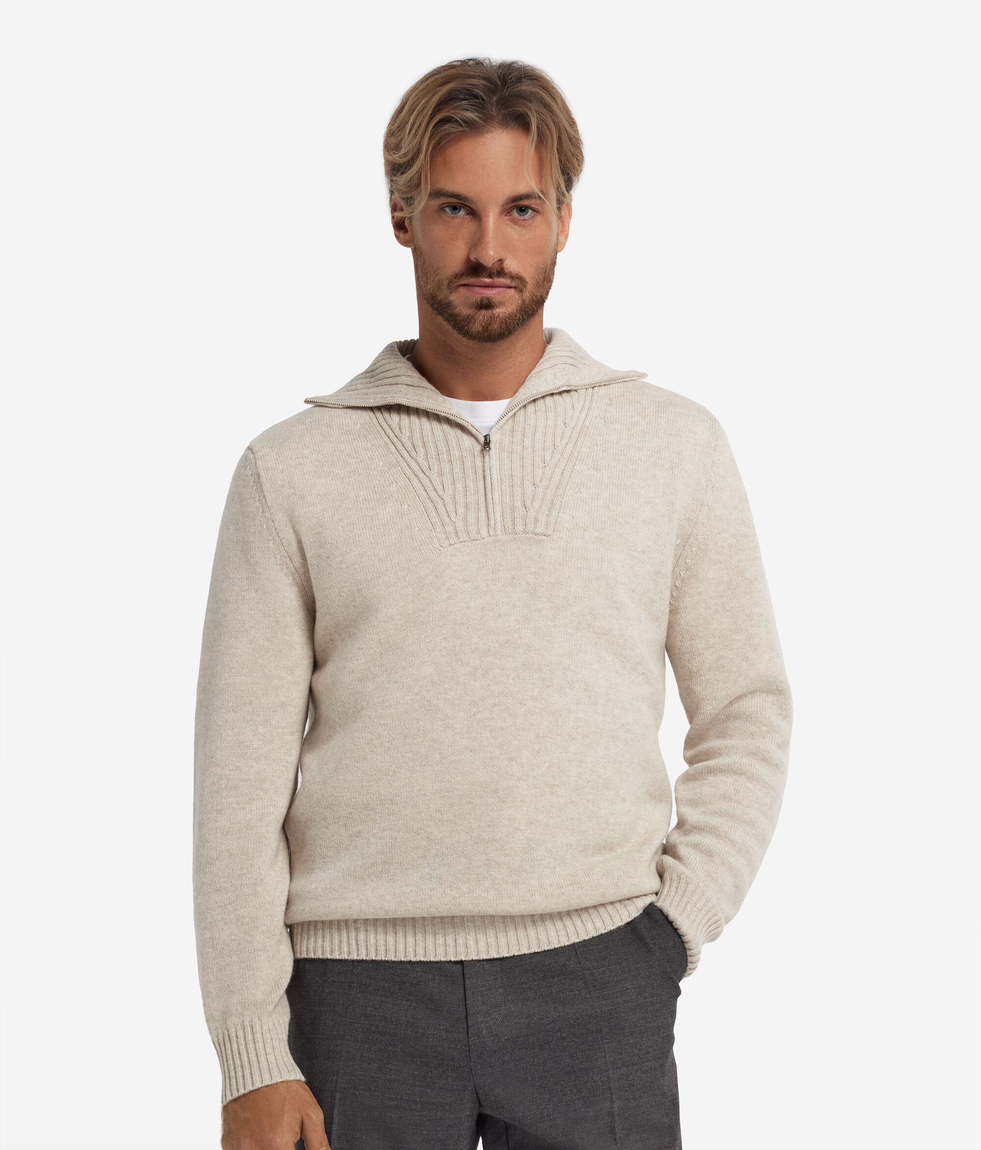 Jersey de punto canalé con cremallera en cashmere ultrasoft