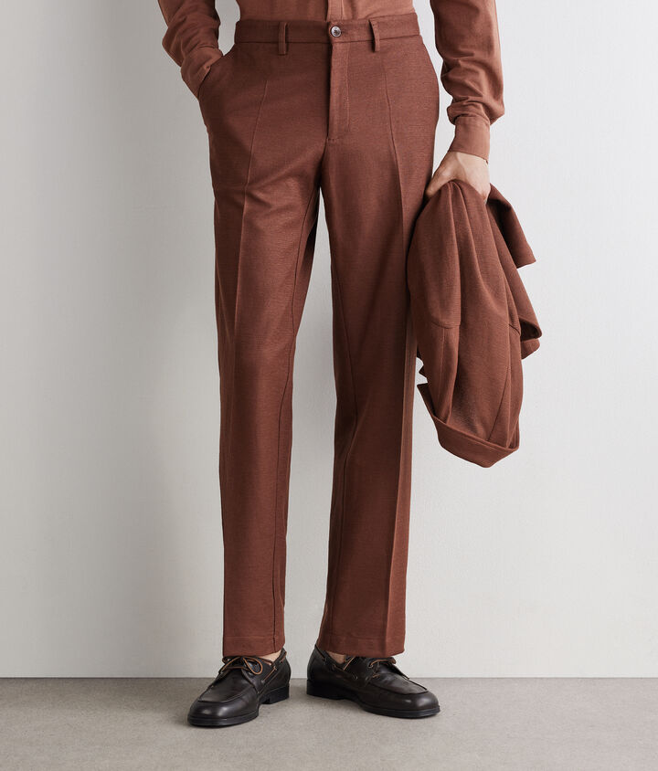 Los conjuntos de chaqueta y pantalón de Falconeri se presentan en una paleta cromática esencial que refleja la sobriedad del estilo mediterráneo. Su diseño versátil permite combinarlos con un cárdigan de punto fino para un look relajado de fin de semana, o con una camisa de algodón para ocasiones más formales. Cada conjunto se adapta sin esfuerzo del día a la noche, proyectando refinamiento natural.