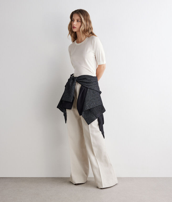 Camiseta de Cuello Redondo en Raso de Seda108,00 €Elige un colorPannaGRIS NÁCAR CLAROBlu navy+ 8Color seleccionado Panna