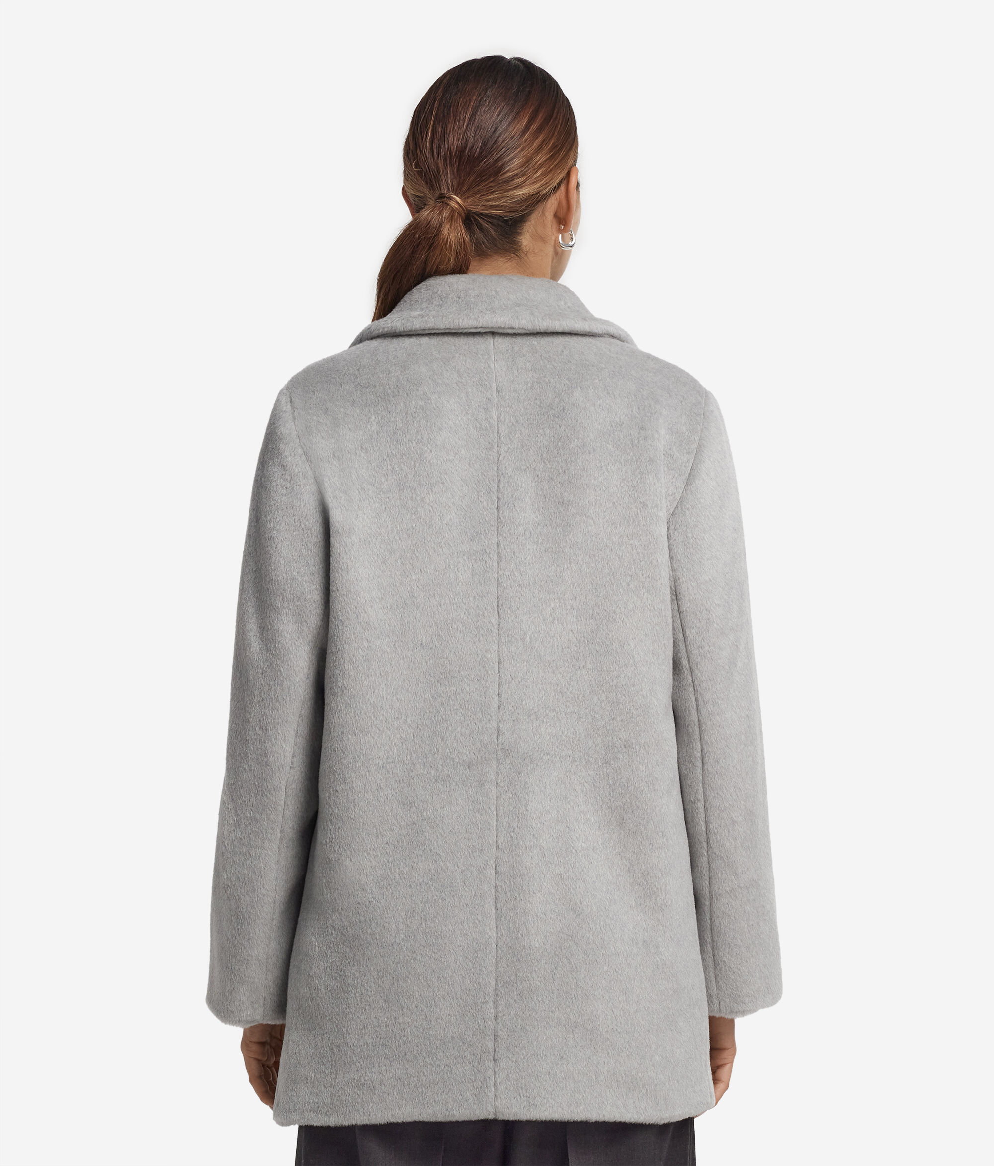 Cálido y envolvente, este abrigo en tejido de alpaca y lana efecto pelo está diseñado para quien busca un alto nivel de confort sin renunciar al estilo. La solapa clásica y el cierre de botonadura sencilla con botones definen un diseño esencial pero distintivo. El hombro caído asegura un corte cómodo y holgado, mientras que los bolsillos de ojal del delantero aumentan su practicidad. Con su largo por debajo de la cadera, es la prenda ideal para afrontar los días más fríos con un toque de carácter.