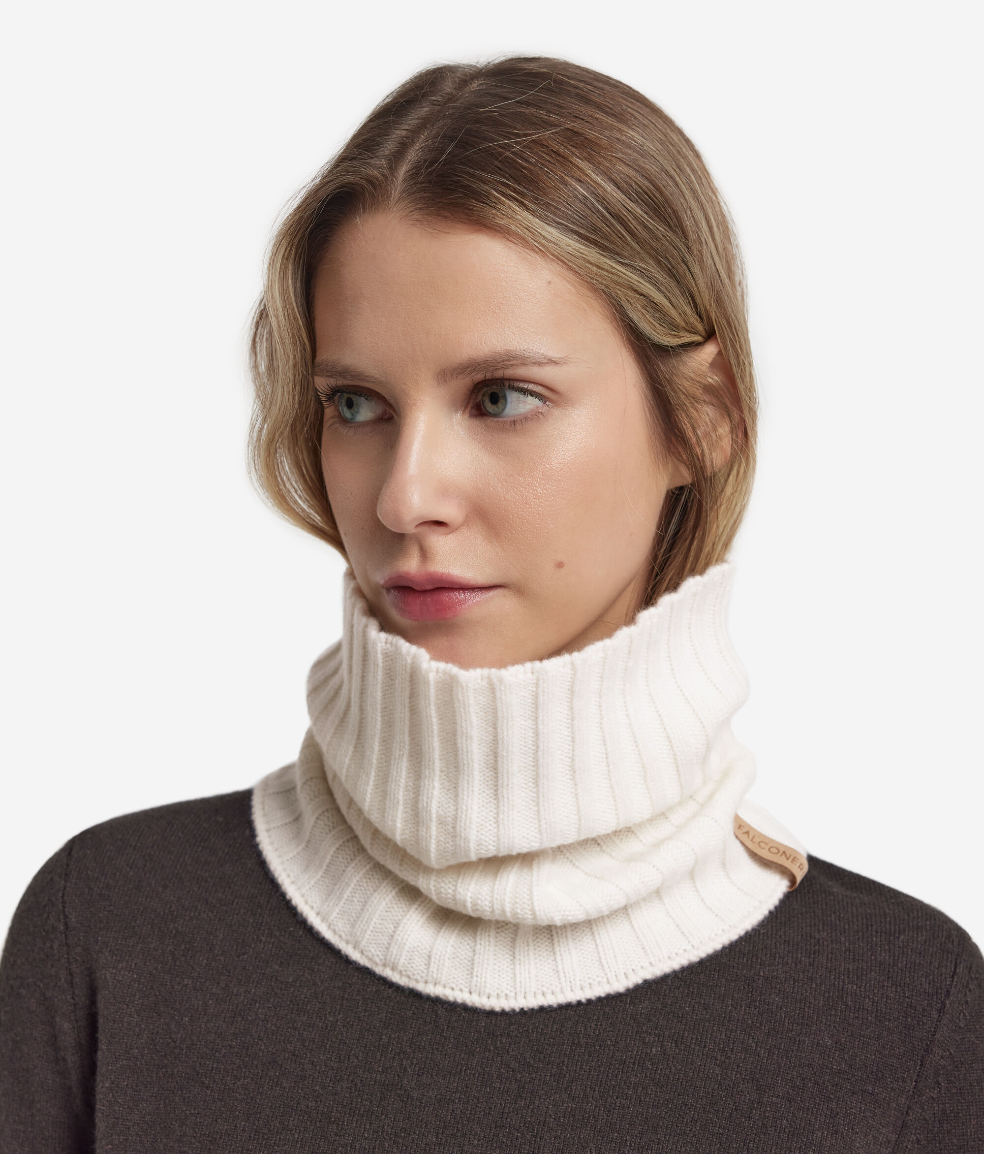 Bufanda circular en punto canalé de cashmere ultrasoft