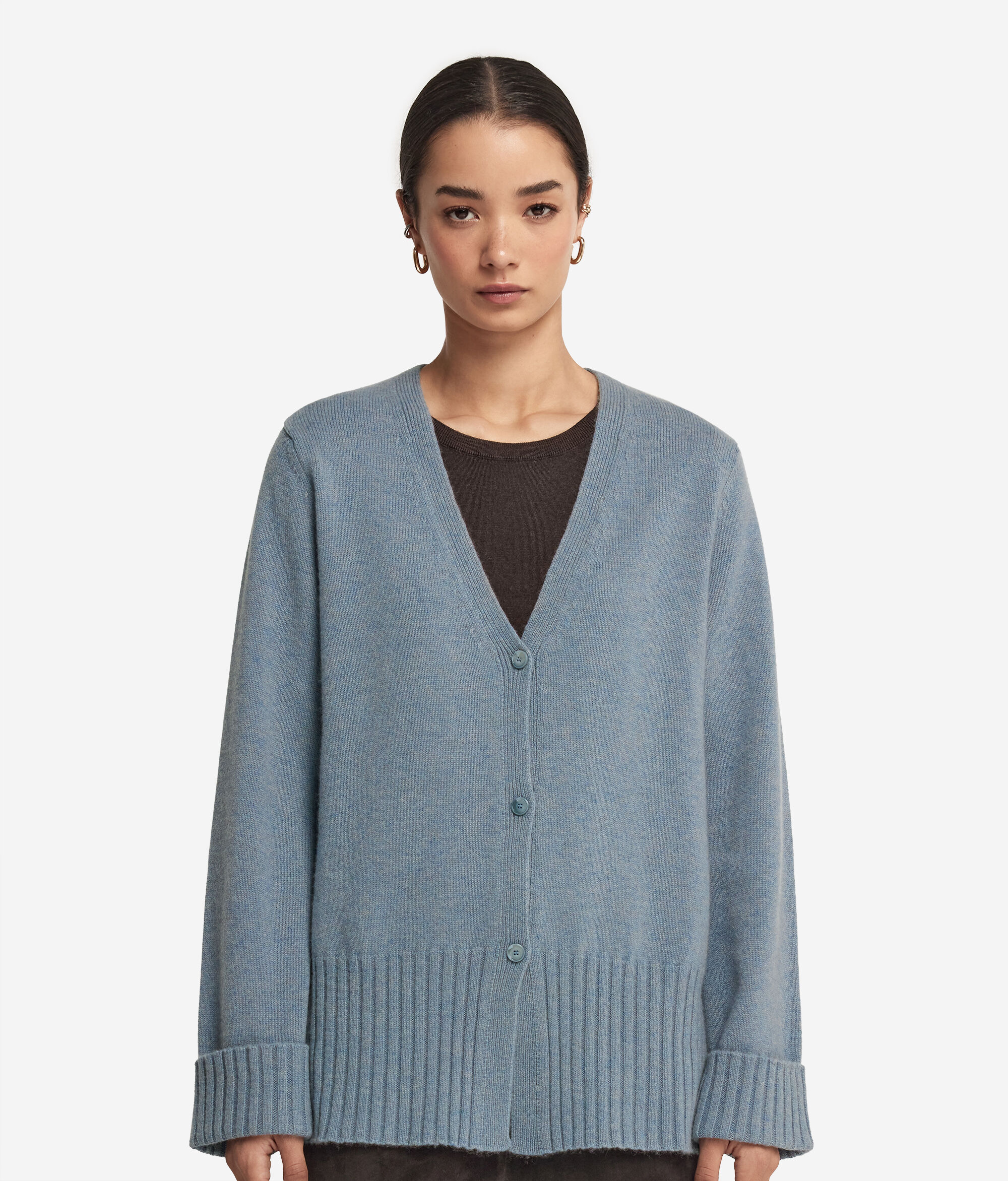 Cárdigan con cuello de pico de cashmere ultrasoft