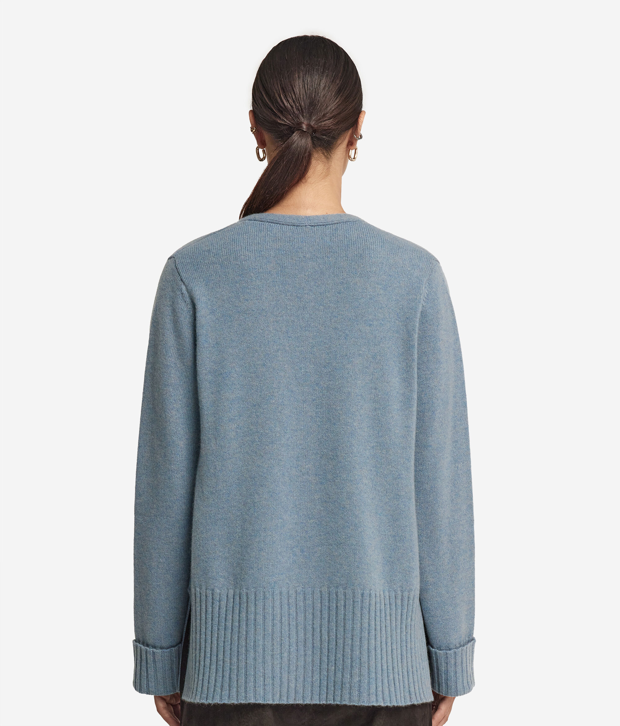 Este cárdigan con cuello de pico combina la excelente calidad del cashmere ultrasoft y una exclusiva confección artesanal dando vida a una prenda que conjuga delicadeza y carácter con maestría. El cierre frontal con tres botones tono sobre tono aporta un toque de elegancia y sobriedad, mientras que las aberturas del bajo añaden fluidez y movimiento a su diseño. El remate de canalé del borde y de los puños con vuelta embellece la prenda confiriéndole un aspecto impecable y distintivo.