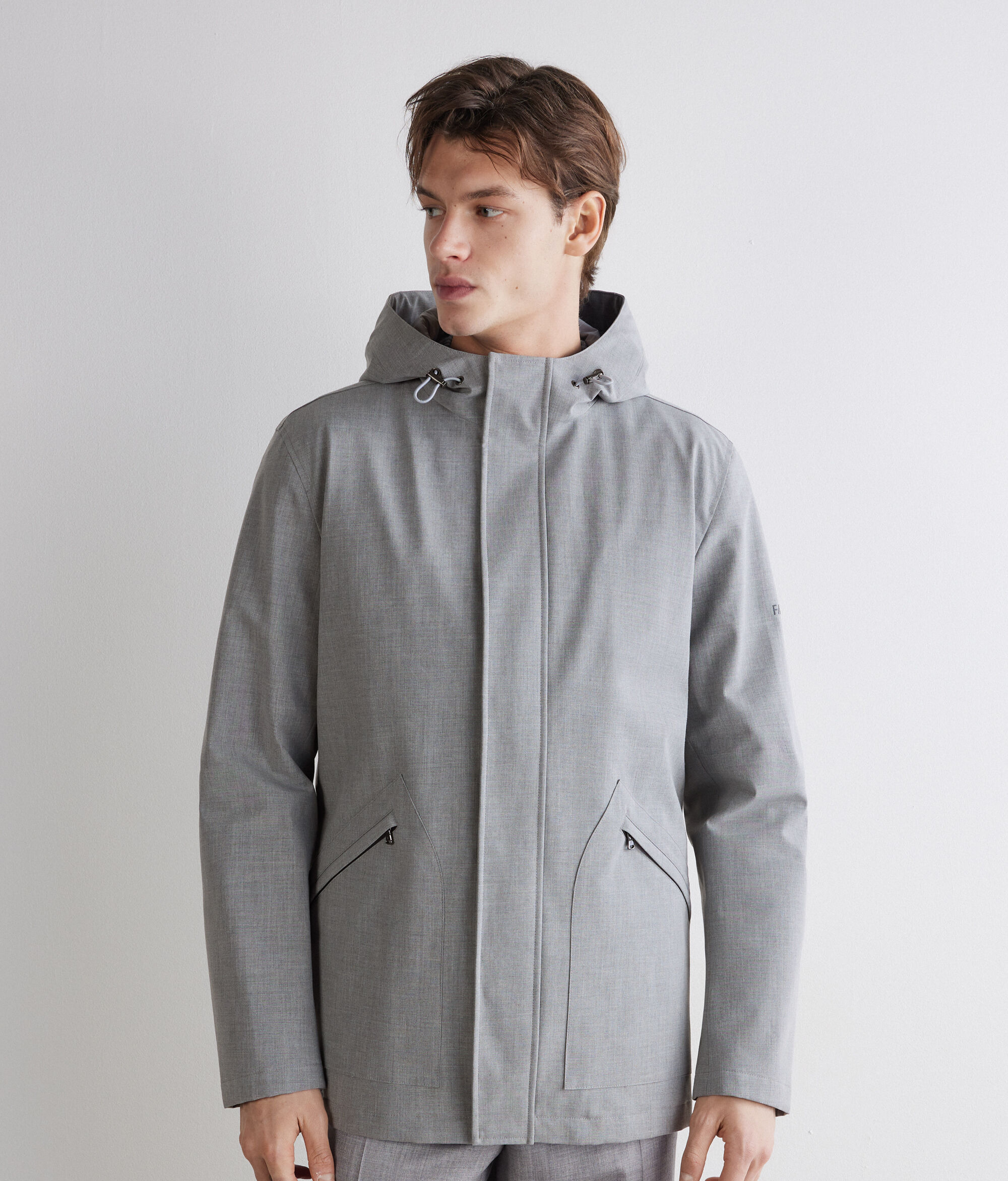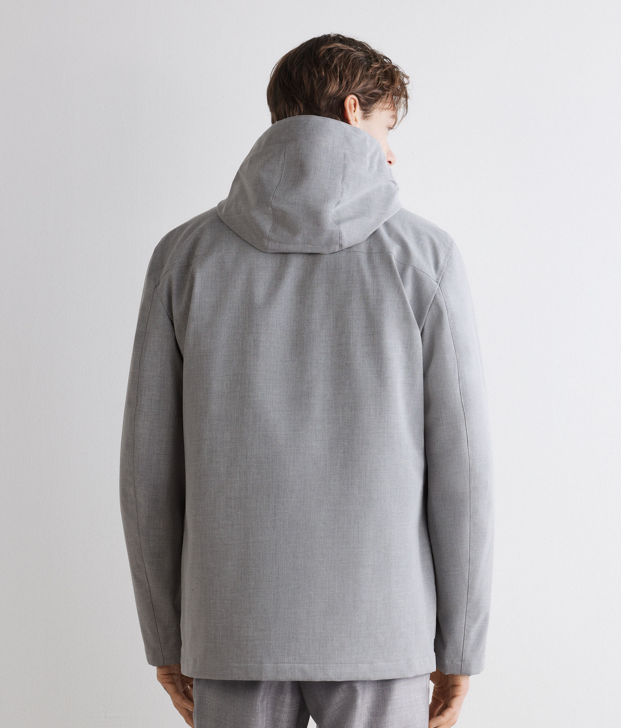 Chaqueta con capucha en tejido técnico con cashmere