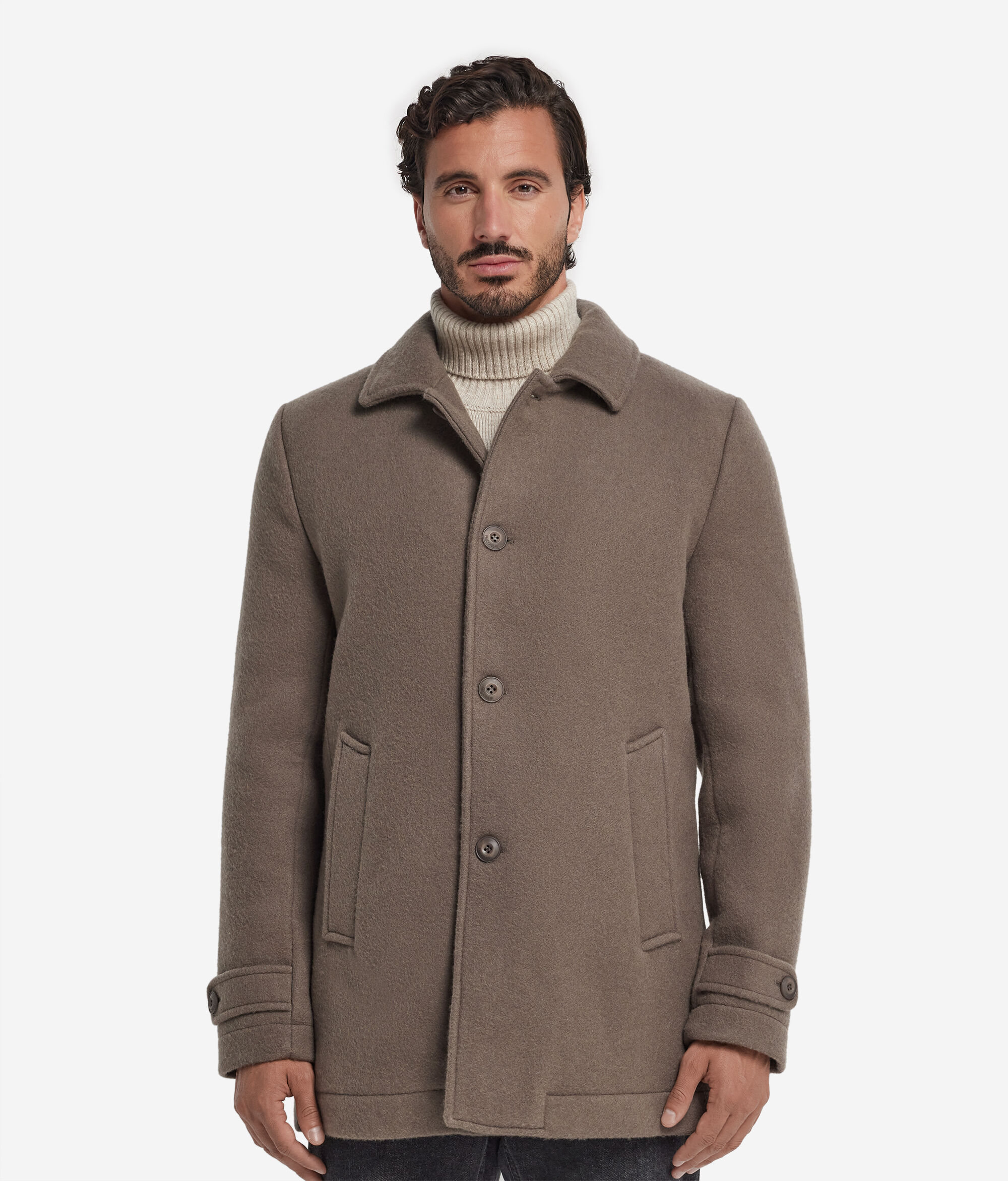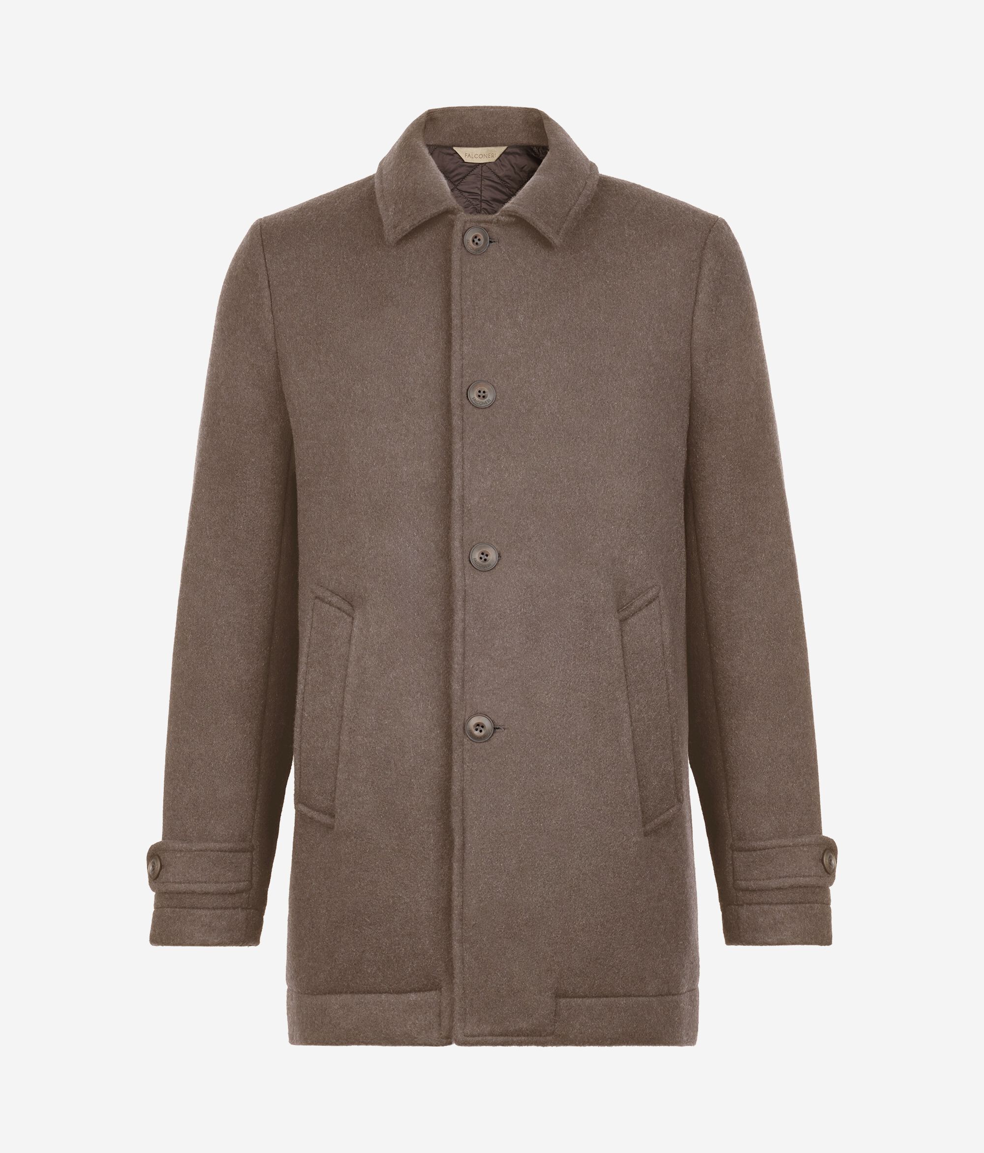 Esta chaqueta, confeccionada en cashmere suave, combina sofisticación y practicidad gracias al interior de tejido técnico acolchado, diseñado para ofrecer calidez y protección. El cuello estructurado y la botonadura central definen un diseño clásico y refinado. Los bolsillos de ojal y la abertura posterior añaden funcionalidad, mientras que el corte estándar garantiza un estilo desenfadado y versátil.