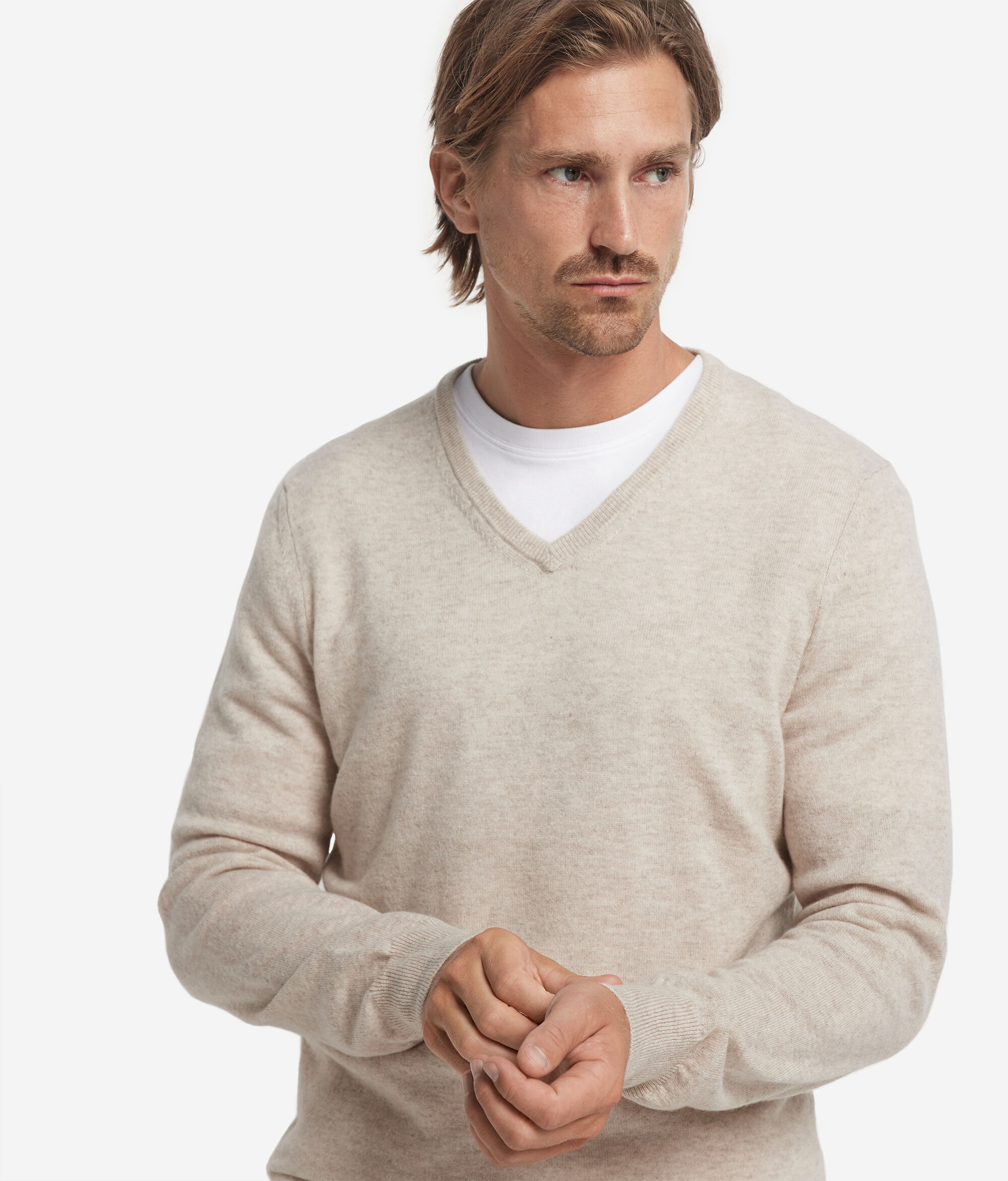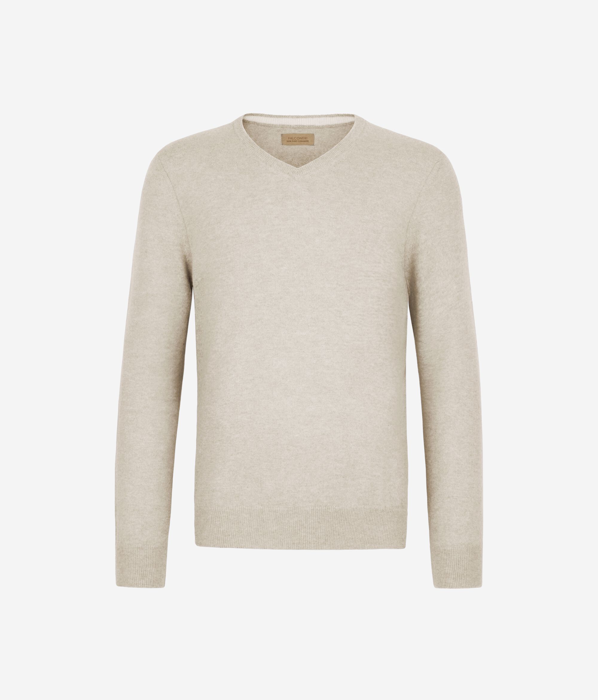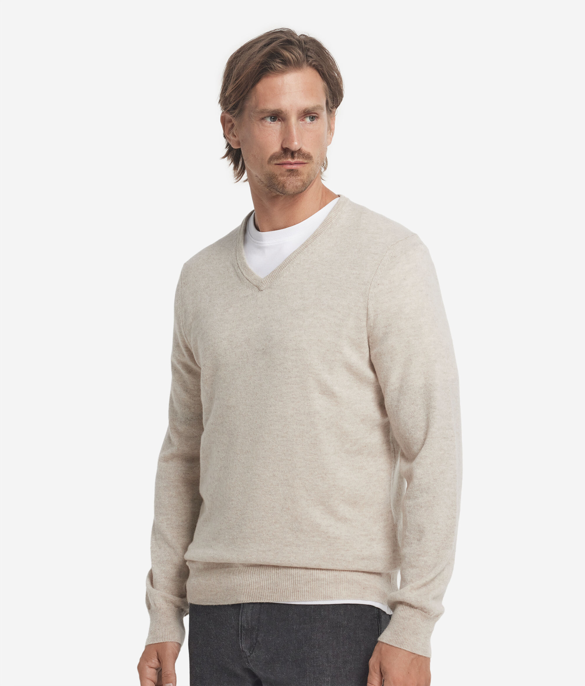Jersey con cuello de pico confeccionado en preciado cashmere ultrasoft y pensado para ofrecer delicadeza y estilo. Su diseño se distingue por el sofisticado cuello ribeteado y el corte estándar, que conforman una prenda versátil e ideal para vestir con elegancia en el día a día.