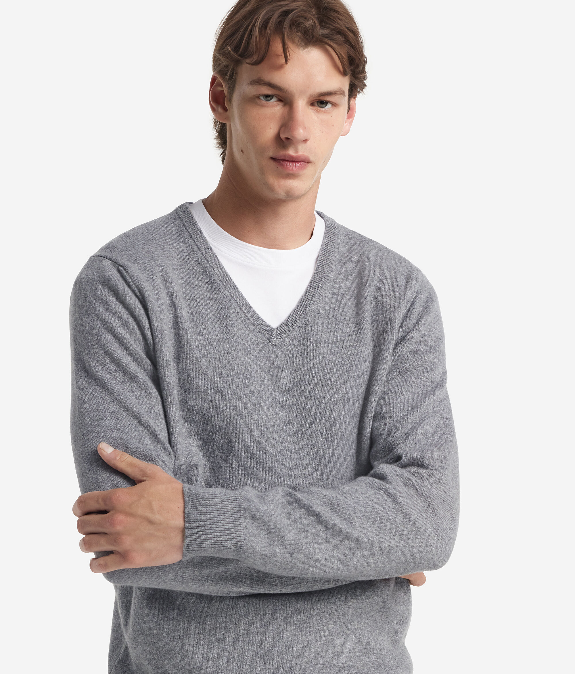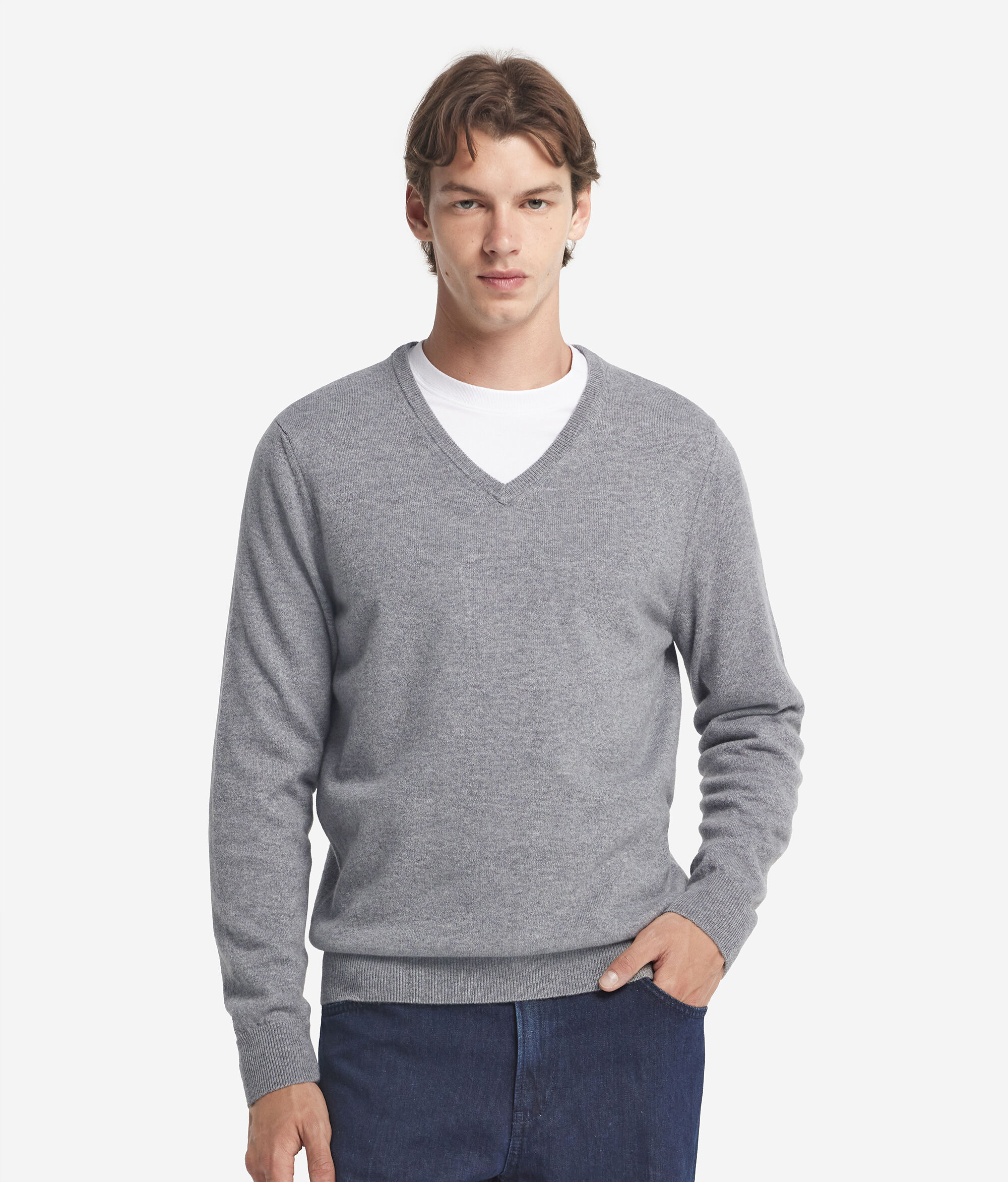 Jersey con cuello de pico confeccionado en preciado cashmere ultrasoft y pensado para ofrecer delicadeza y estilo. Su diseño se distingue por el sofisticado cuello ribeteado y el corte estándar, que conforman una prenda versátil e ideal para vestir con elegancia en el día a día.