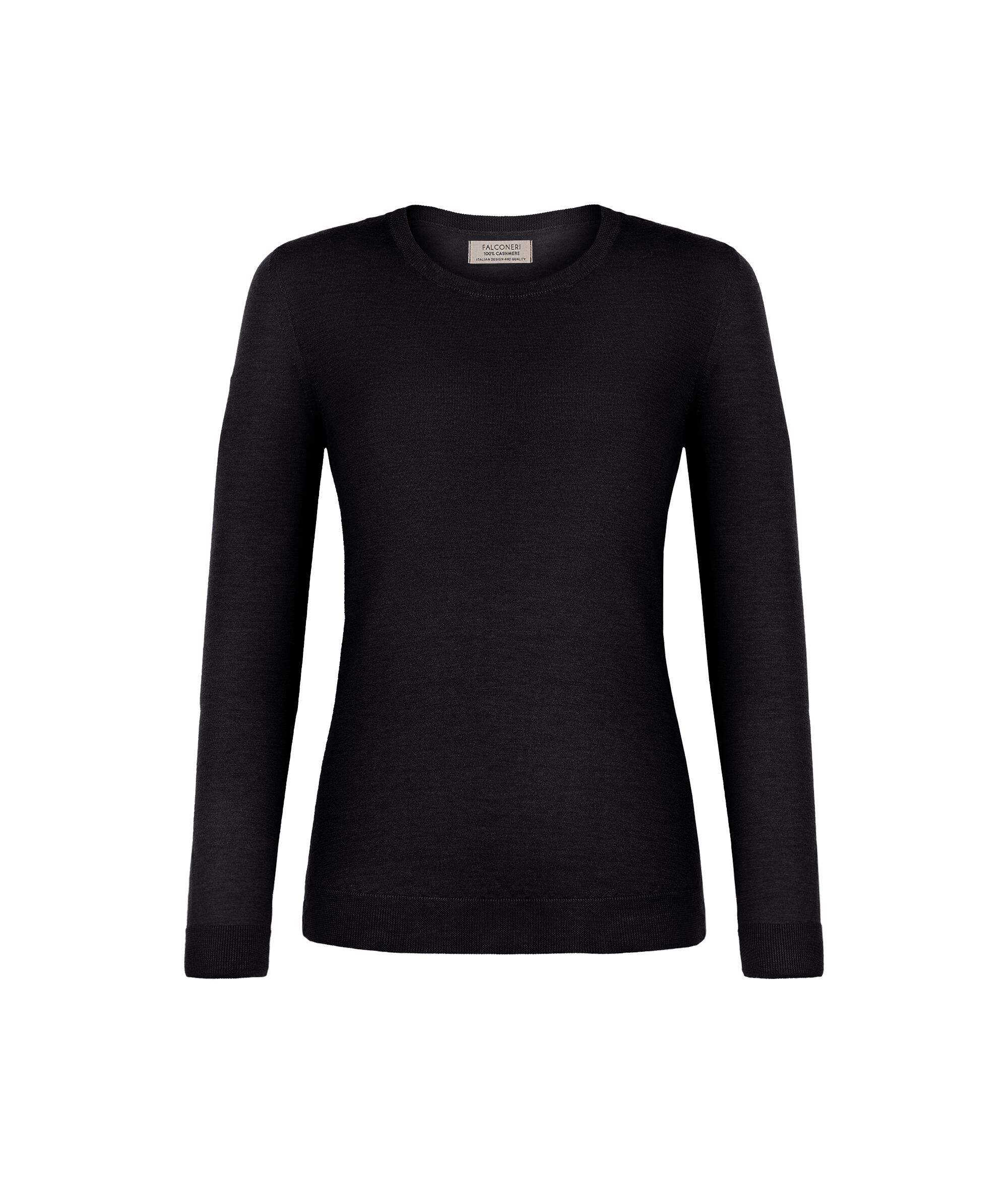 Este jersey de cuello redondo, básico y clásico, está confeccionado en cashmere ultrafine. Su diseño destaca gracias a un bajo ligeramente redondeado. El corte estándar está pensado para adaptarse cómodamente a las formas, de manera que se consigue un look impecable.
