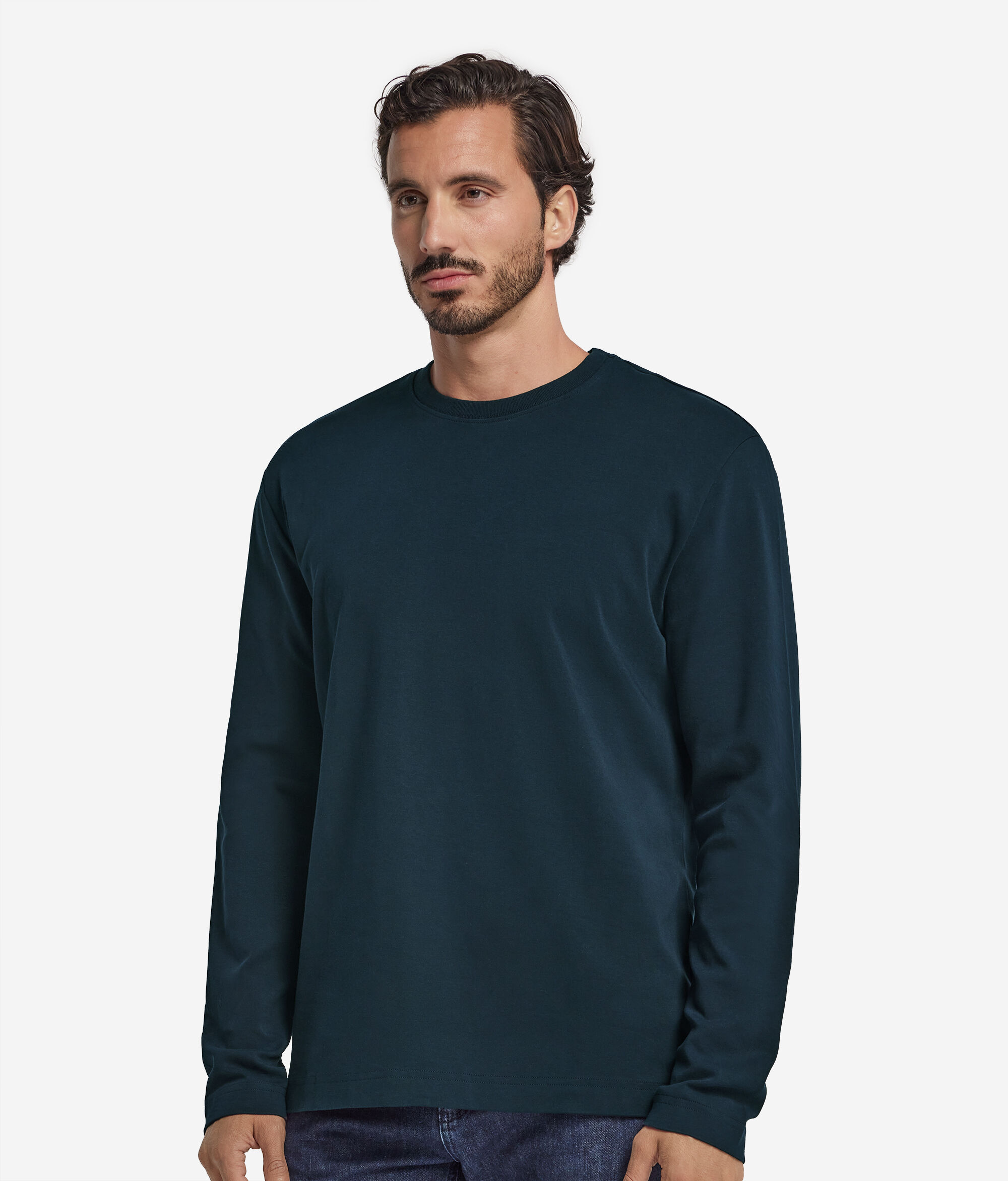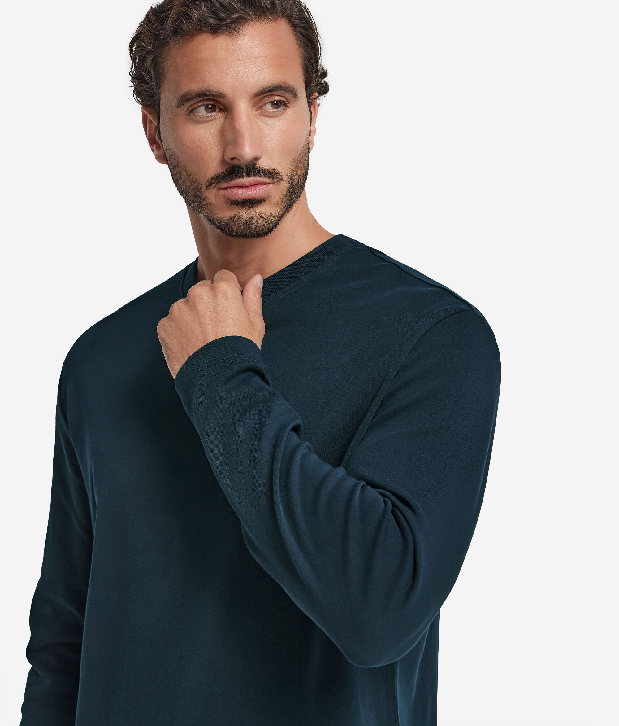 Casual y contemporáneo, este jersey con cuello redondo de algodón se distingue por su volumen estándar y su cómodo tejido, ideal para completar looks clásicos y modernos. Perfecto para llevarlo solo o debajo de una chaqueta, es una prenda sumamente versátil e infaltable en el armario masculino.