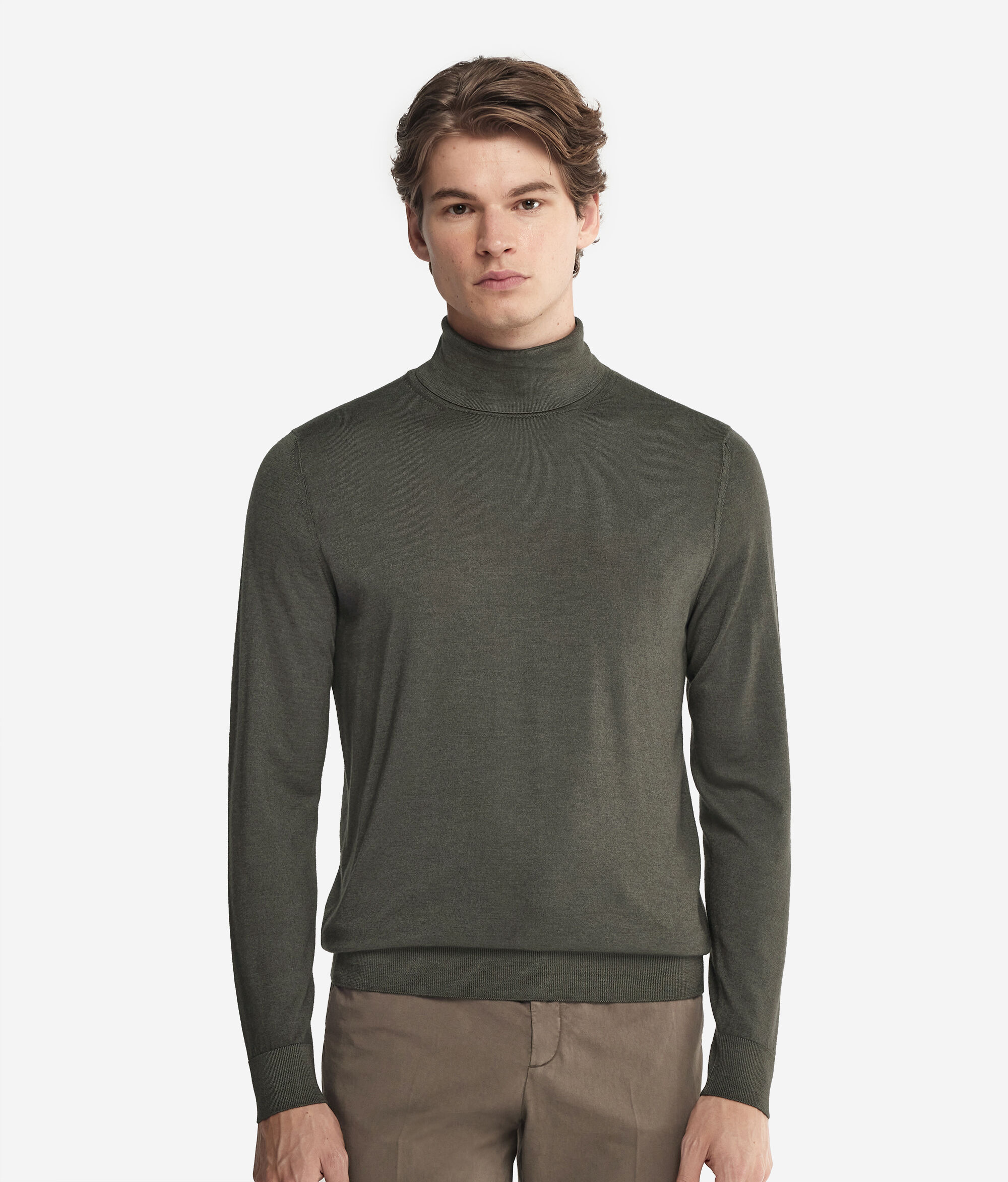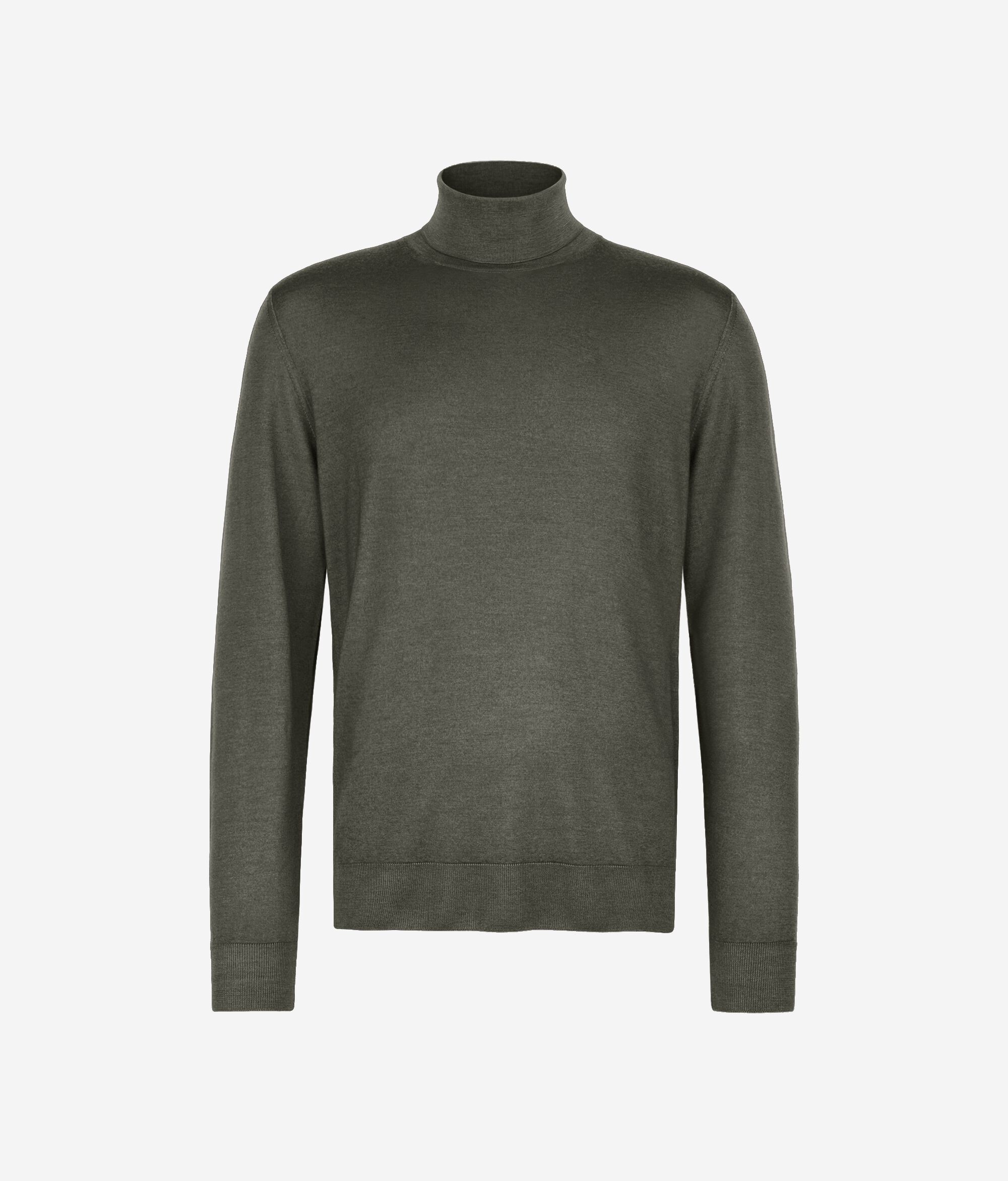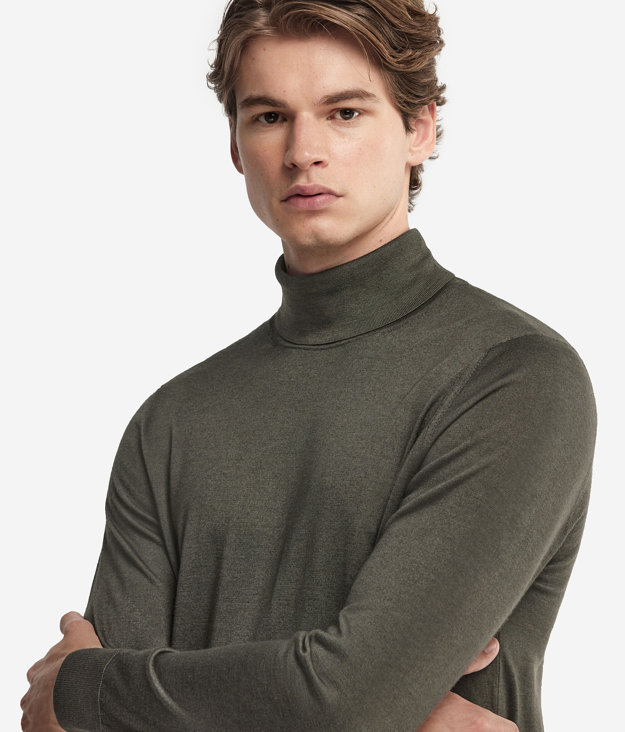 Jersey de cuello vuelto de cashmere ultrafine. Las fibras preciosas confeccionadas hábilmente le confieren a esta prenda un peso ligero pero con cuerpo, ideal para poder llevarla en ocasiones diversas.