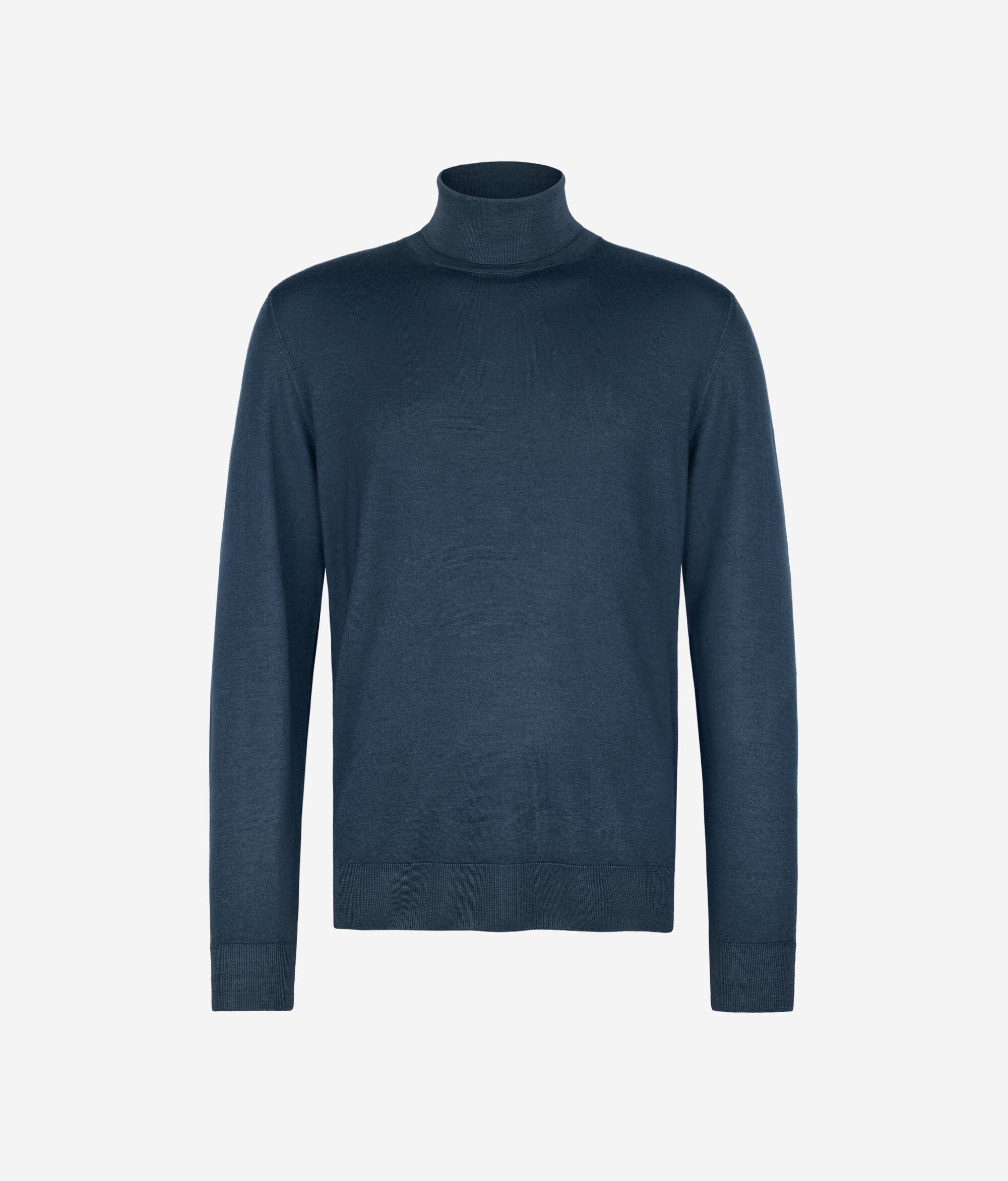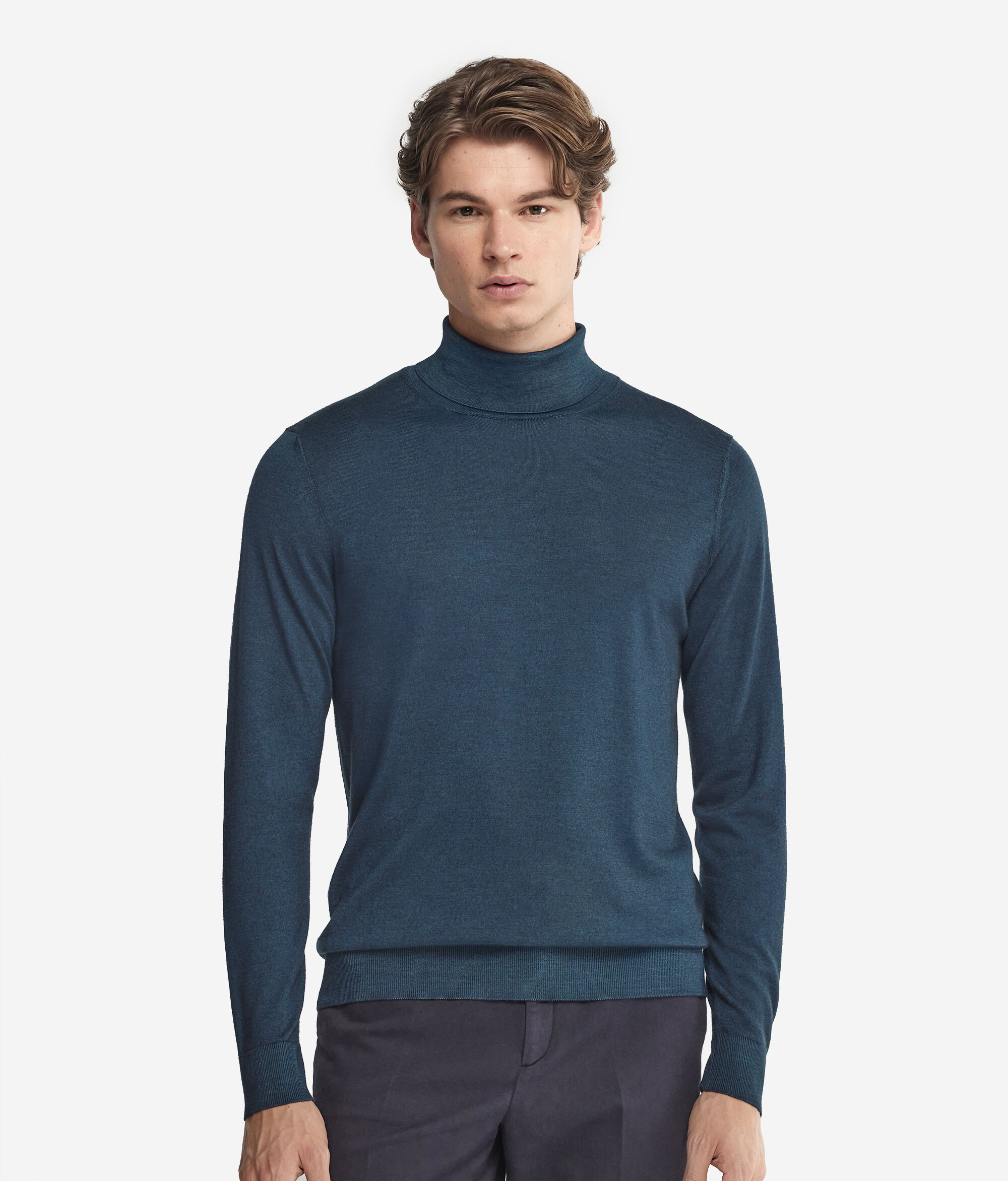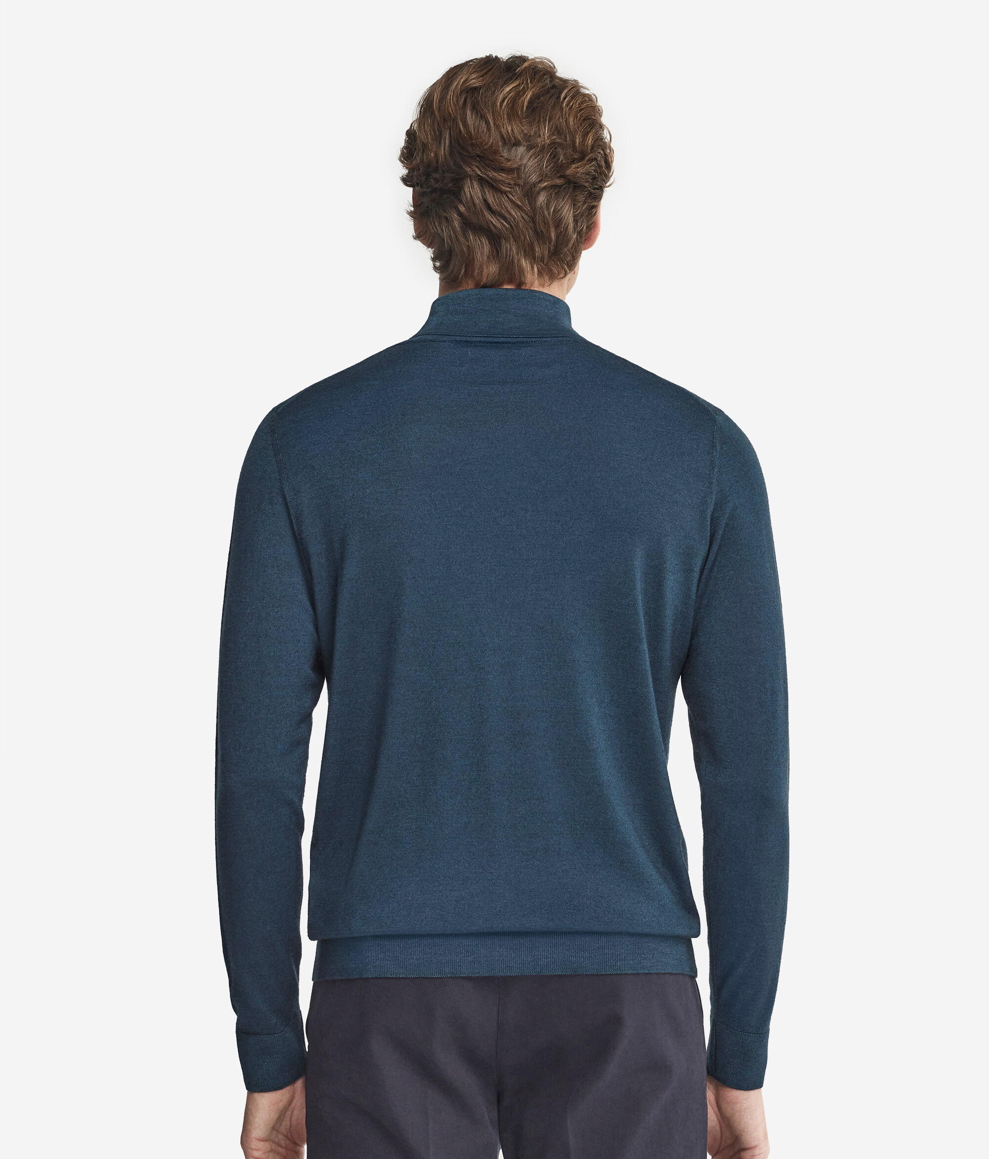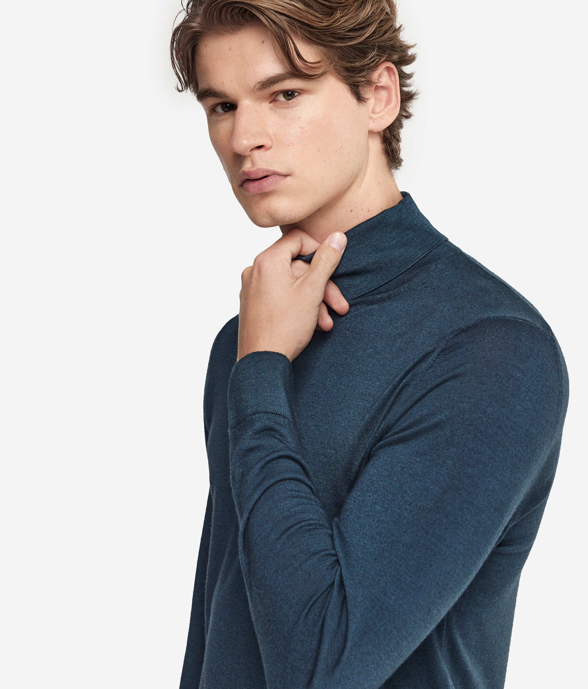 Jersey de cuello vuelto de cashmere ultrafine. Las fibras preciosas confeccionadas hábilmente le confieren a esta prenda un peso ligero pero con cuerpo, ideal para poder llevarla en ocasiones diversas.