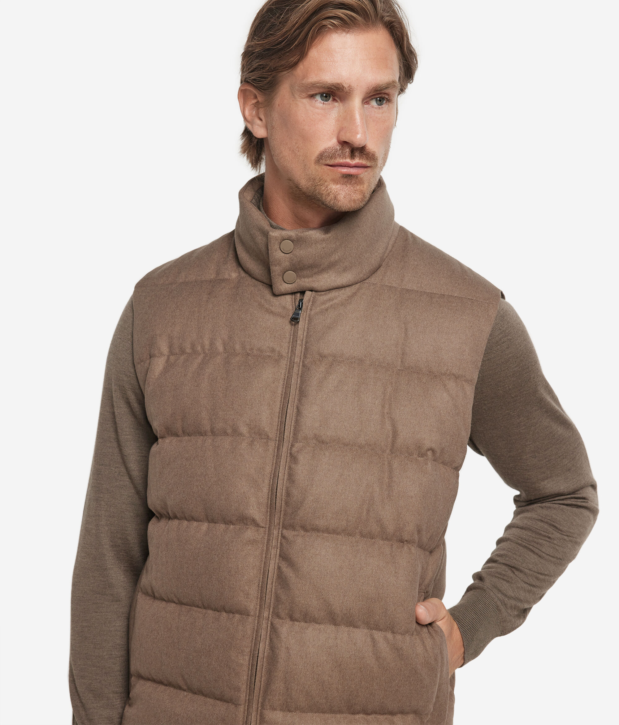 La sofisticación y la funcionalidad se unen en este plumífero sin mangas confeccionado en una fina mezcla de seda y cashmere. El cuello alto está adornado con un cierre de botones y un interior de punto de Cashmere Ultrasoft acanalado. Cuenta con cremallera frontal, bolsillos de ojal y corte estándar, y supone una prenda ideal para entretiempo.