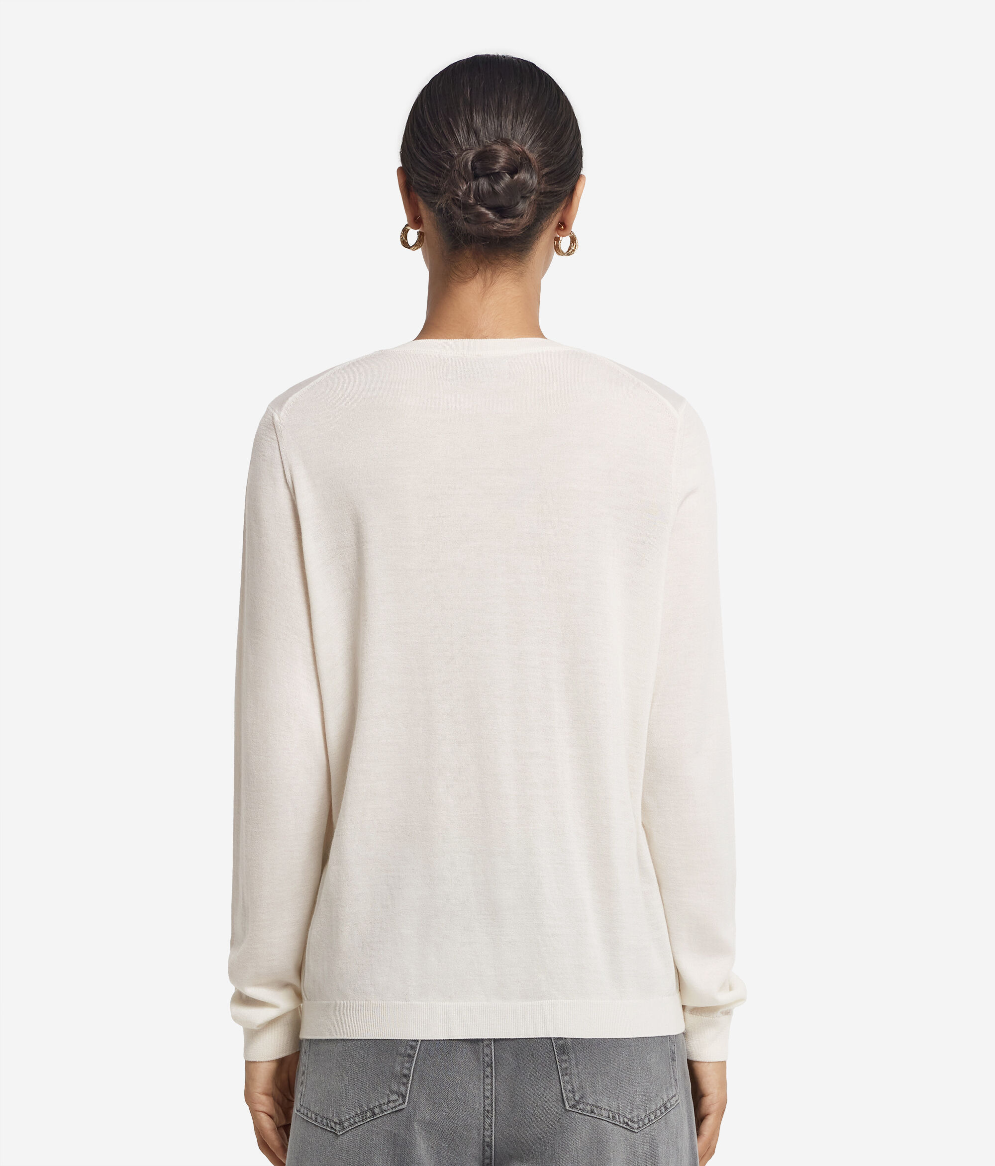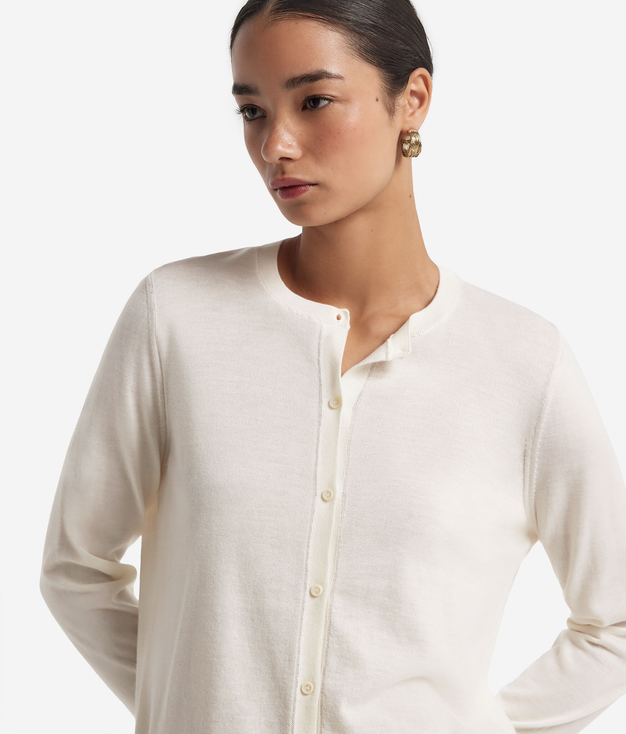Una elegante fusión de clásico y contemporáneo impregna toda la colección Falconeri: el amor por los materiales preciados y el cuidado del detalle se expresan en una selección de tejidos emblemáticos, como el cashmere Ultrafine puro, y en el equilibrio de las formas y los volúmenes. Esta rebeca con cuello redondo con botones es una prenda clave en el armario de cualquier mujer.