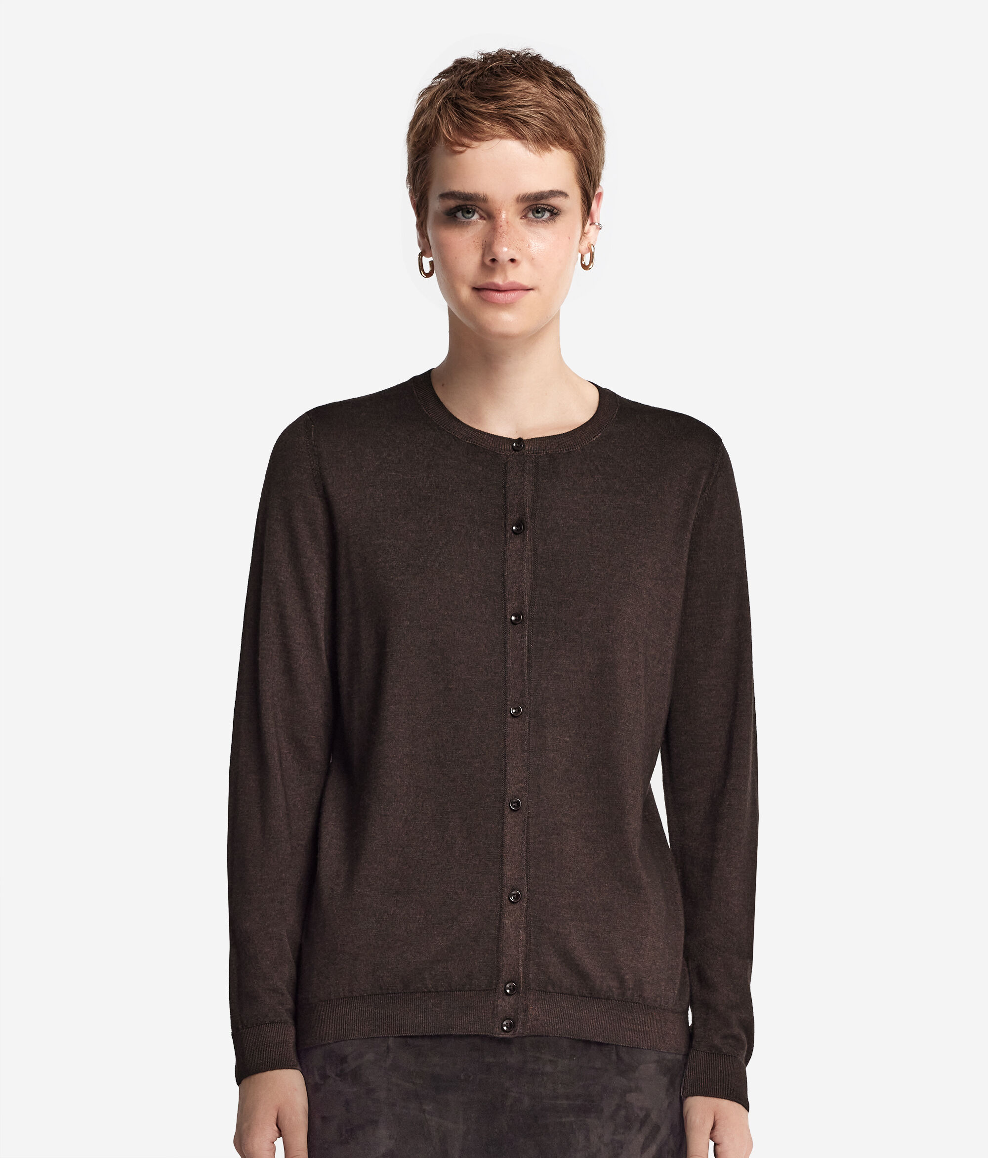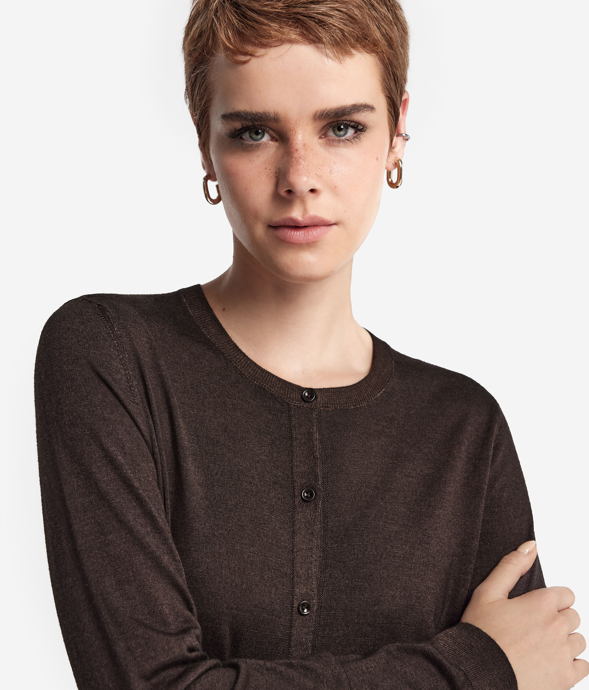 Una elegante fusión de clásico y contemporáneo impregna toda la colección Falconeri: el amor por los materiales preciados y el cuidado del detalle se expresan en una selección de tejidos emblemáticos, como el cashmere Ultrafine puro, y en el equilibrio de las formas y los volúmenes. Esta rebeca con cuello redondo con botones es una prenda clave en el armario de cualquier mujer.