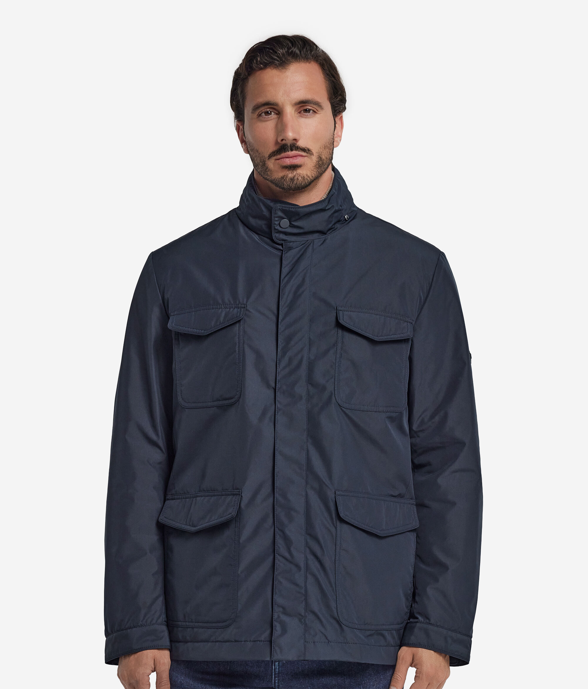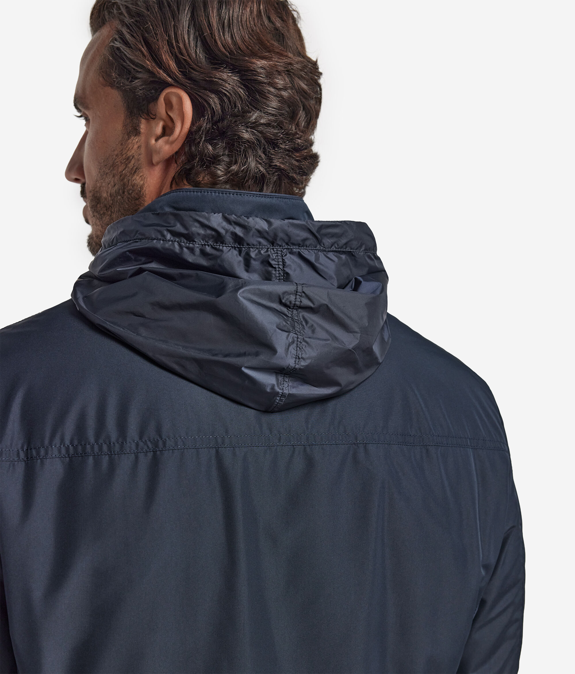 Esta nueva sahariana técnica se distingue por su forro en suave tejido de cashmere ultrafine. Un prenda rica en detalles, como la capucha plegable, la cremallera central con doble carro y los bolsillos de parche con tapeta. Presenta una trabilla elástica en la espalda que permite ajustar la prenda ciñéndola en la cintura.