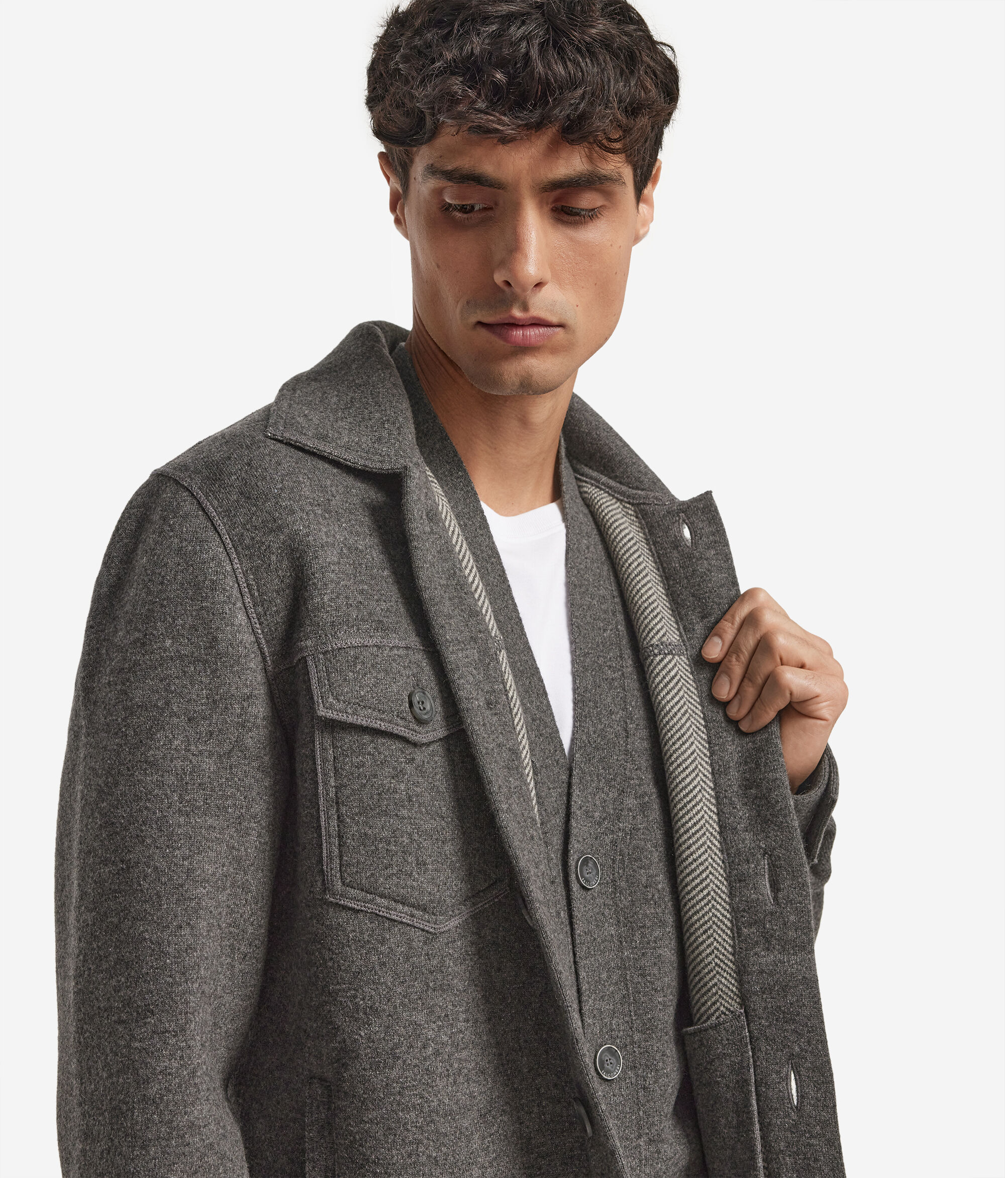 Gilet raffiné en cachemire ultra-doux, caractérisé par une finition tubulaire sophistiquée avec un intérieur à chevrons bicolore, qui confère un style particulier au vêtement. Il présente un col classique et une fermeture à boutonnage simple, pour une élégance intemporelle. Ce modèle présente un empiècement avant et arrière, des poches poitrine plaquées et des poches latérales passepoilées, ainsi que des surpiqûres délicates sur tout le vêtement.