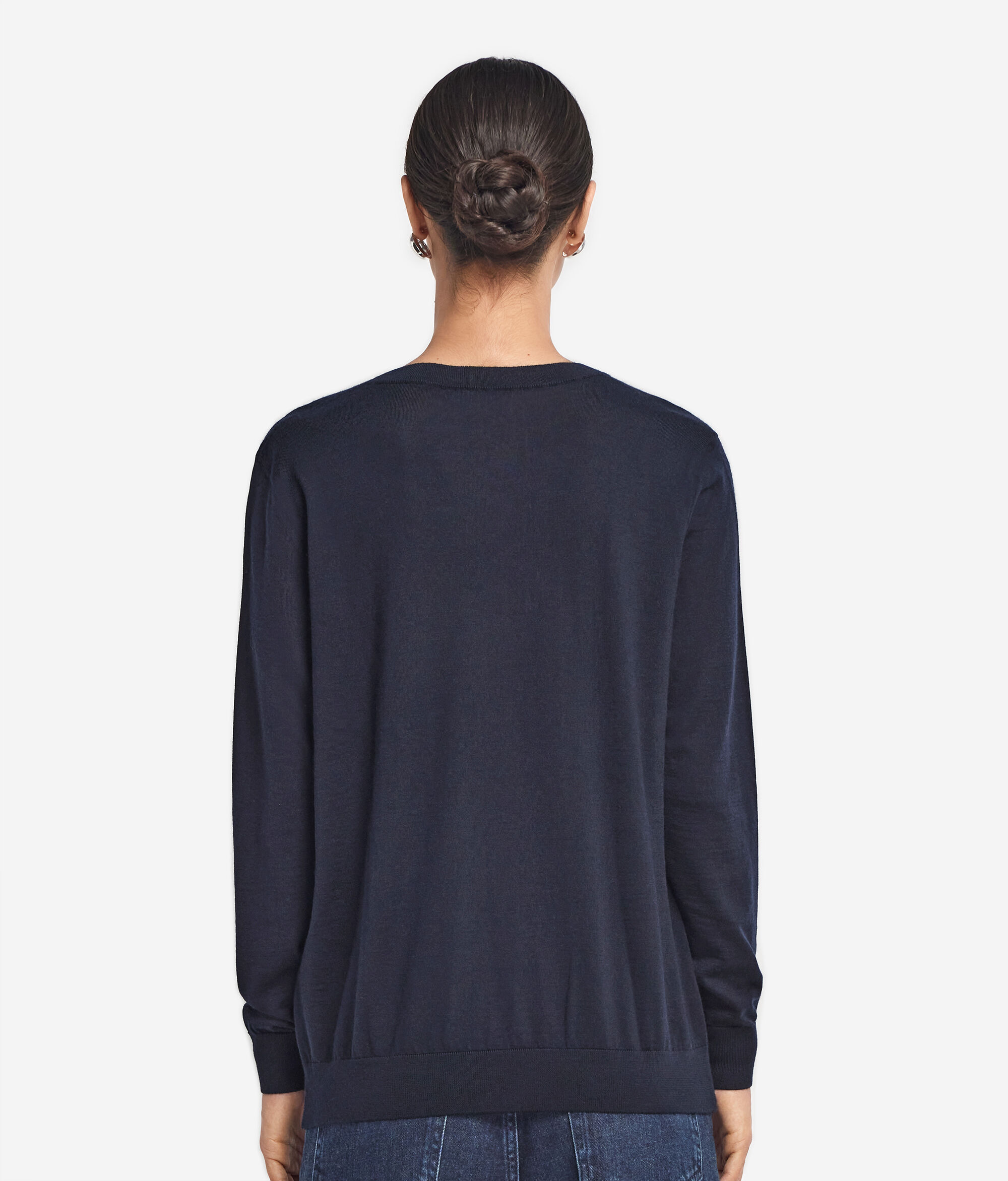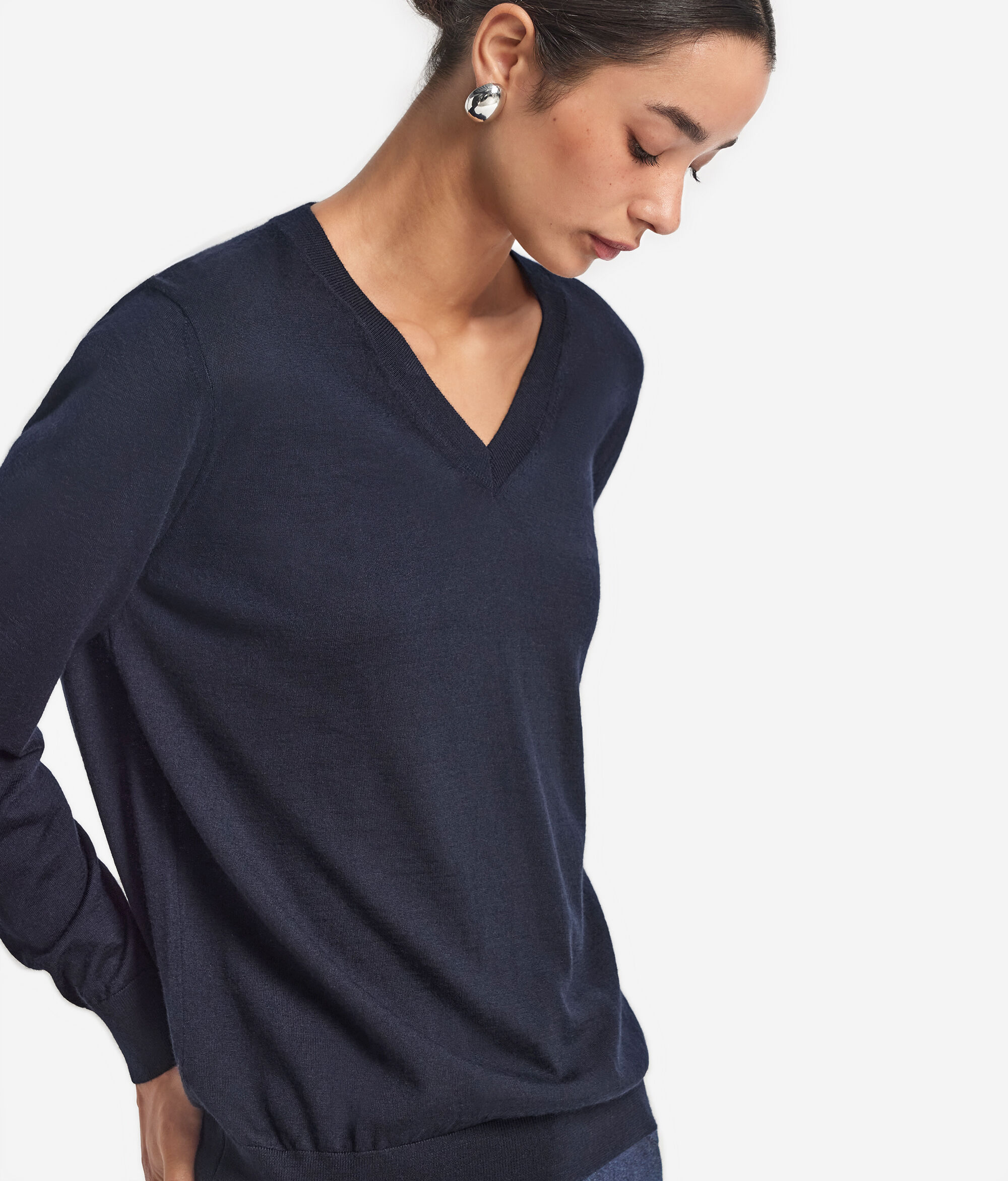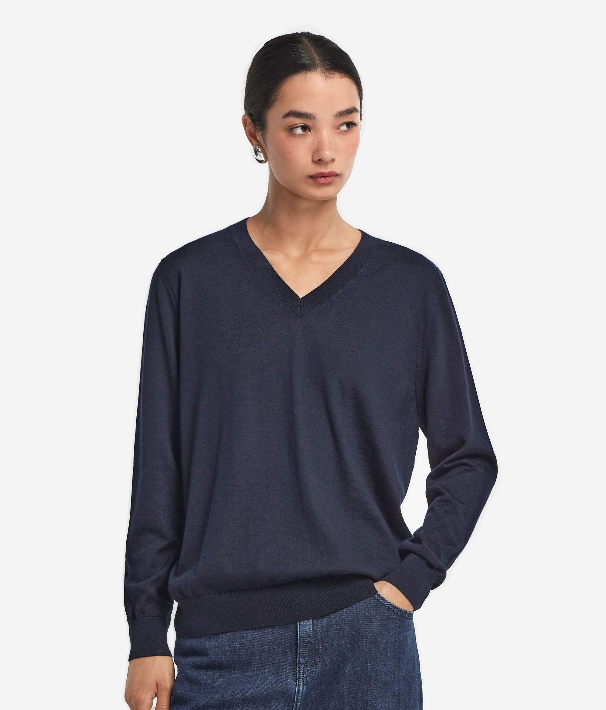 Apportez une touche de luxe et de confort à votre garde-robe, avec ce pull à col V en cachemire ultra-fin. Une finition côtelée sur l'encolure, les poignets et le bord subliment ce modèle en lui apportant une touche d'élégance minimaliste. Ses lignes fluides allient harmonieusement classicisme et style moderne, pour apporter une touche de luxe discrète et intemporelle à toutes les garde-robes.