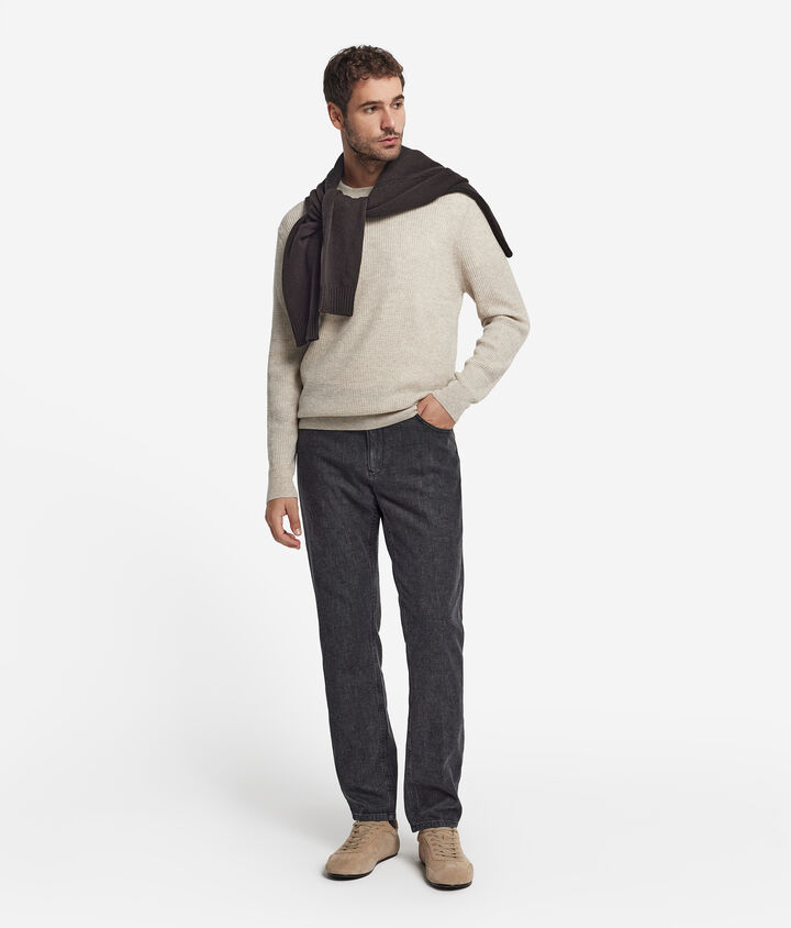 New inRibbed Ultrasoft Cashmere pullover with zip€499.00Select your colorStoneDark Grey MelangeNavy BlueSelected color: Stone
