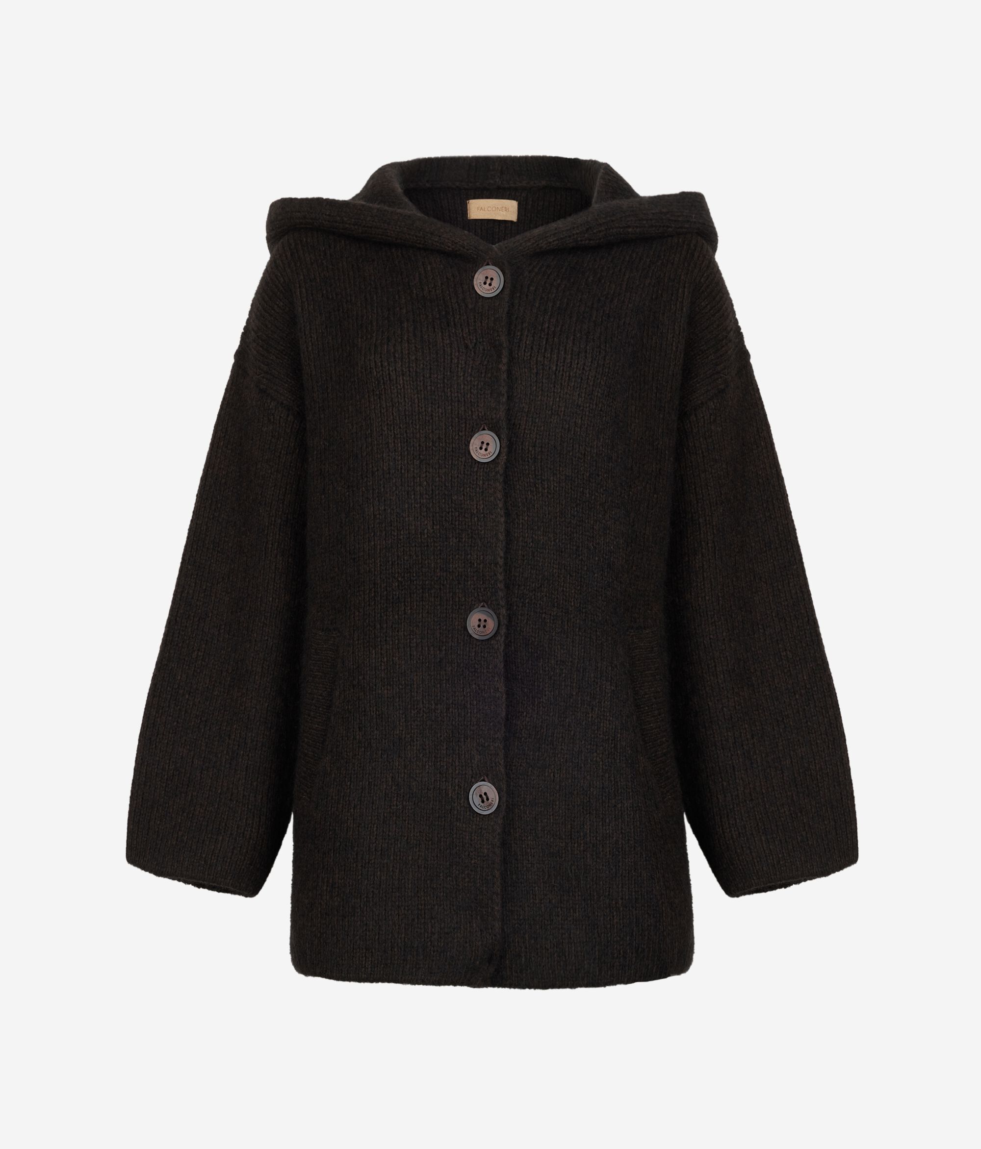 A style inspired by a timeless feel defines the design of this alpaca wool hooded coat. The shawl collar, dropped shoulders and loose fit create a fluid and cosy silhouette. A single-breasted button fastening, front welt pockets and hip length complete a relaxed yet elegantly feminine design.