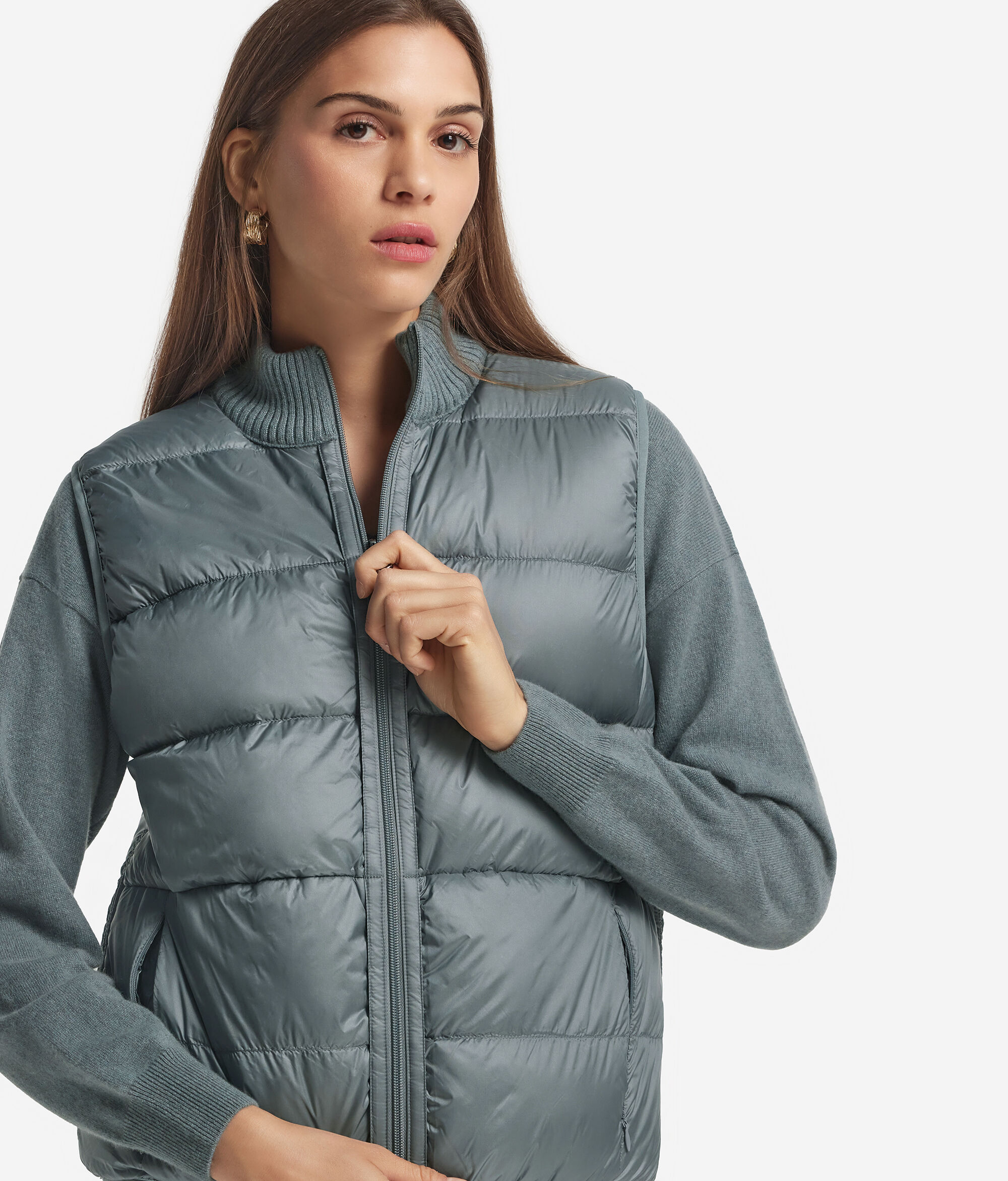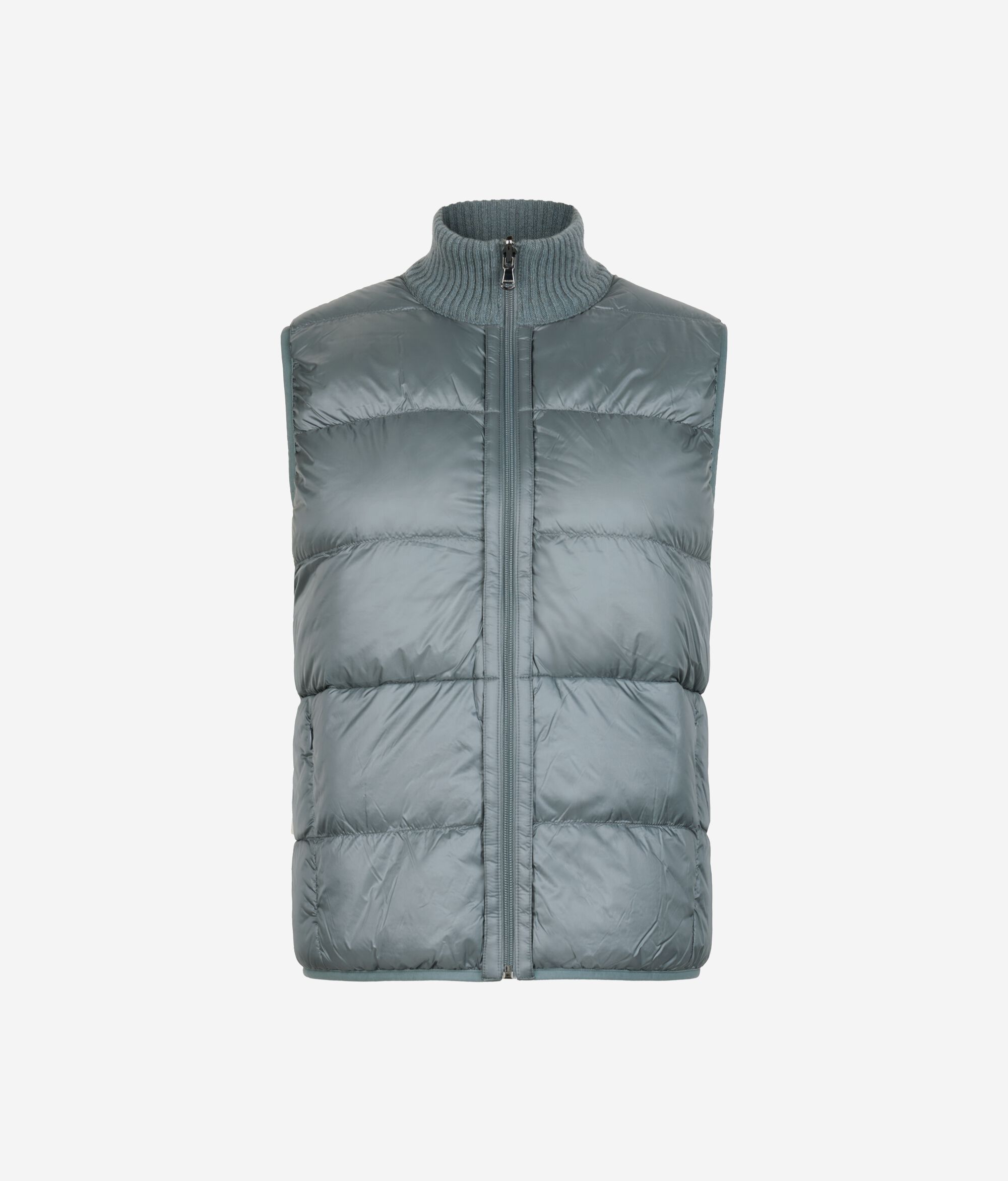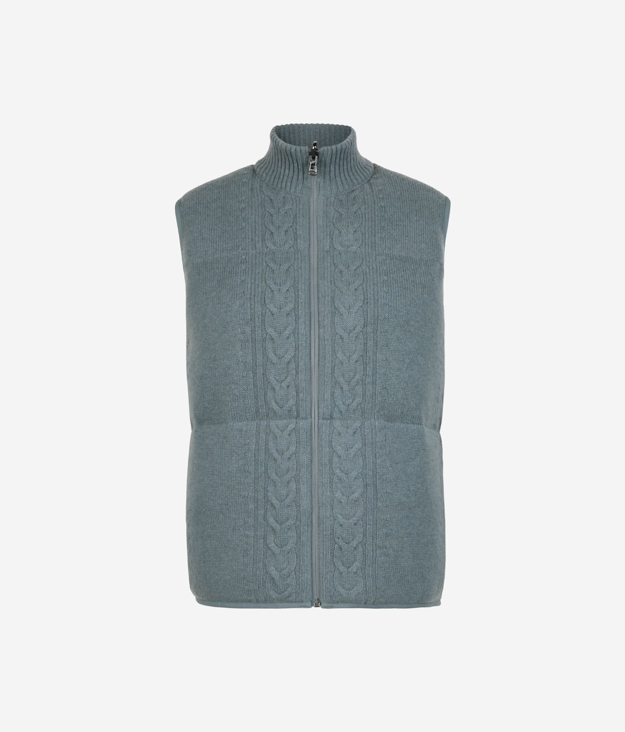 Perfect for pairing with sweatshirts or knitwear, this gilet is designed for those who love classic sophistication with a casual touch. The reversible design features two moods: one side in luxurious cashmere with refined cable-knit inserts, and the other in technical fabric for a more contemporary look. The metal zip adds a dash of character, while the high Ultrasoft Cashmere collar envelops the neck with softness and warmth, bringing style to every occasion.