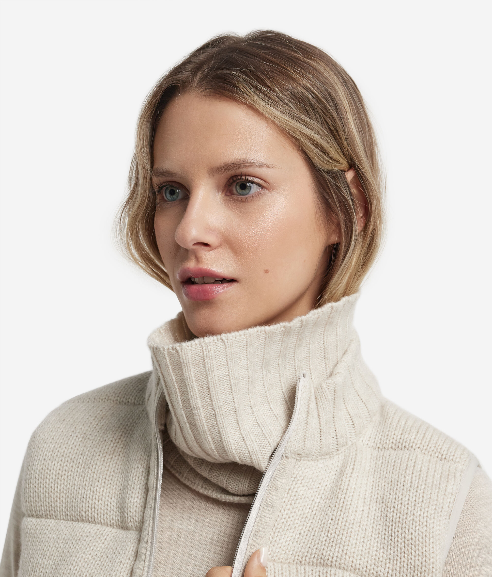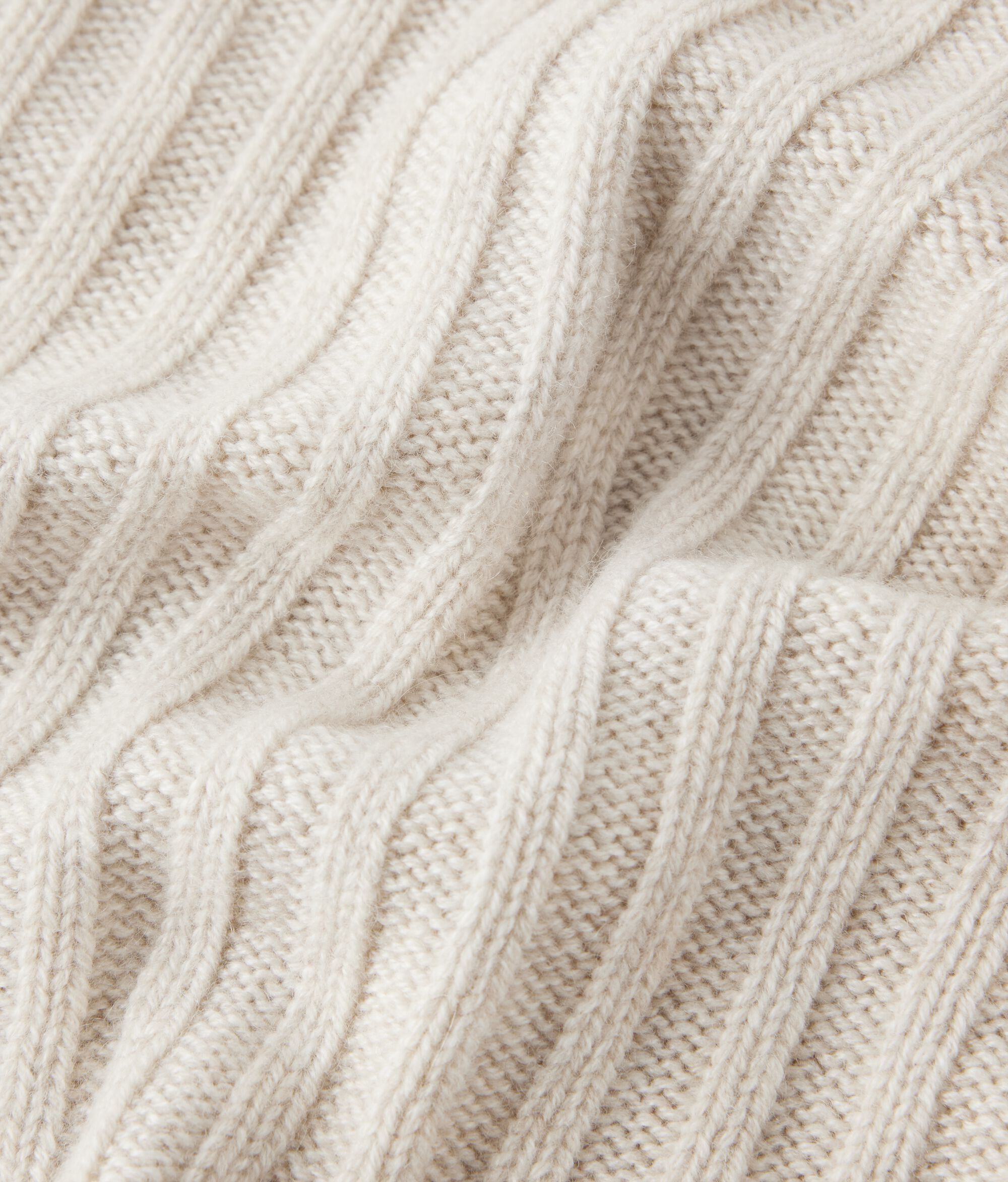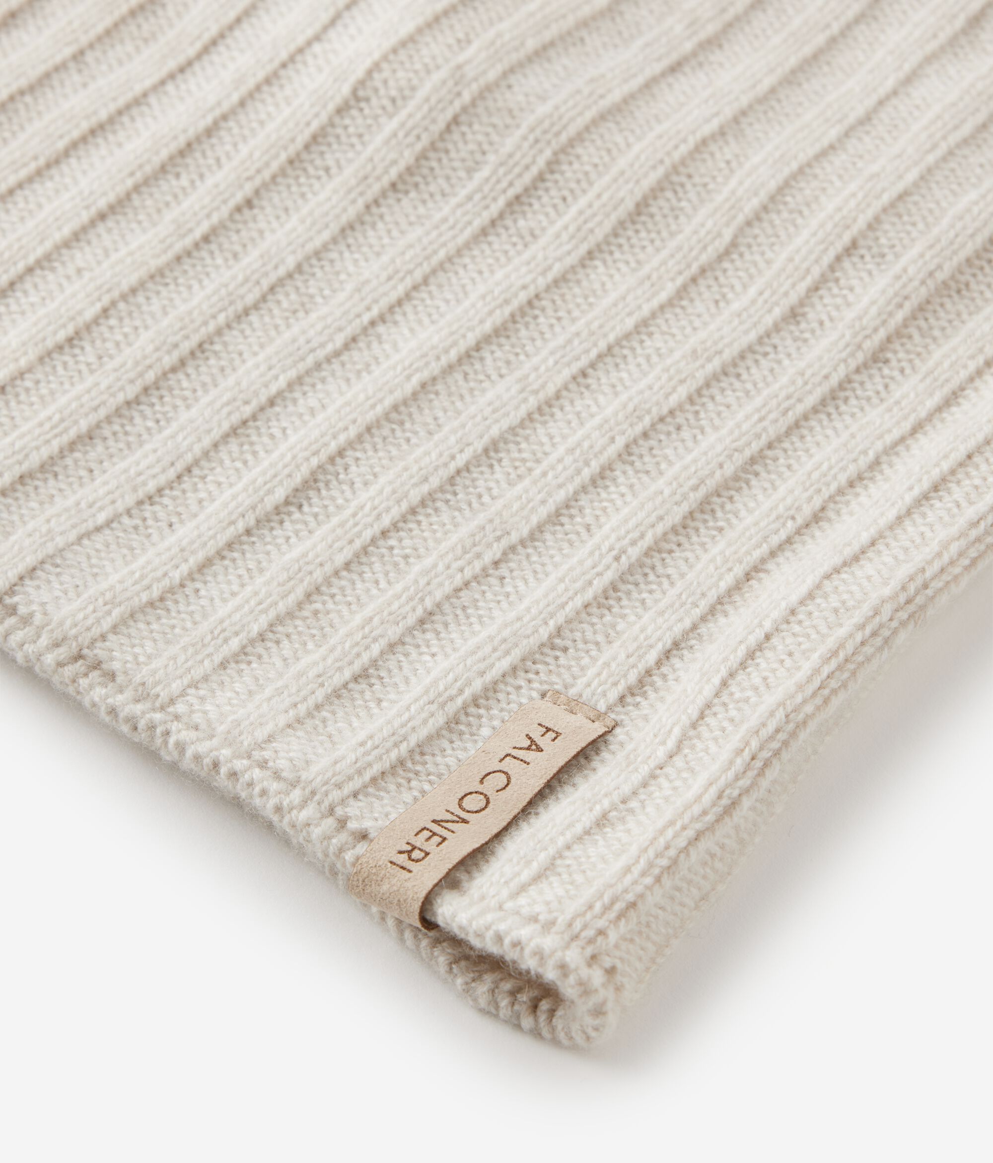 Enveloping and sophisticated, this snood in fine Ultrasoft Cashmere represents the perfect balance between comfort and timeless style. The wide rib knit gives the garment a textured, contemporary structure, enhancing the natural softness and ultra-light warmth of the fibre.