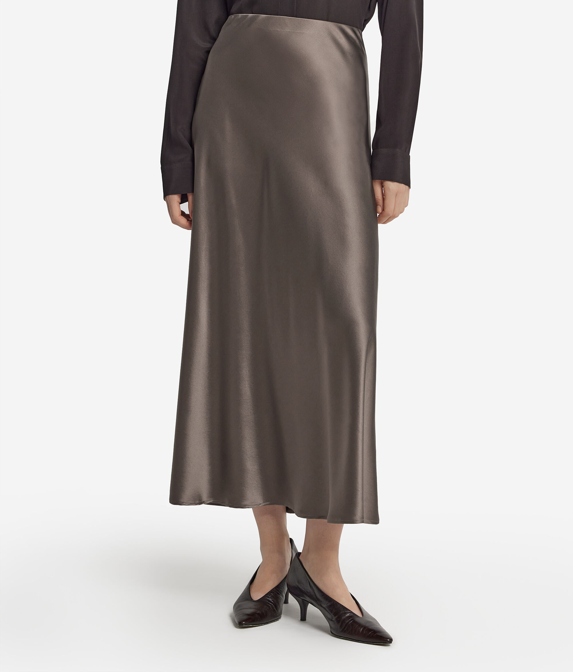 Discover the elegance and refinement of this skirt created entirely in silk satin. Distinguishing its design is a stretch waistband that offers comfort and adaptability. The calf length gives it a touch of class, making it ideal for both day wear and evening wear. The satin fabric adds a luxurious and light finish to guarantee a sophisticated, timeless look.