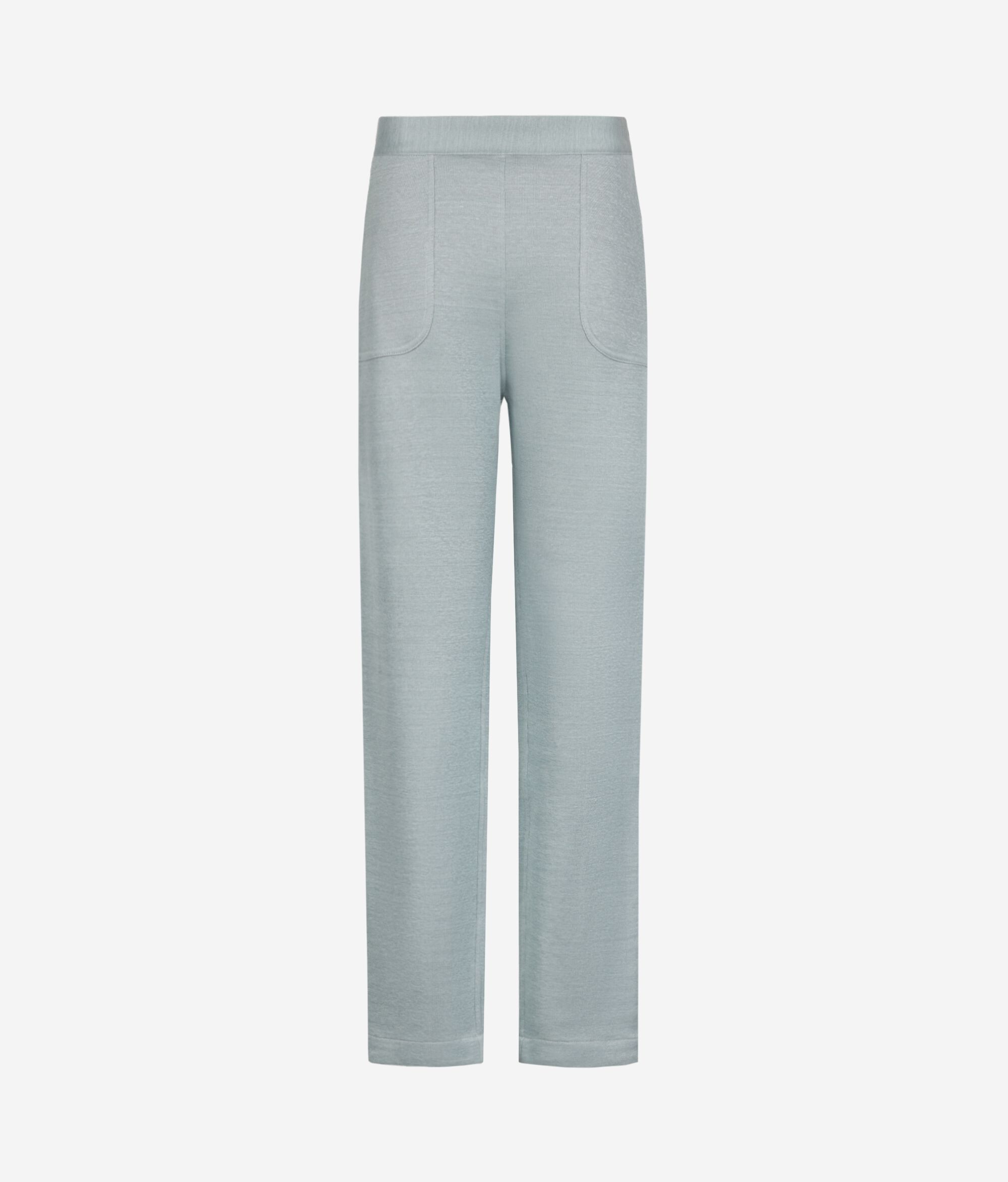 Two-tone, reversible trousers, designed for versatile, contemporary elegance. The linen exterior and cotton interior offer two distinct looks, while the cigarette fit and elasticated waistband at the back help to enhance the silhouette. The slant patch pockets complete the design with character, transforming the garment into a modern and sophisticated must-have.