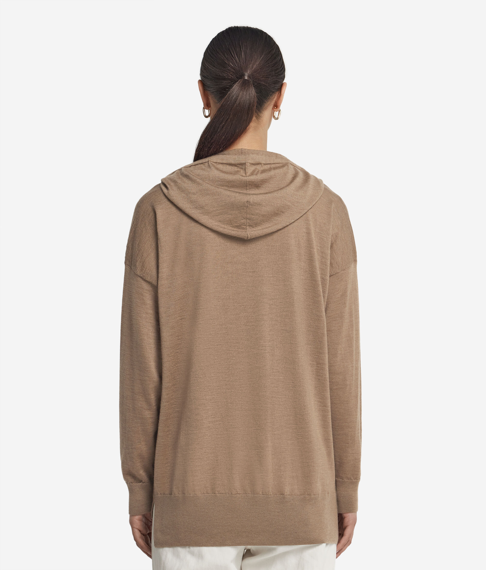 Luxurious yarns come together with the informal feel of this ultra-fine cashmere sweatshirt. Featuring a hood with drawstring and sleeves with dropped shoulders, it offers a relaxed and cosy look. The soft slits at the hem add functionality and movement, while the ribbing on the cuffs and hem give definition and texture. The asymmetric length and relaxed fit make this item perfect for a casual and contemporary elegance.