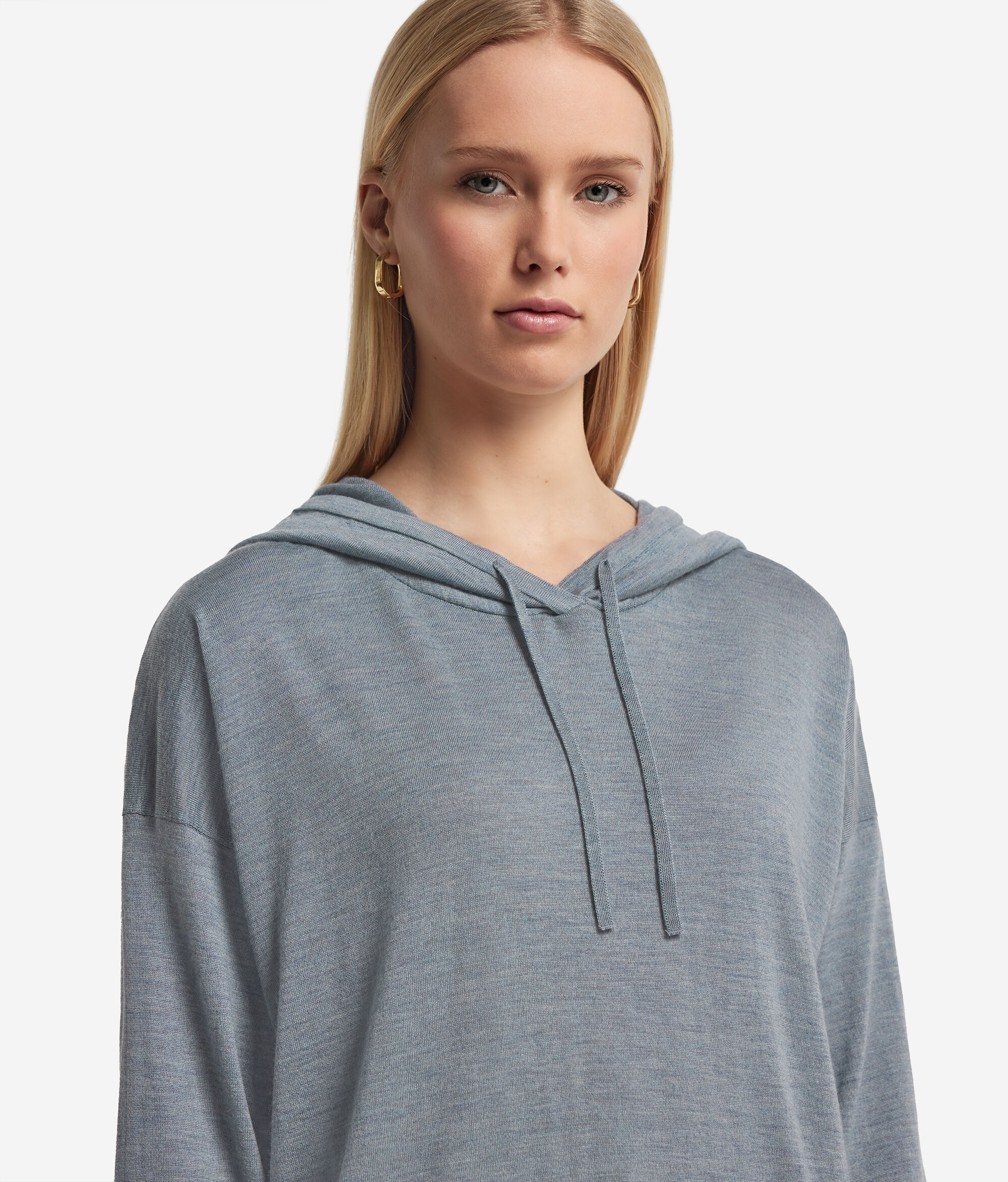 Luxurious yarns come together with the informal feel of this ultra-fine cashmere sweatshirt. Featuring a hood with drawstring and sleeves with dropped shoulders, it offers a relaxed and cosy look. The soft slits at the hem add functionality and movement, while the ribbing on the cuffs and hem give definition and texture. The asymmetric length and relaxed fit make this item perfect for a casual and contemporary elegance.