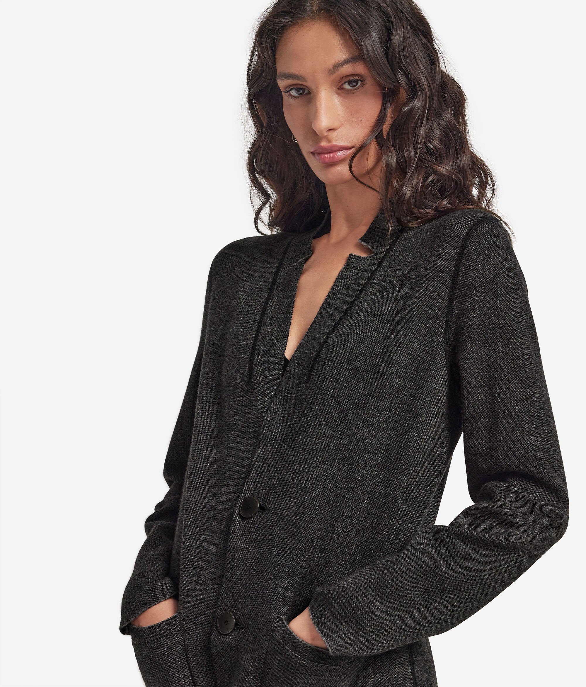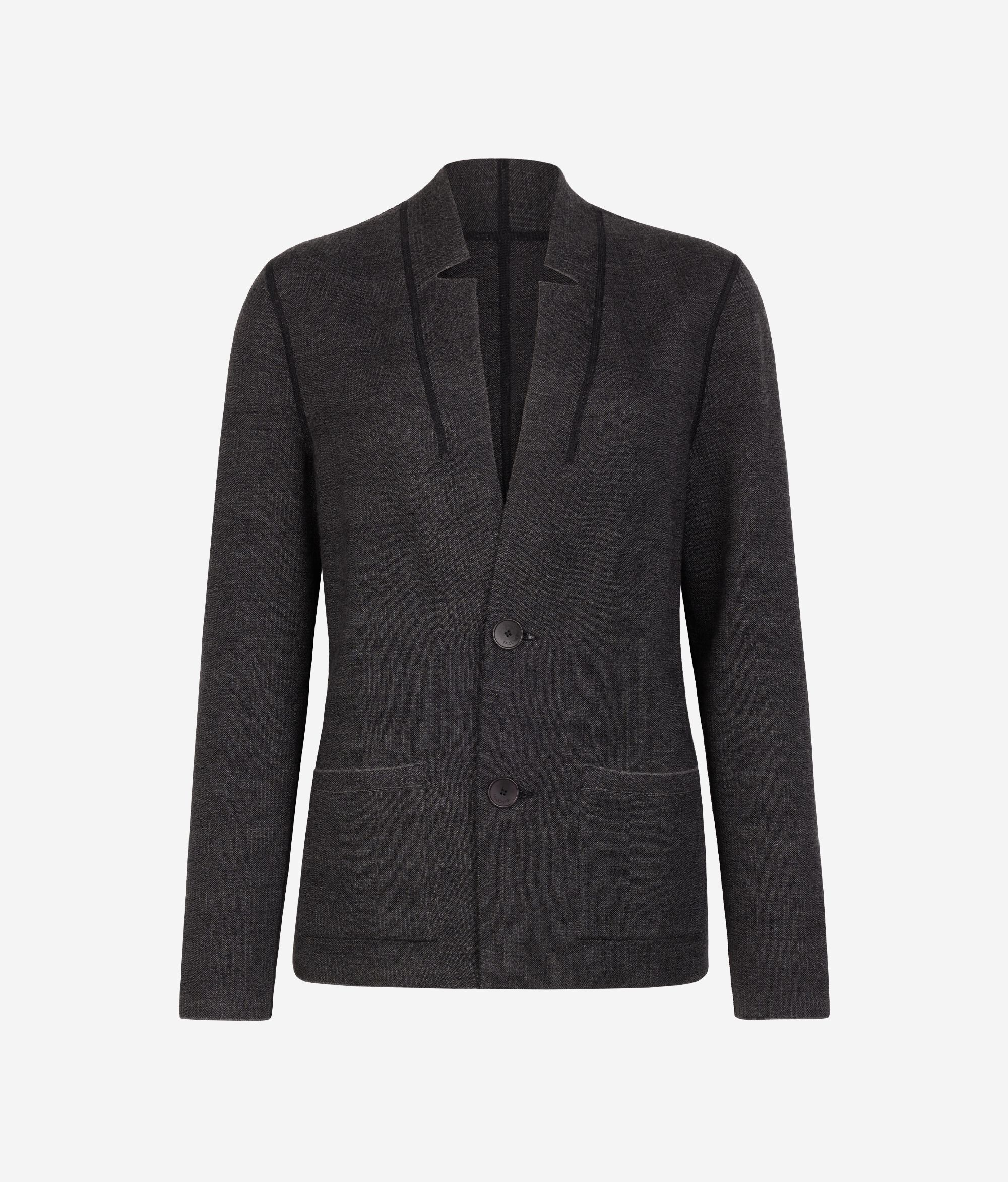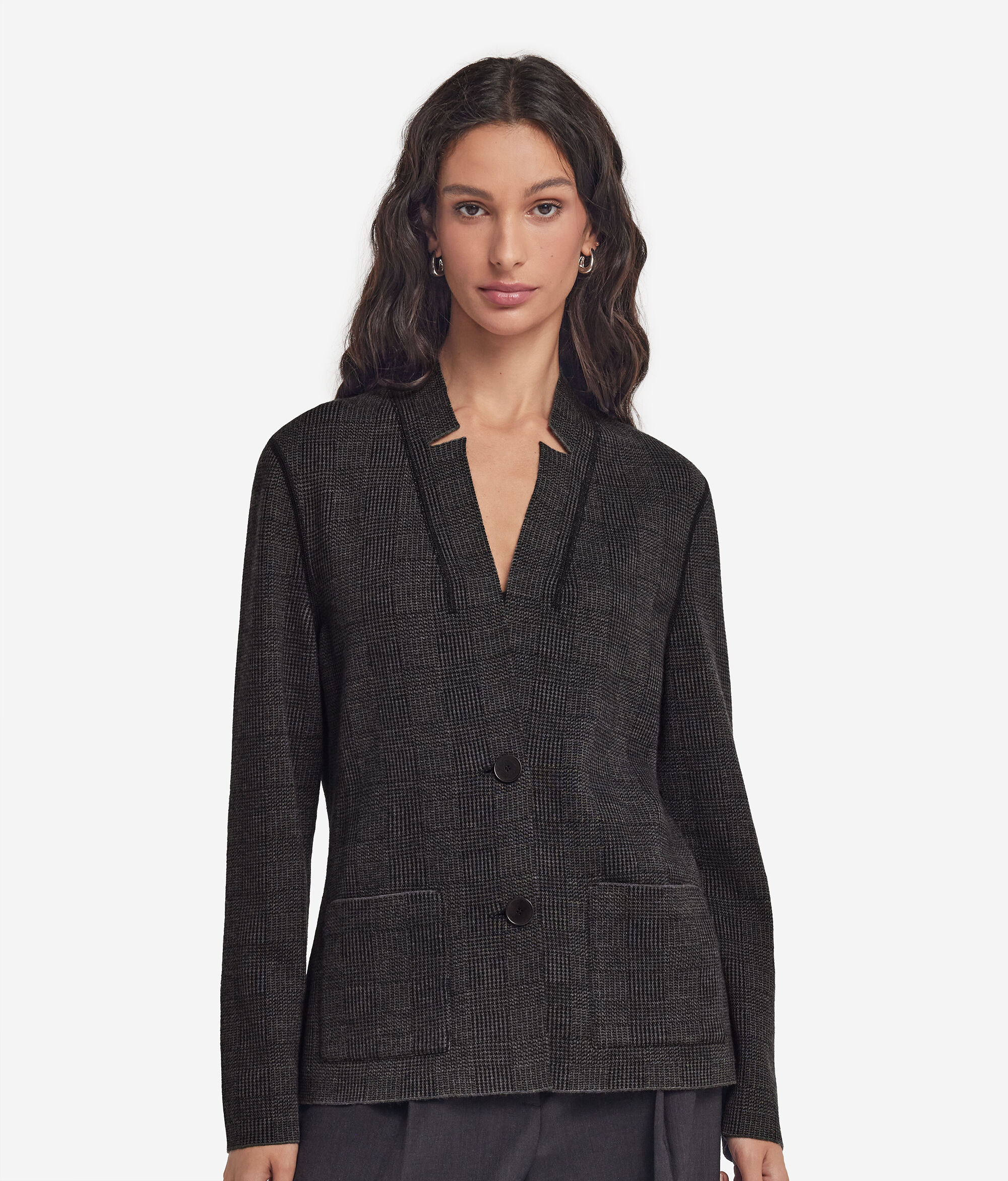 This reversible jacket, created in Ultrafine Cashmere and cotton, combines style and versatility with elegance. The lapels and the design that alternates solid colour on one side and Glen plaid on the other create a sophisticated and contemporary effect. The single-breasted button fastening enhances the slim fit, while the pockets on both sides and the hip length complete the piece with a perfect balance between functionality and style.