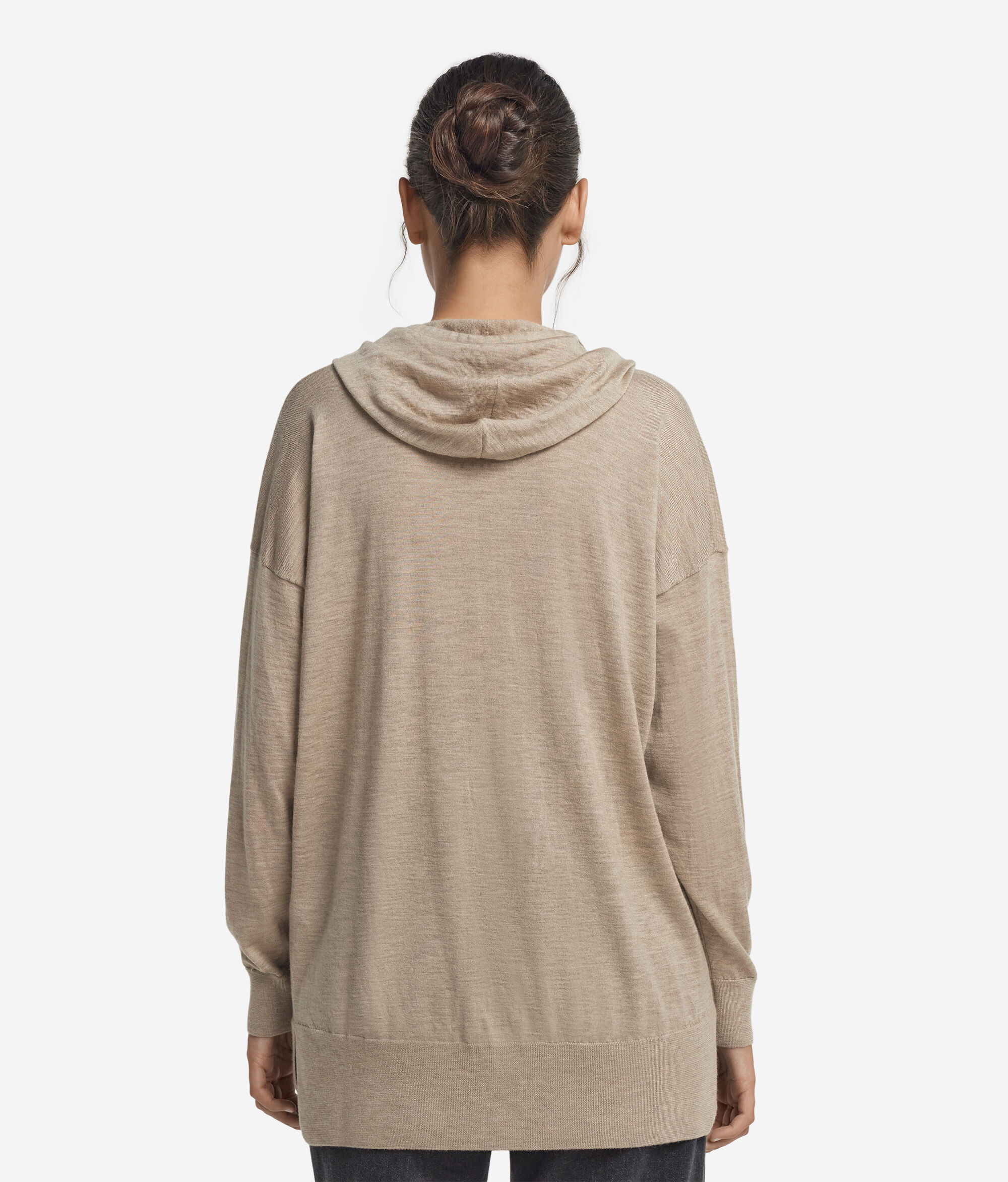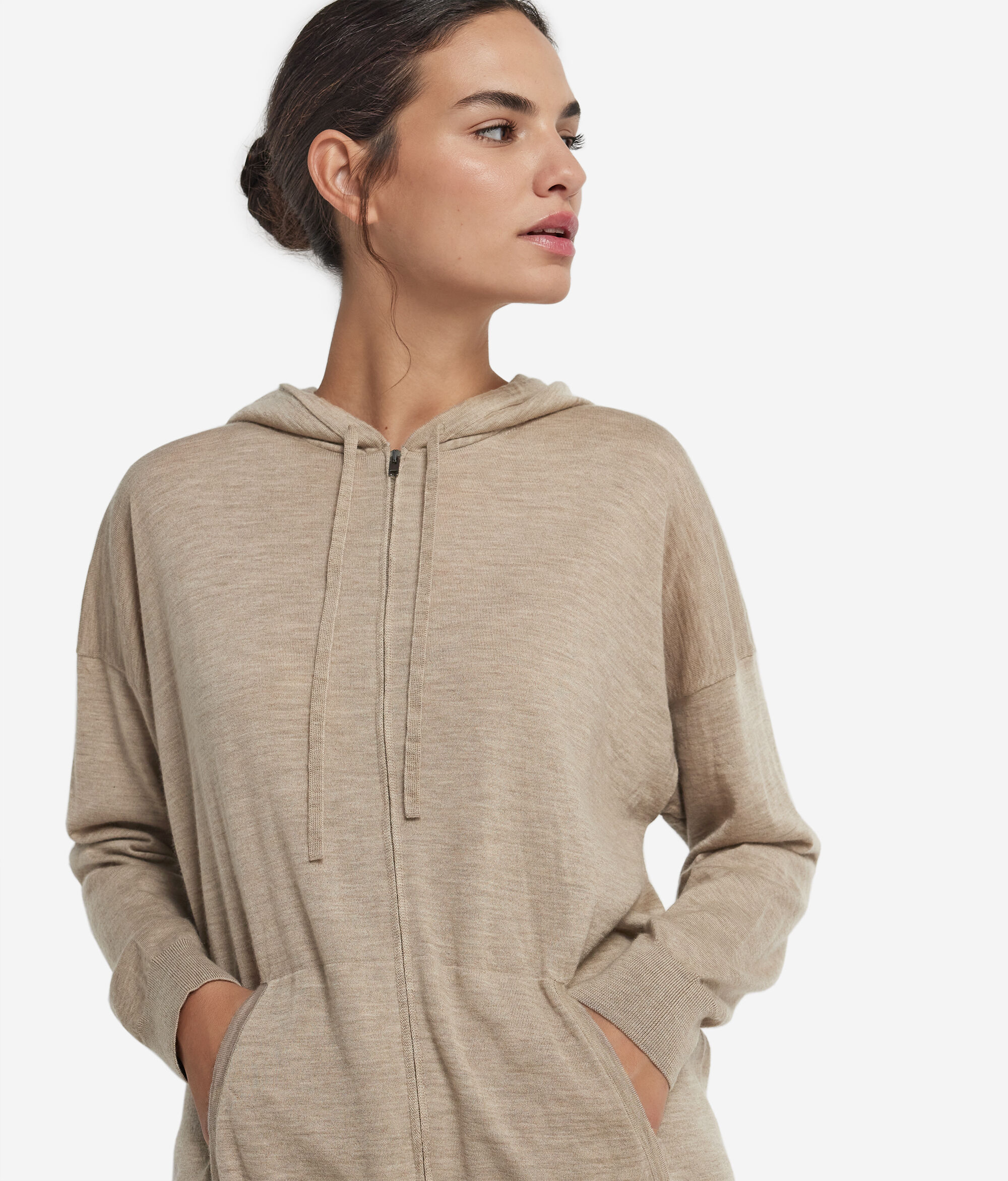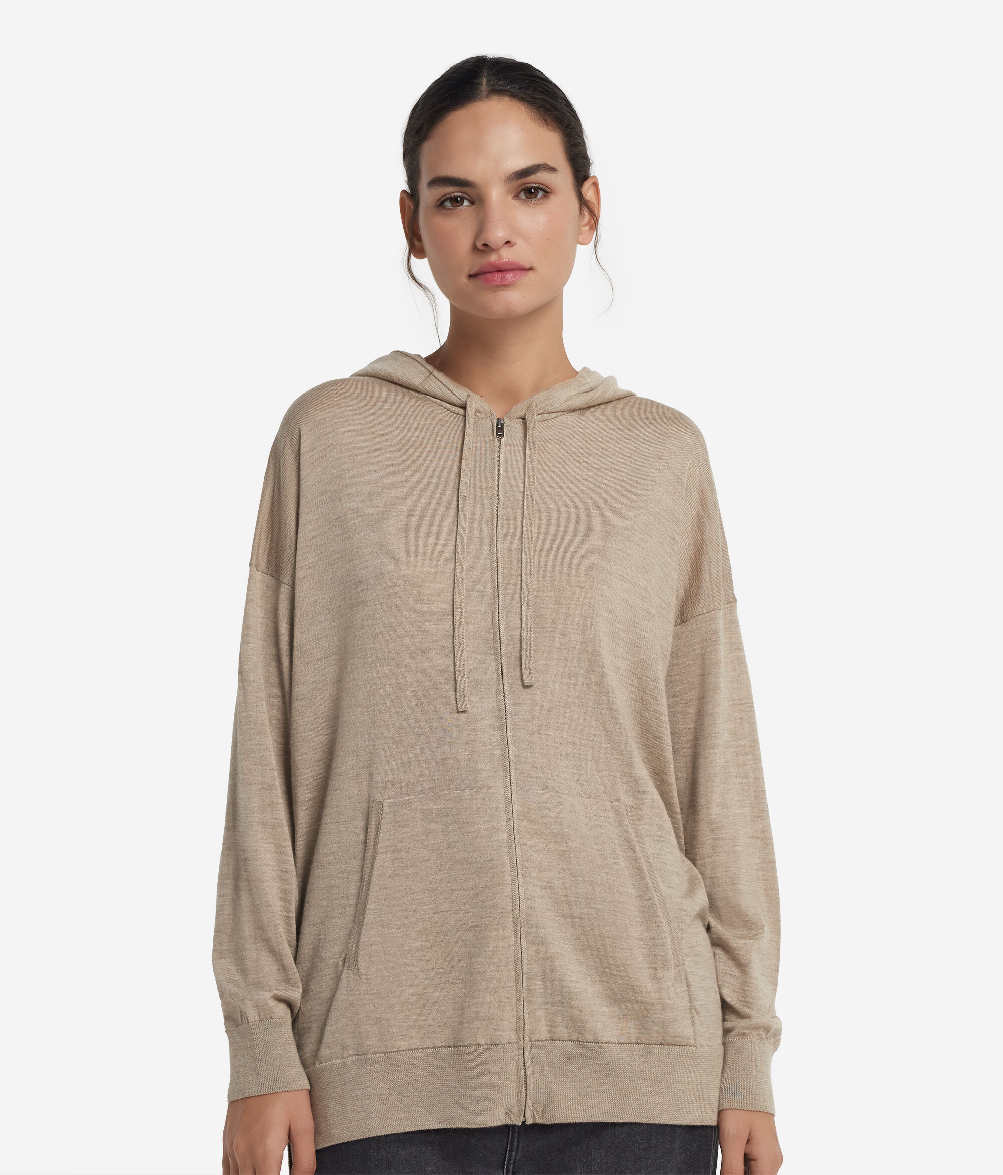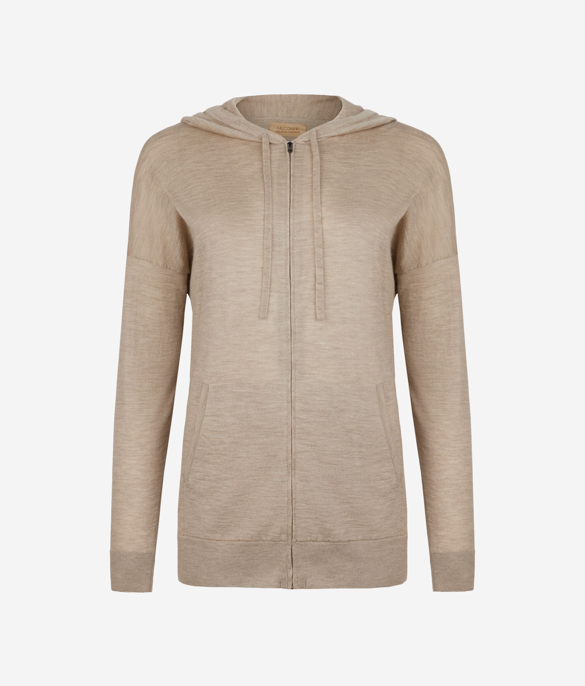 Ultrafine Cashmere sweatshirt with hood. The garment opens with a zip all the way to the bottom, and features open side pockets and slightly dropped shoulders. Relaxed fit.