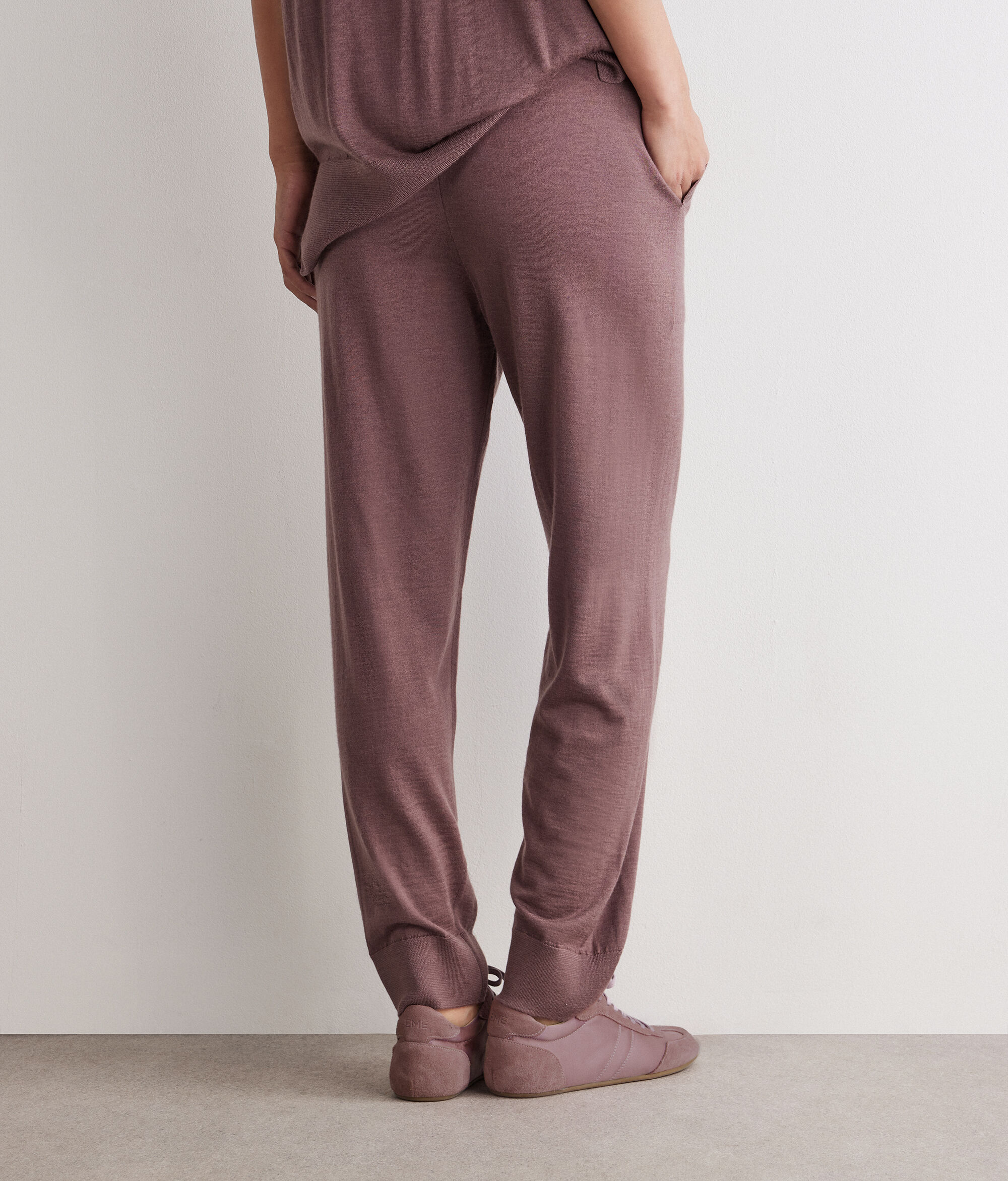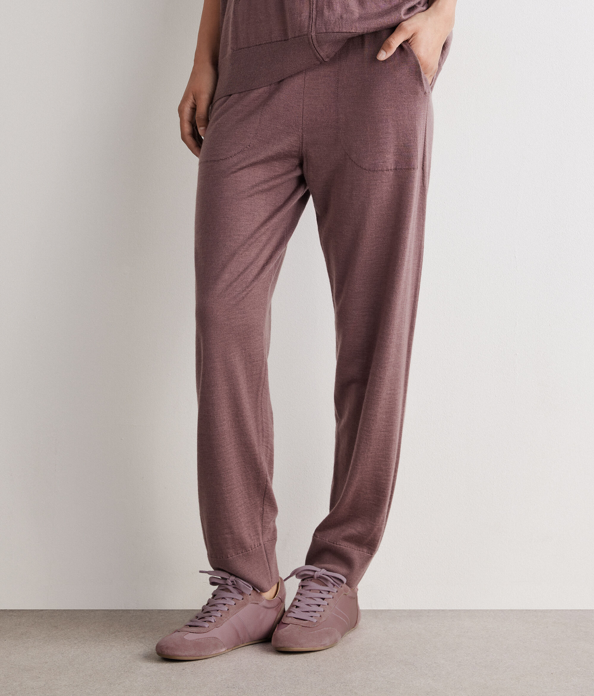 Oversized Ultrafine Cashmere trousers with an elasticated waist and slightly dropped crotch. Ribbed cuffed ankles. Finished with slanted welt pockets. Relaxed fit.