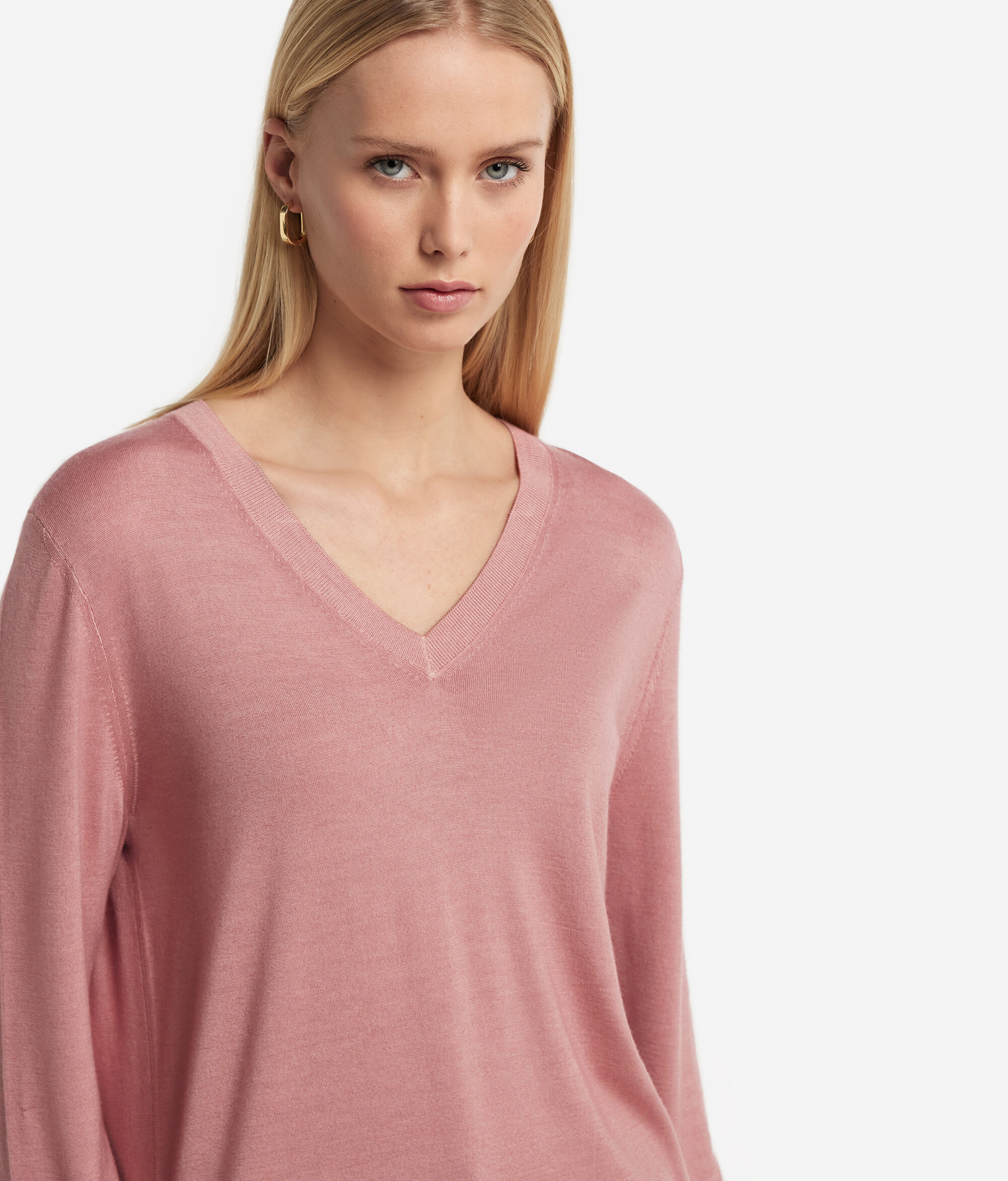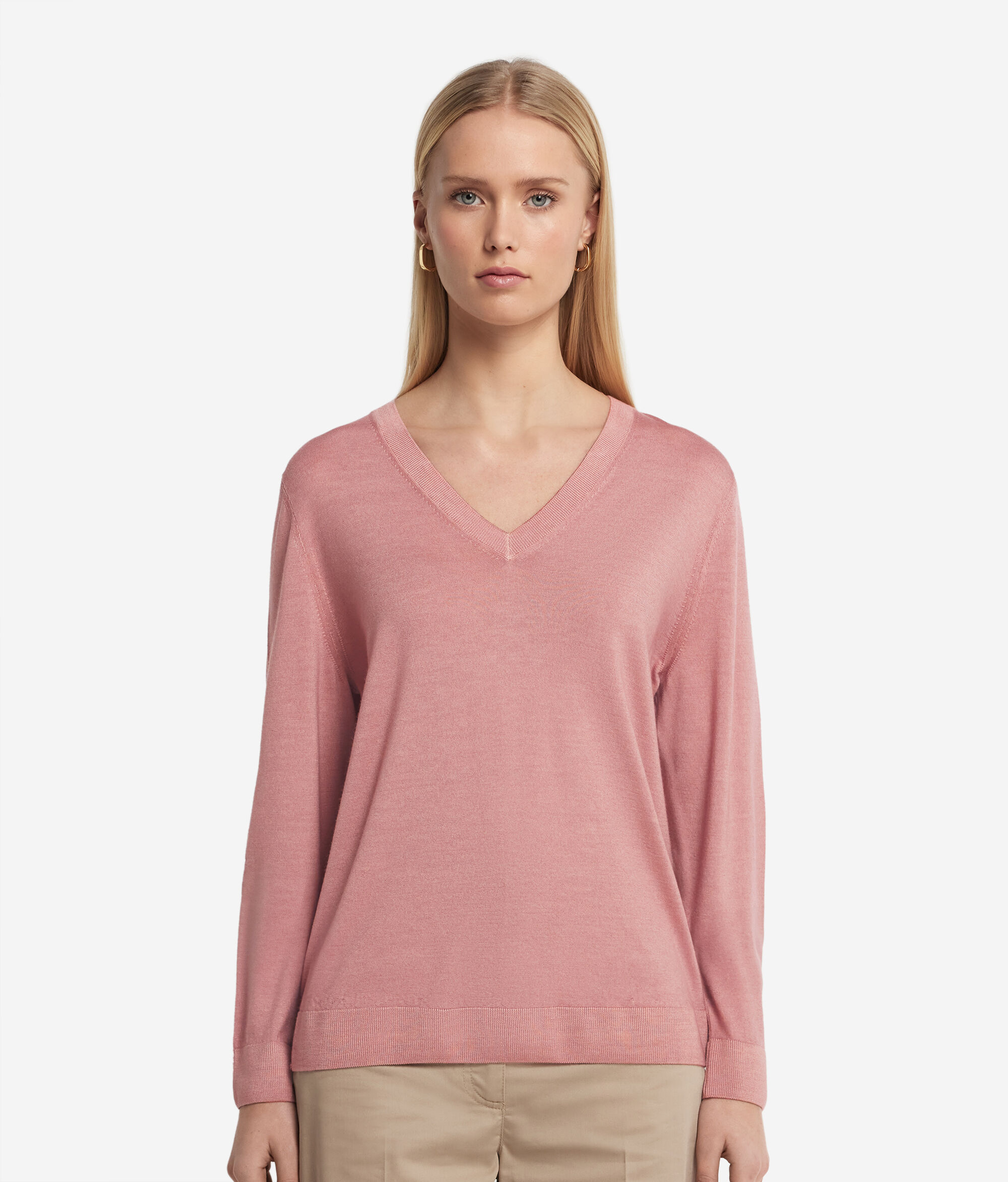 Add luxury and comfort to your wardrobe with this V-neck jumper in Ultrafine Cashmere. The design is enhanced by a rib finish on the neckline, cuffs and hem to bring a touch of class to the minimalist style of the garment. With its relaxed fit, it is the perfect mix of classic and modern that adds a touch of discreet yet timeless luxury to any wardrobe.