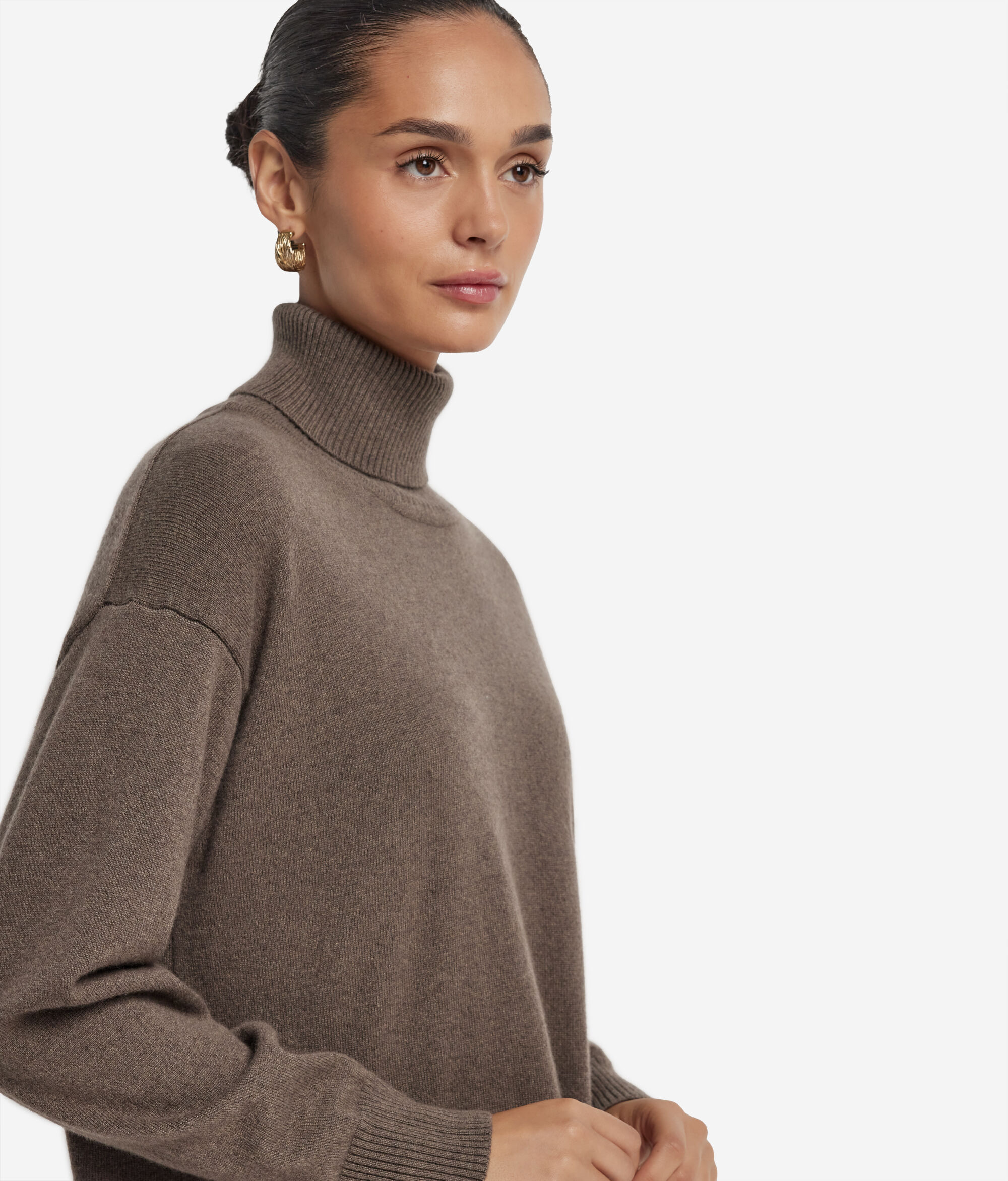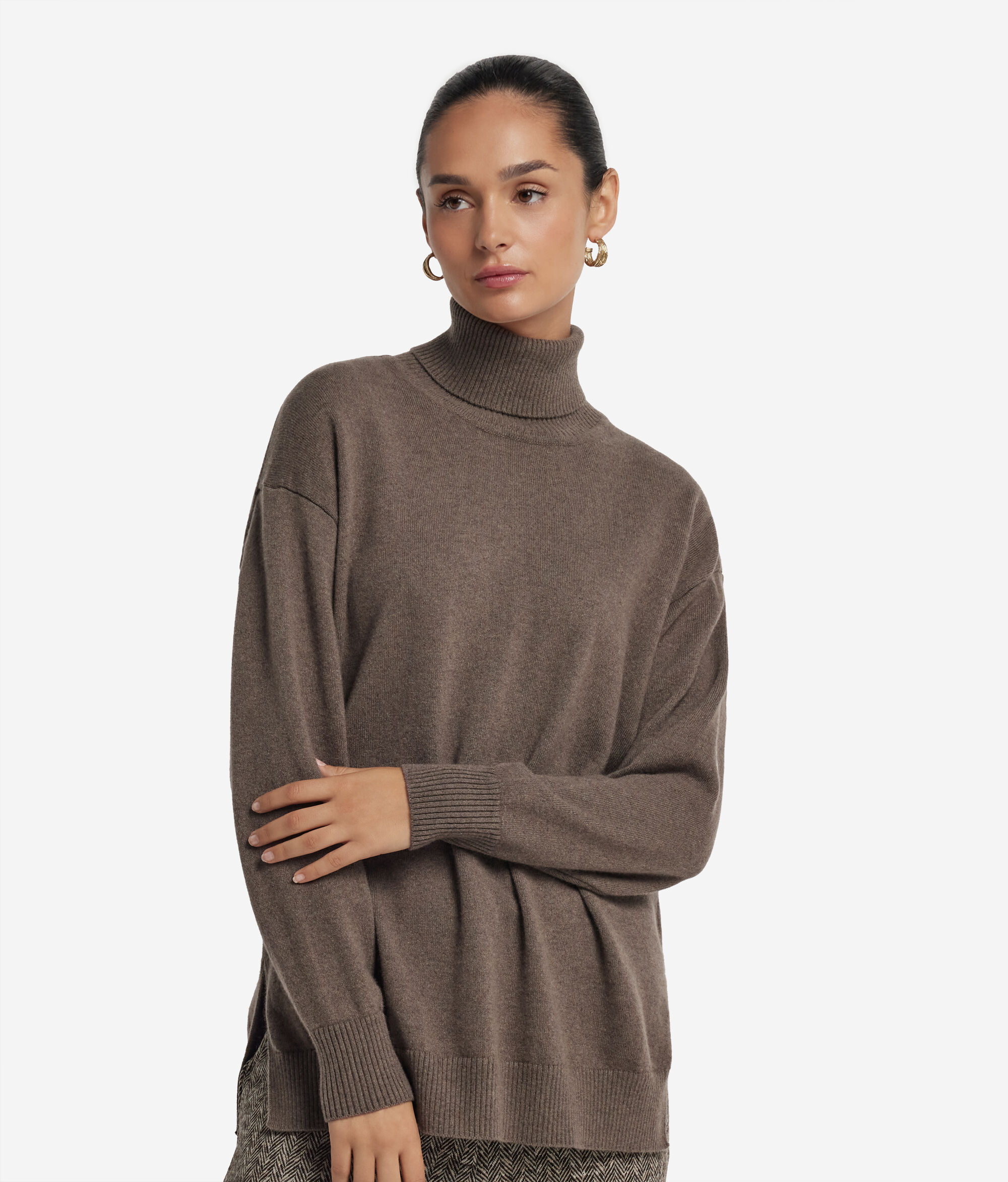 Ultrasoft Cashmere turtleneck. The design of the garment features slightly dropped shoulders, ribbing on the neckline, cuffs and hem, and slits at the bottom. Relaxed fit.