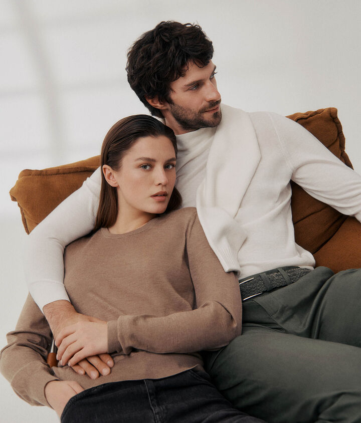 Round-Neck Ultrafine Cashmere Jumper€229.00Select your colorWHEAT BLENDWhiteStone+ 19Selected color: WHEAT BLEND