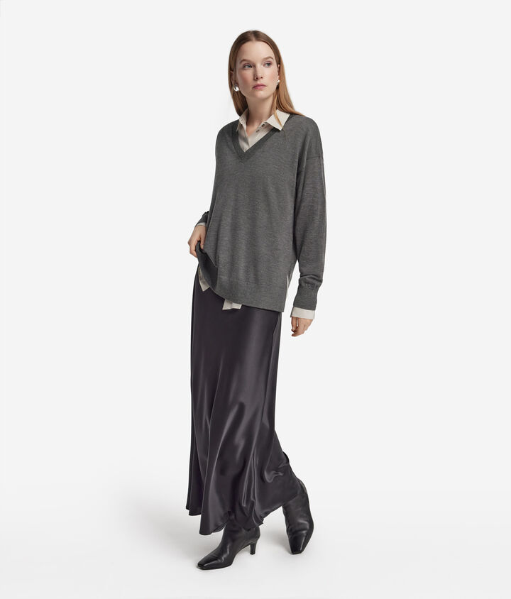 V-Neck Cashmere Jumper with Slits€249.00Select your colorGrigio Melange ScuroWhiteStone+ 18Selected color: Grigio Melange Scuro