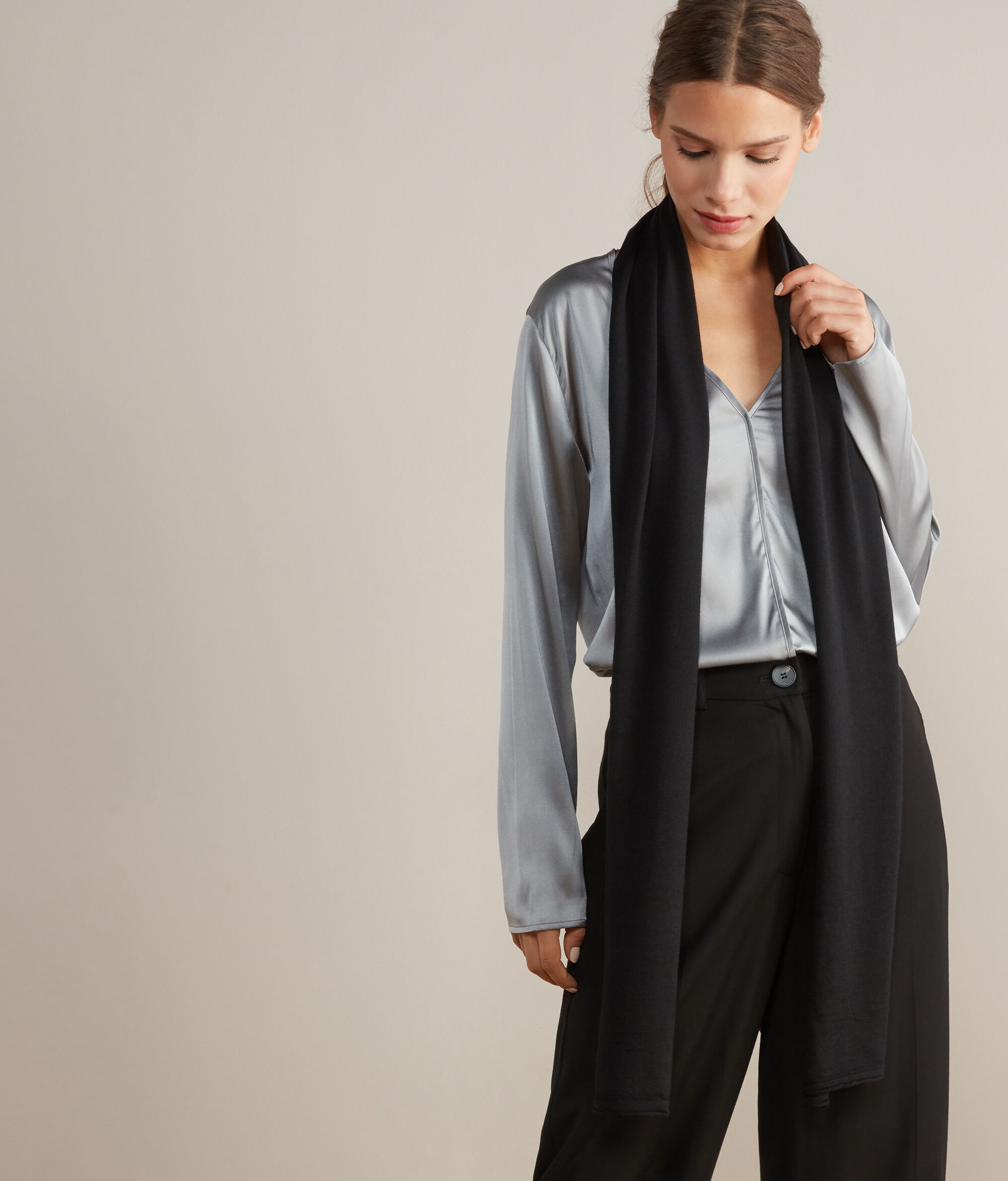 Κασκόλ από 100% ultrafine cashmere, ζεστό, αγκαλιάζει τον λαιμό και συνδυάζεται ιδανικά με τα πανωφόρια της συλλογής.