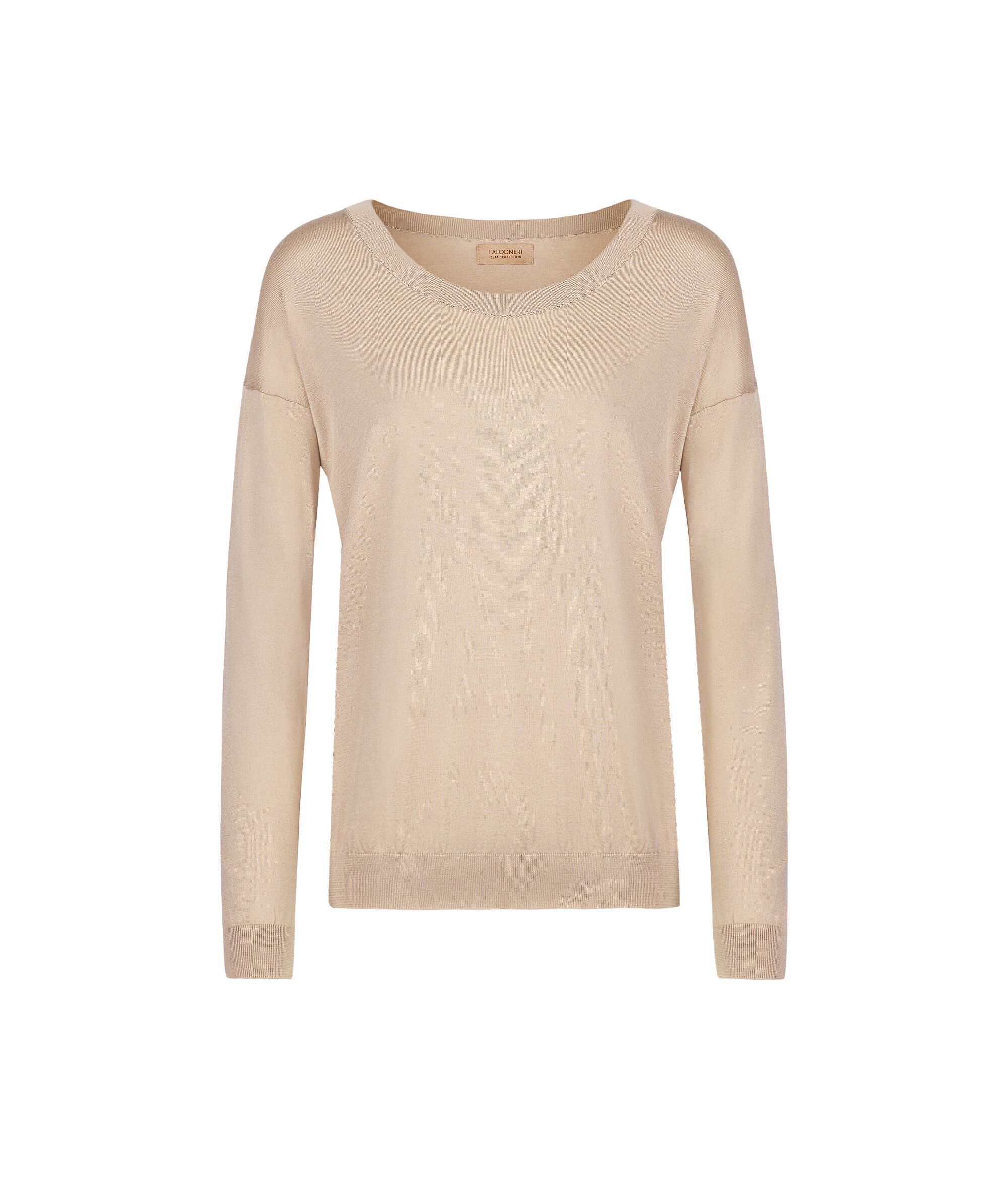 Η εκλεκτή ποιότητα του μεταξιού και του βαμβακιού διακοσμεί τις χαλαρές γραμμές αυτής της μπλούζας με φαρδιά λαιμόκοψη και της προσδίδει ρευστή και ευχάριστη υφή. Ένα ευκολοφόρετο, μοναδικό και απαραίτητο ρούχο, ιδανικό με κάθε συνδυασμό.