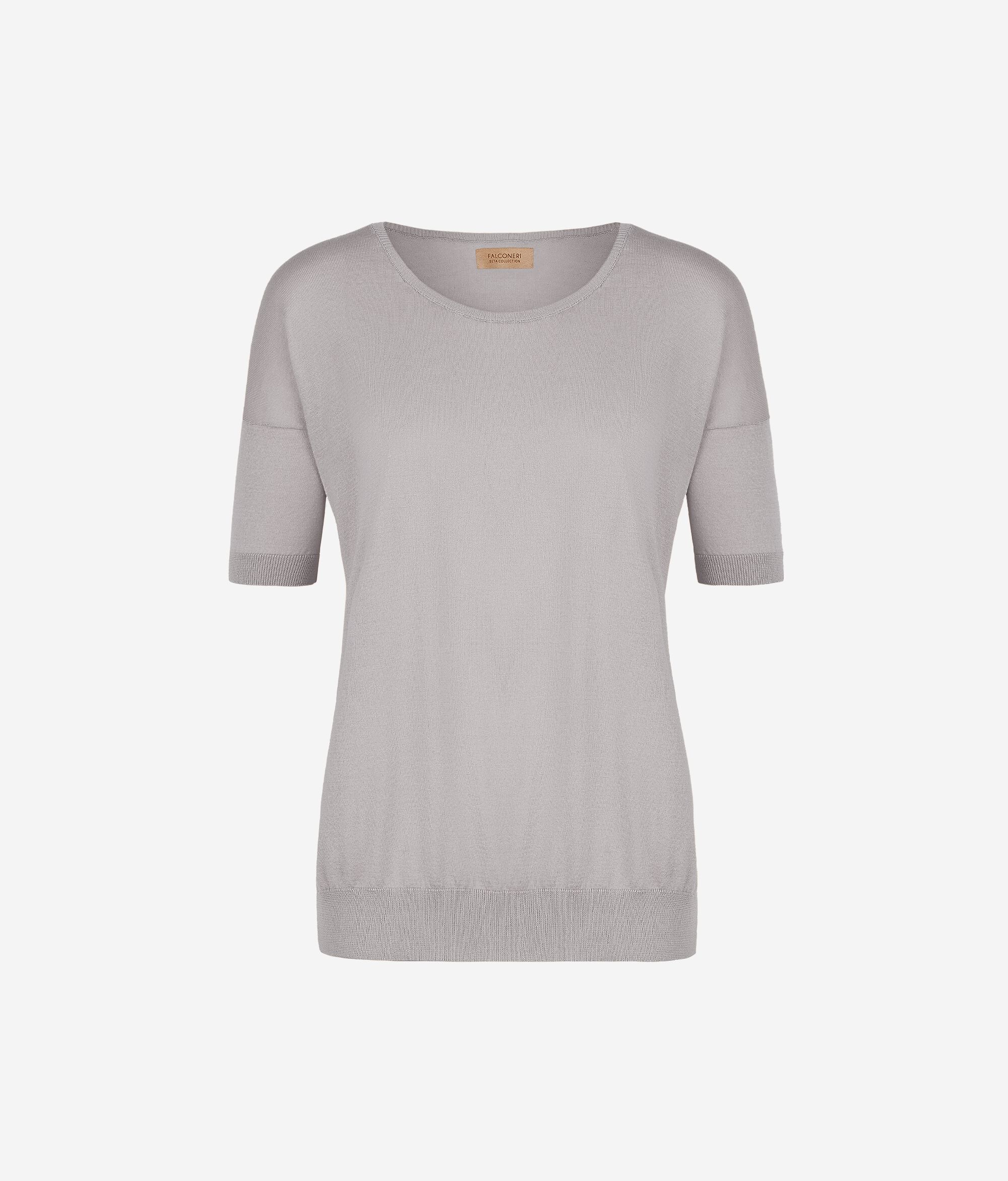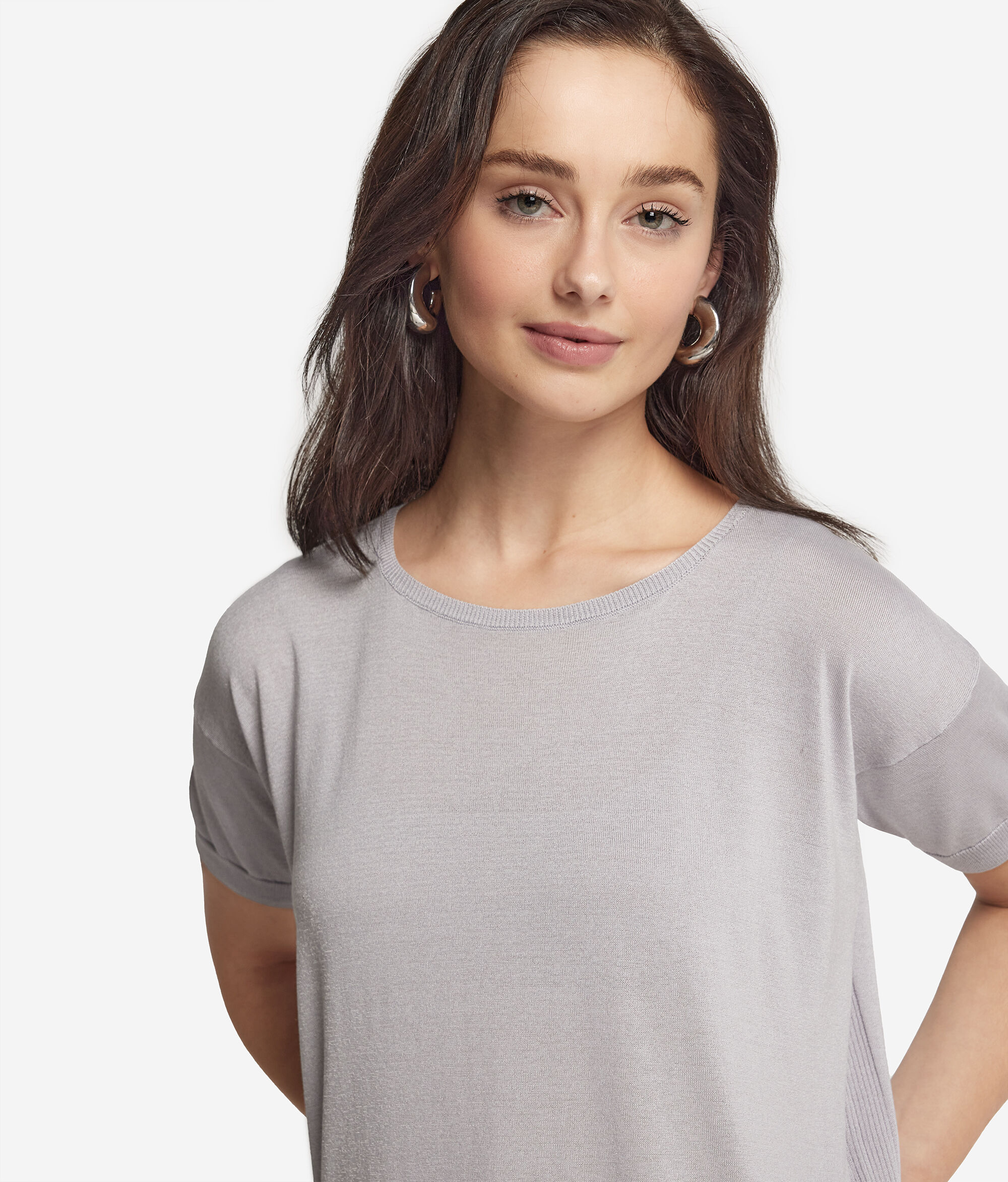 Μπλούζα με Στρογγυλή Λαιμόκοψη από Μετάξι και Βαμβάκι